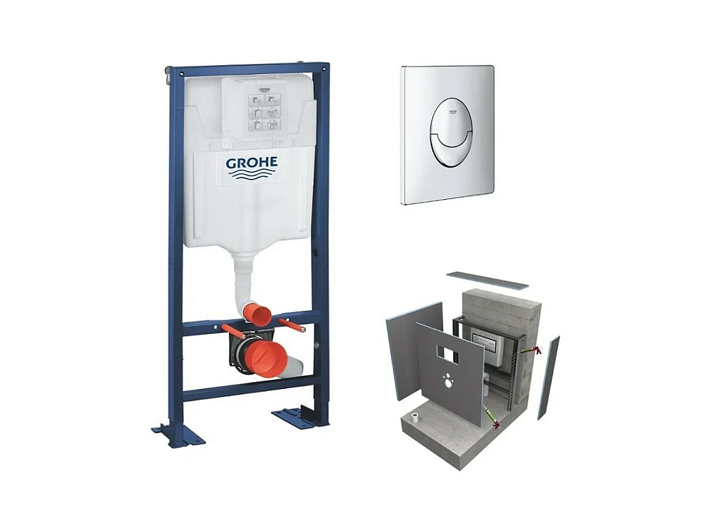 Bati support GROHE Solido + plaque chromée + habillage WEDI I-Board