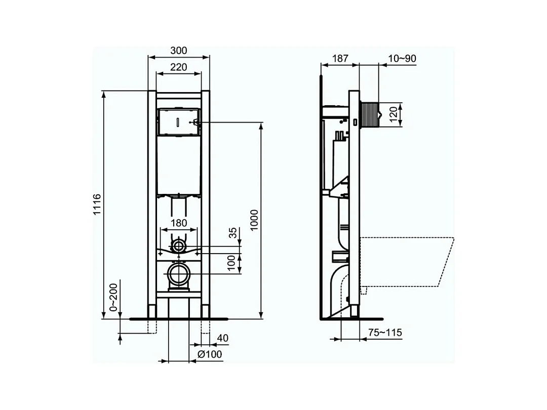 Bati-support Ideal Standard autoportant gain de place éco certifié NF + plaque carrée