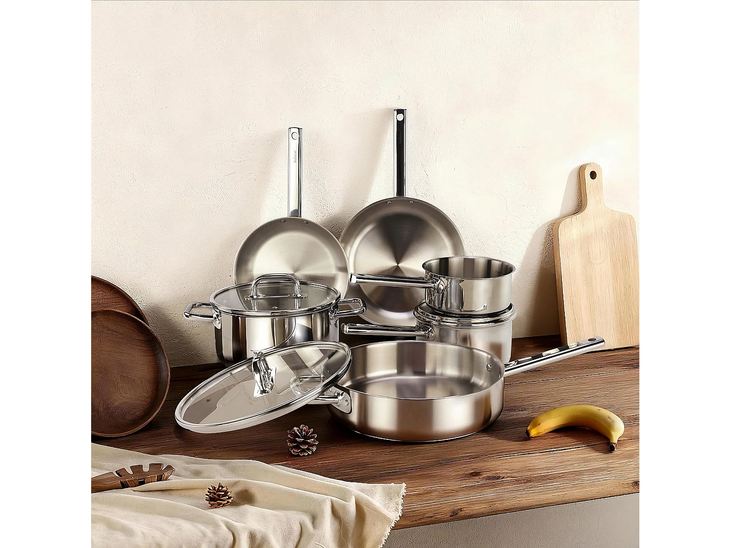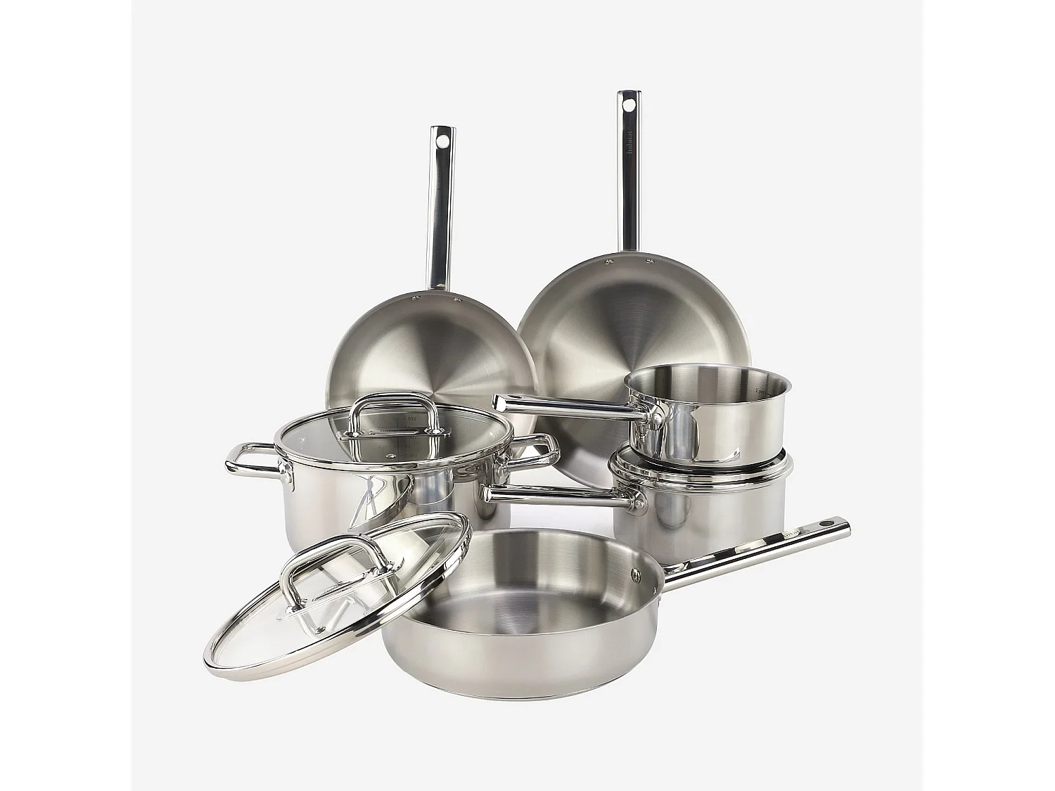Batterie de cuisine 9 pièces en acier inoxydable tous feux - Argenté