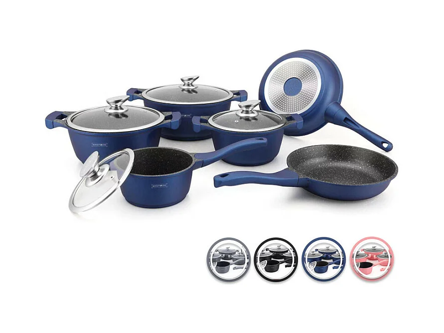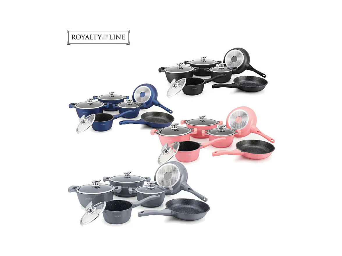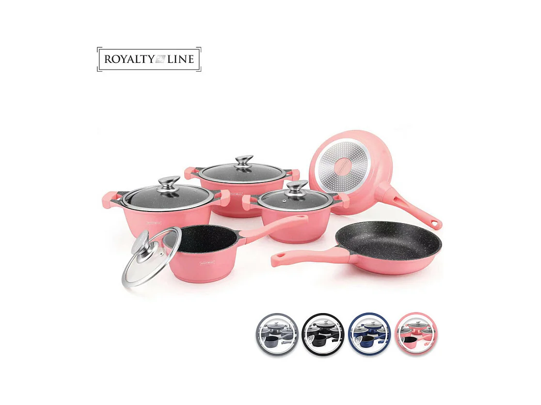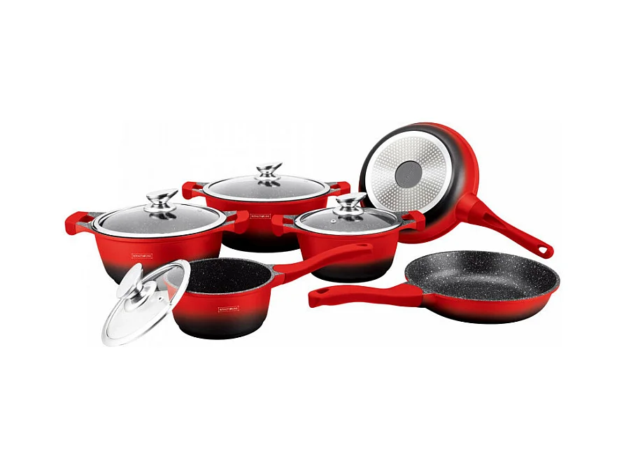 Royalty Line RL-BS1010M: Batterie de cuisine 10 pièces à revêtement céramique Rouge/Noir