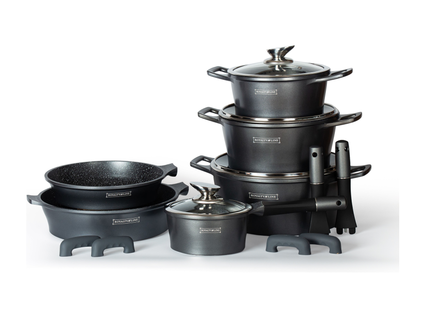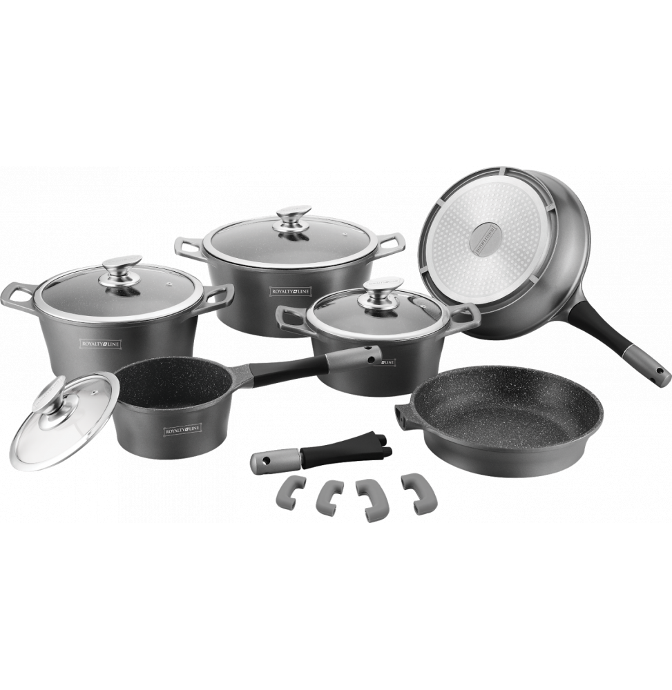 Batterie de cuisson complète effet marbre - 17 pièces - Tous feux - Gris