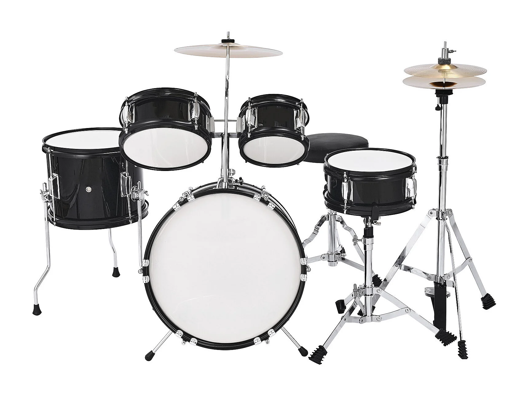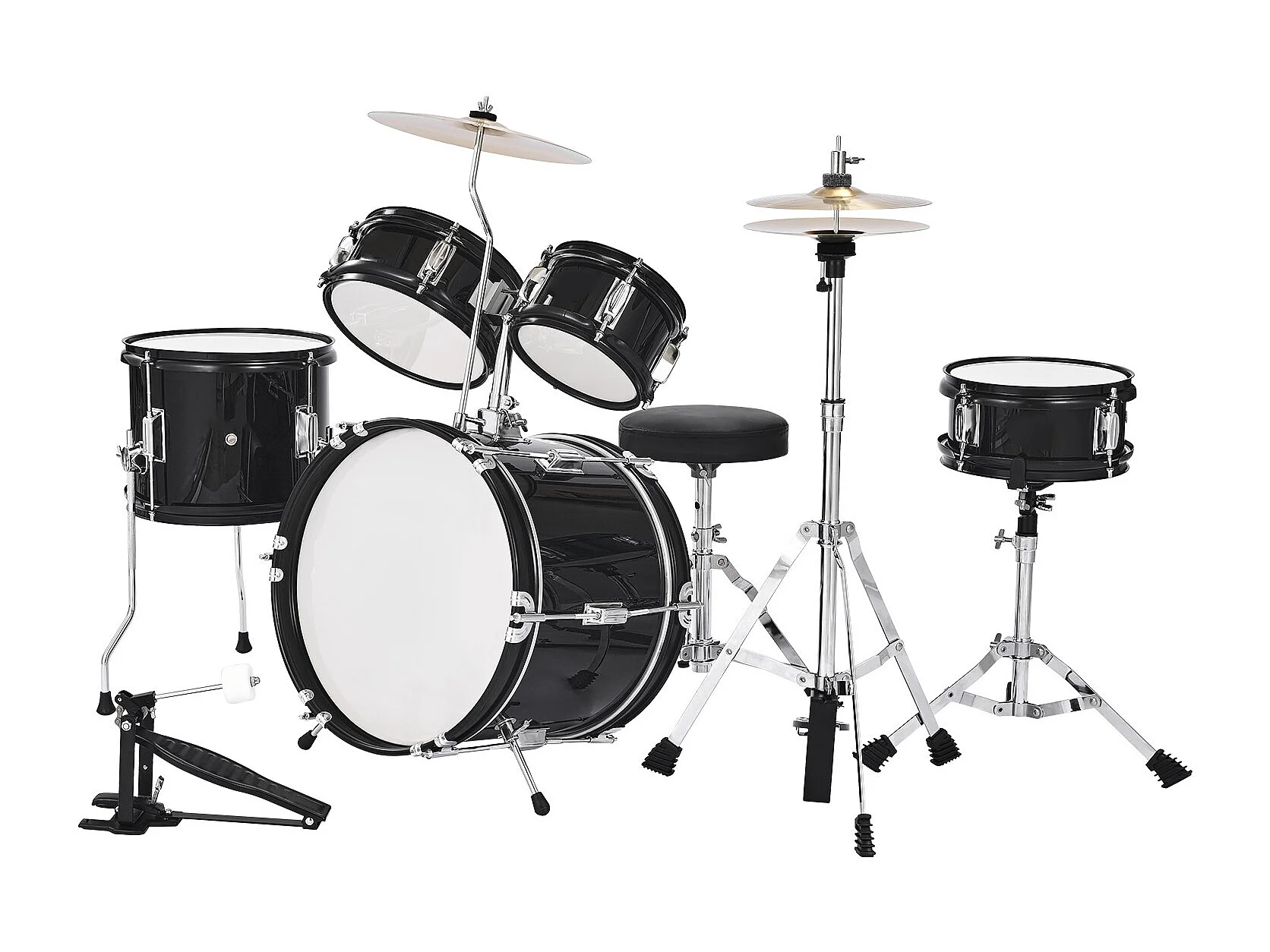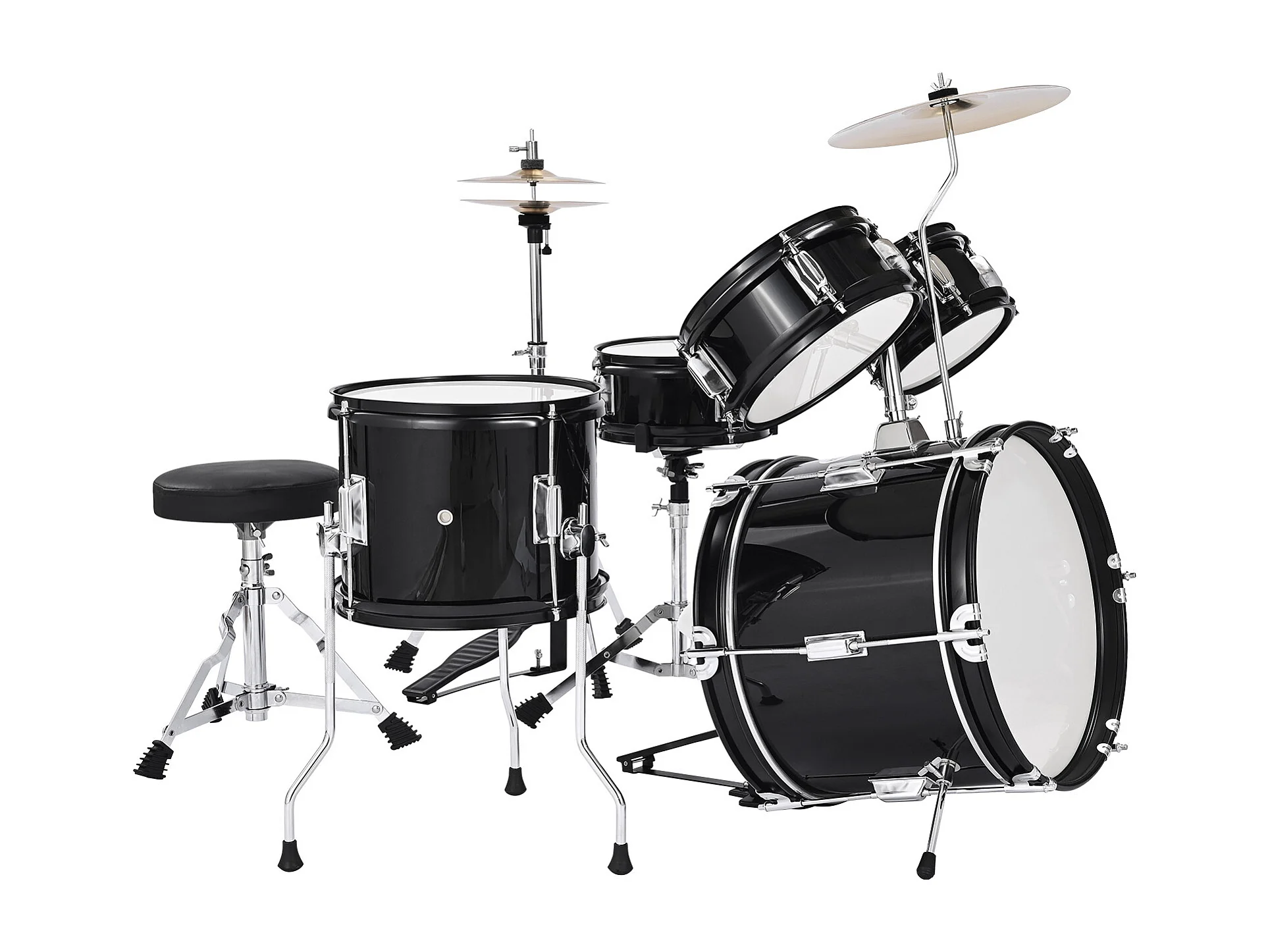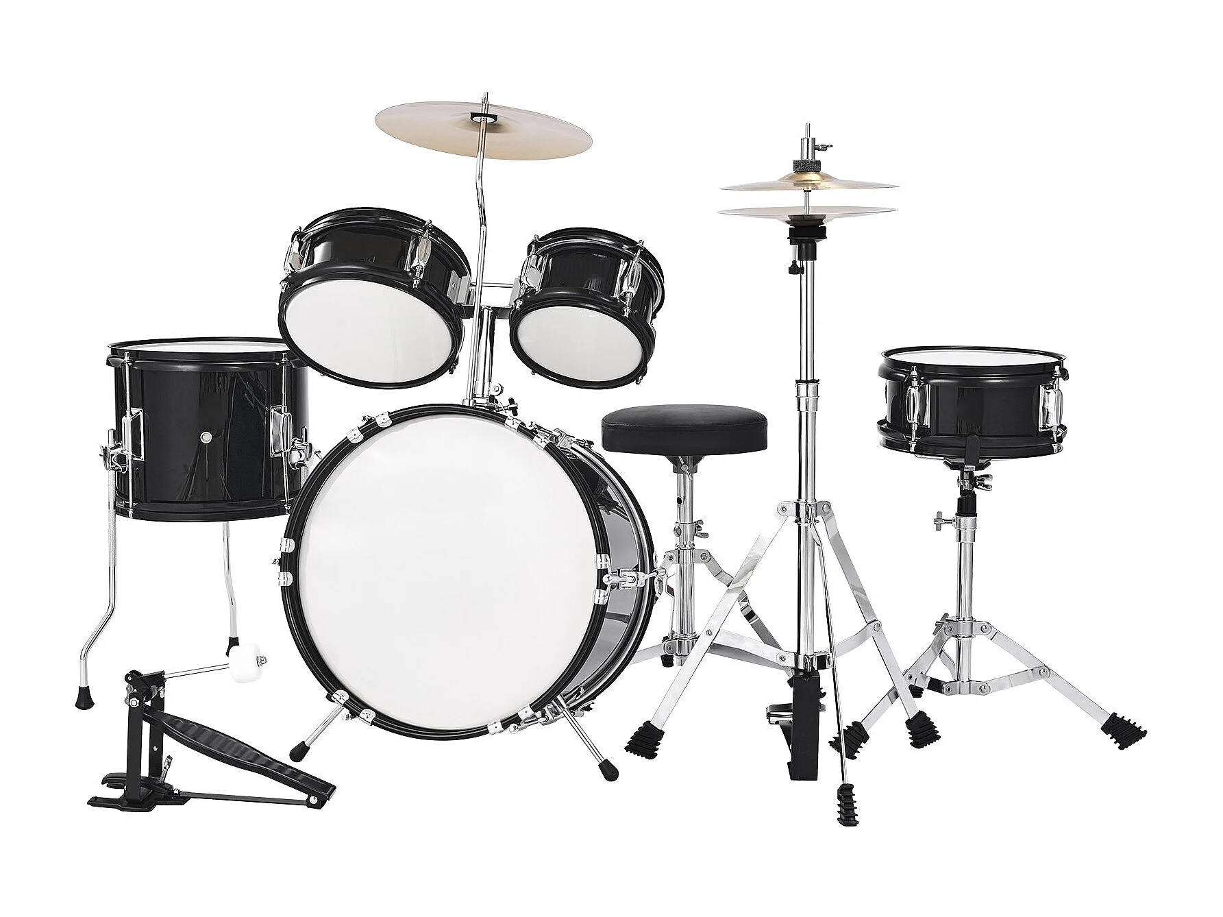 Batterie Enfant SucceBuy, 5 PCS, Batterie Débutants, Grosse Caisse 35,56 cm avec Tom-tom, Caisse Claire 20,32 cm Tom Basse 25,4 cm, Siège, Baguettes, Noir