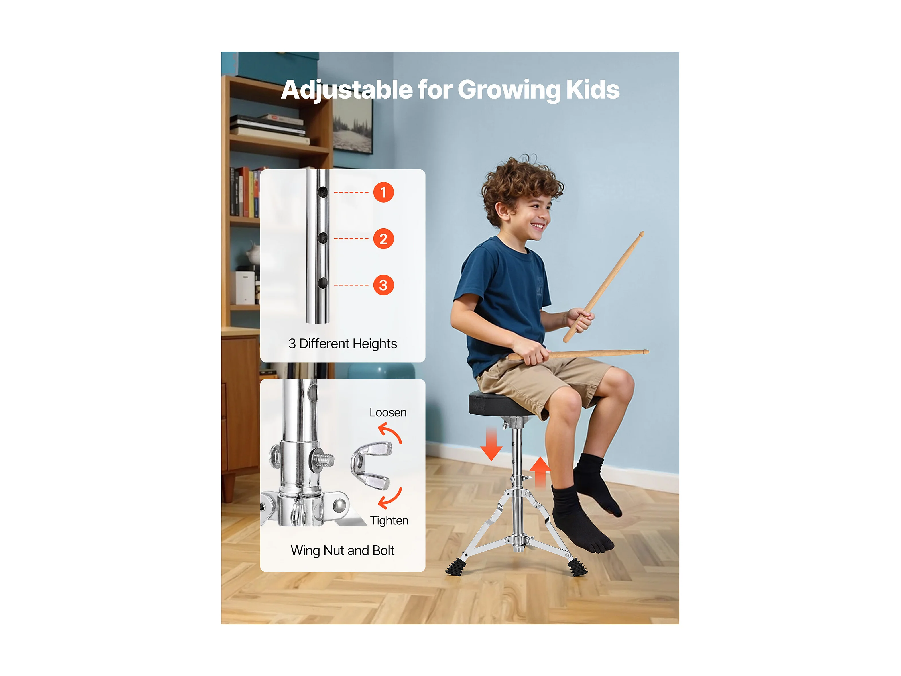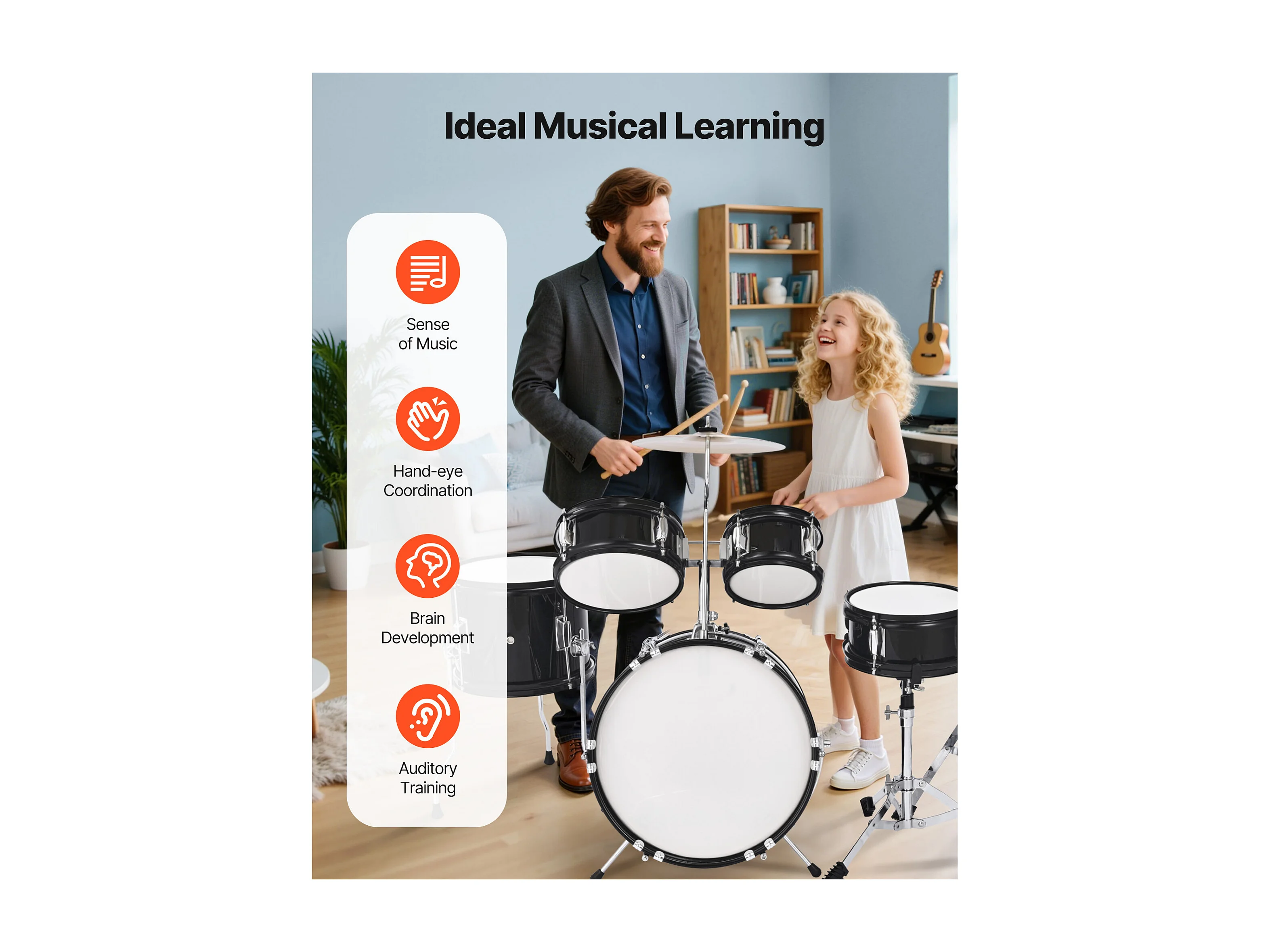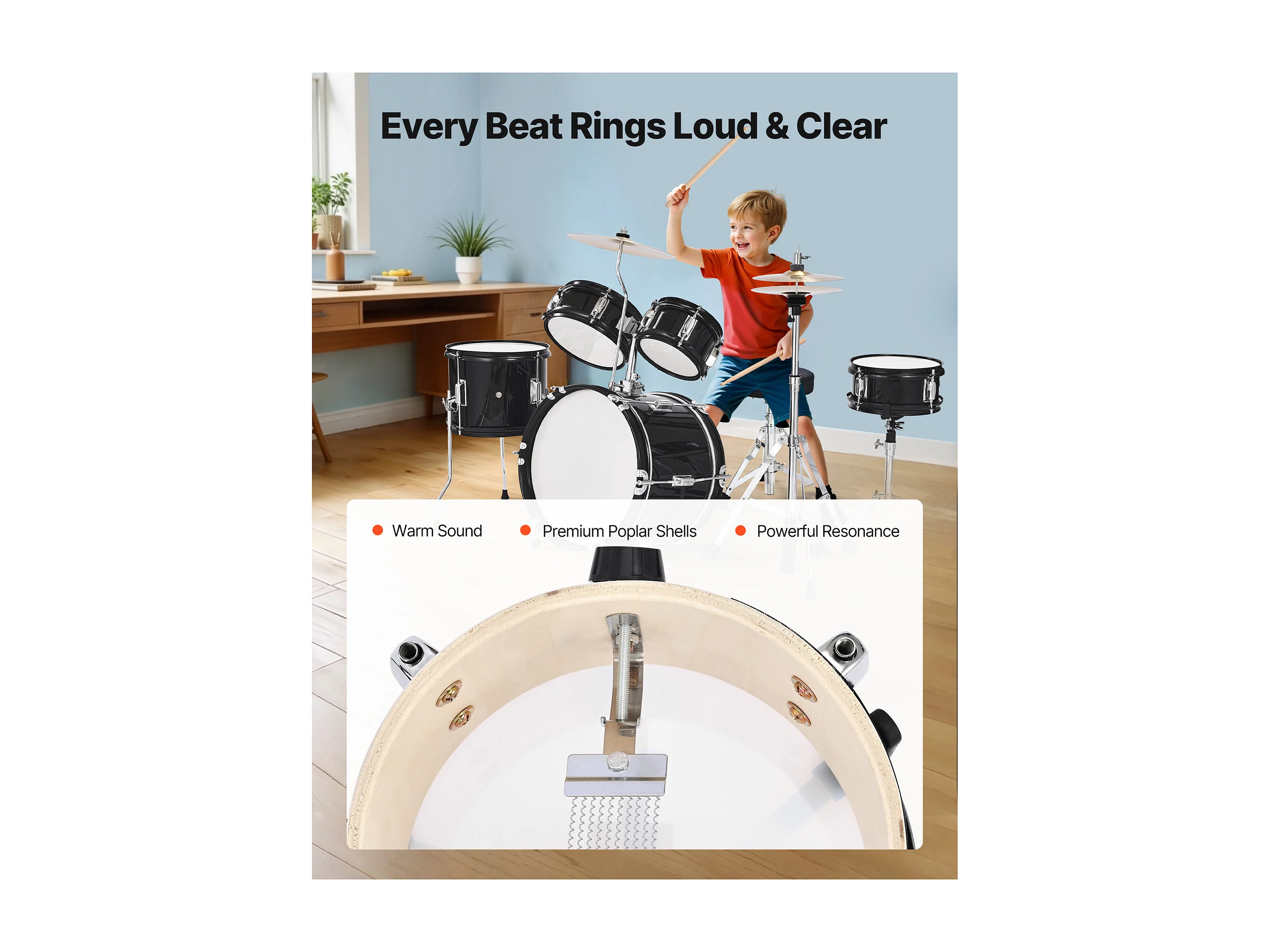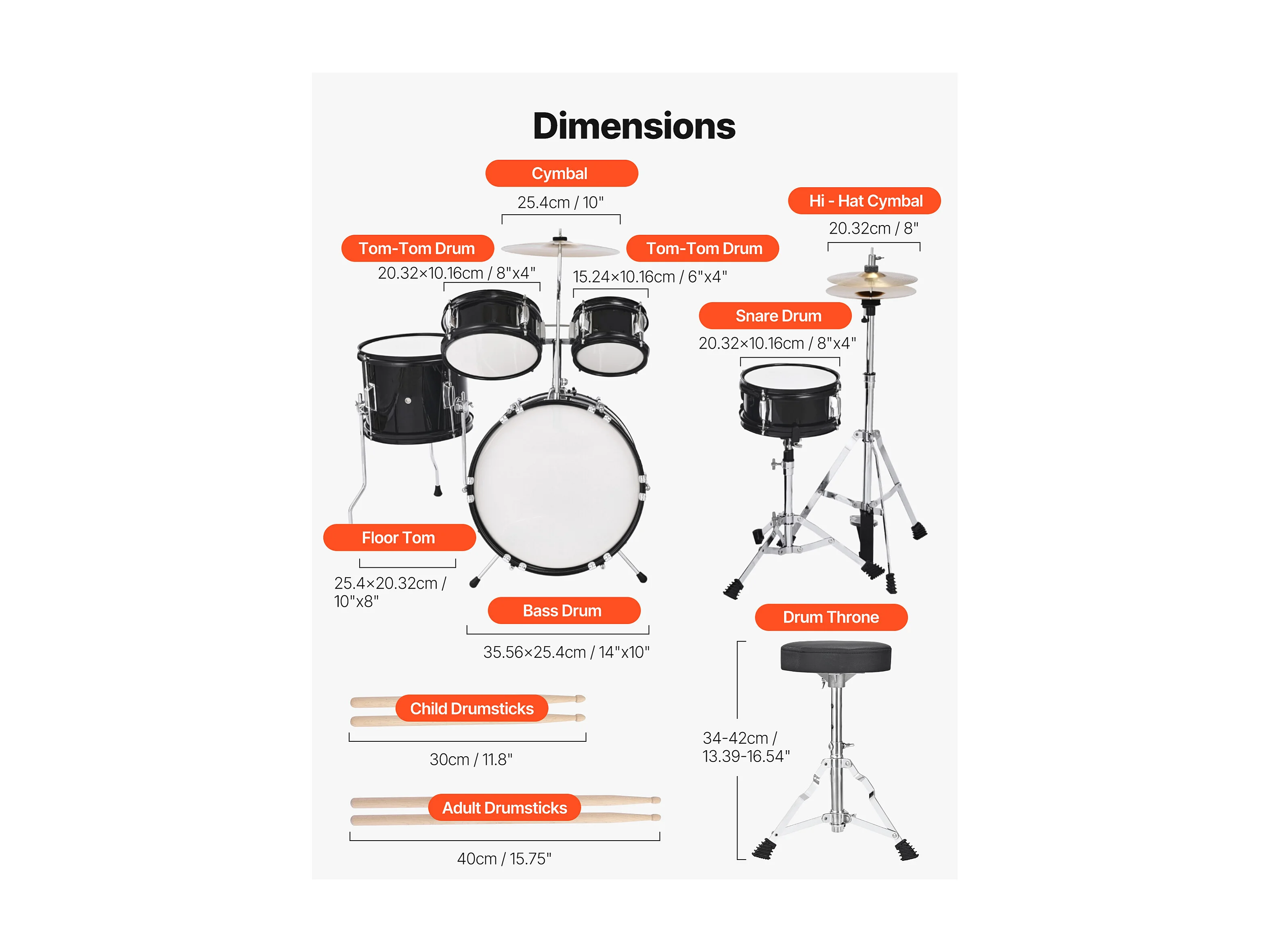 Batterie Enfant SucceBuy, 5 PCS, Batterie Débutants, Grosse Caisse 35,56 cm avec Tom-tom, Caisse Claire 20,32 cm Tom Basse 25,4 cm, Siège, Baguettes, Noir