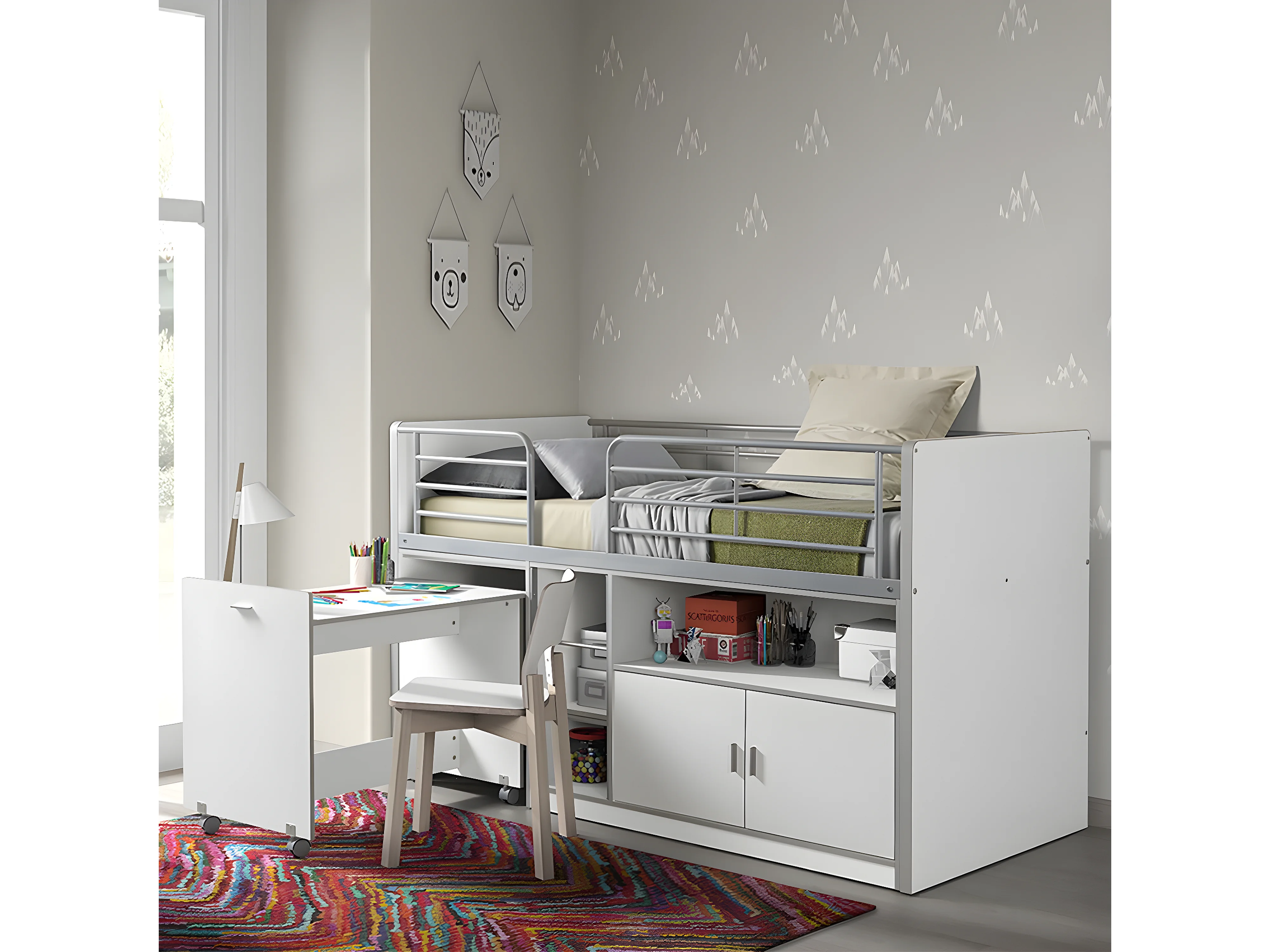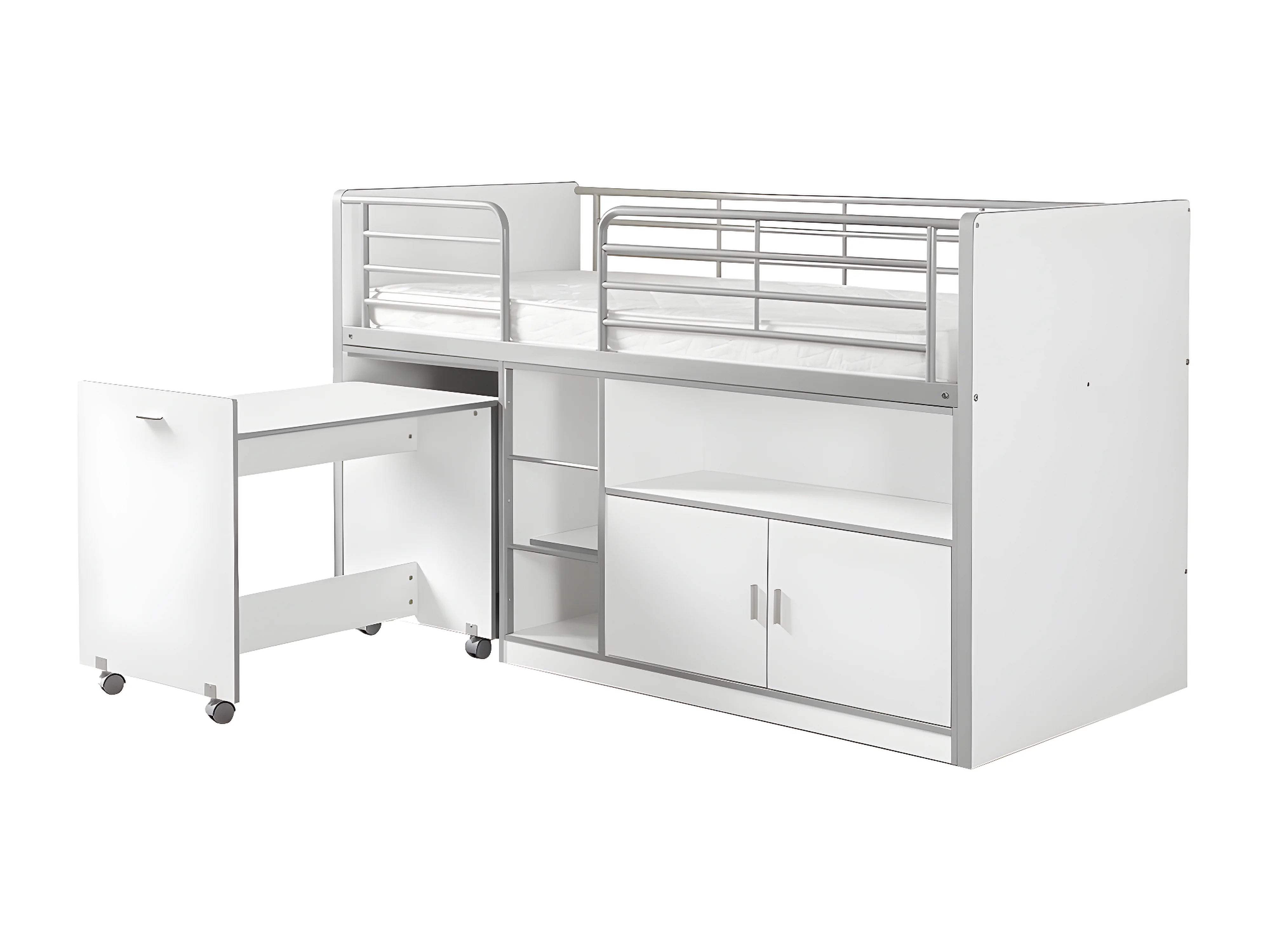 BAYMAX - Lit Combiné 90x200cm Blanc avec Bureau sur Roulettes