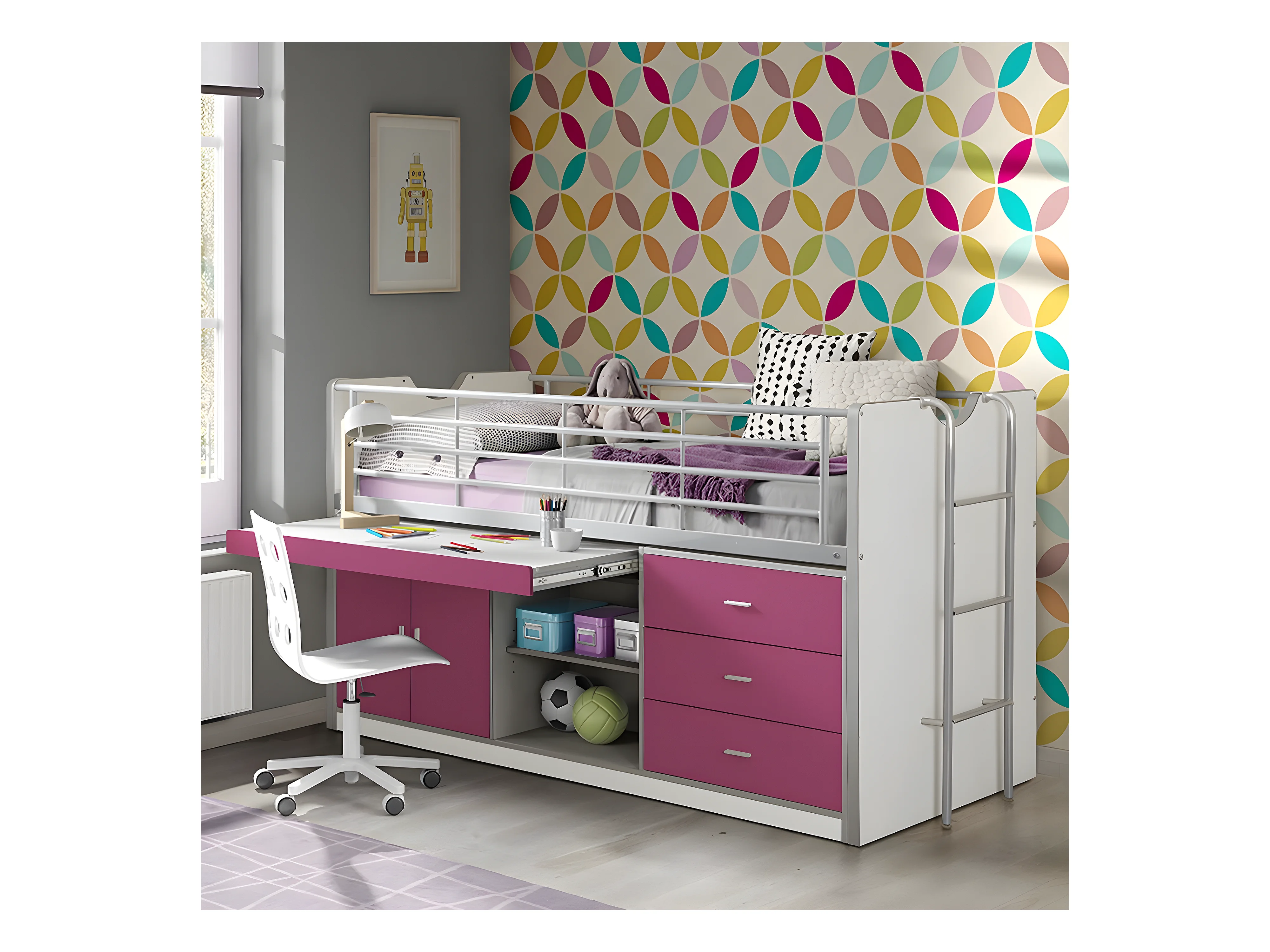 BAYMAX - Lit Combiné 90x200cm Fuchsia avec Bureau Coulissant