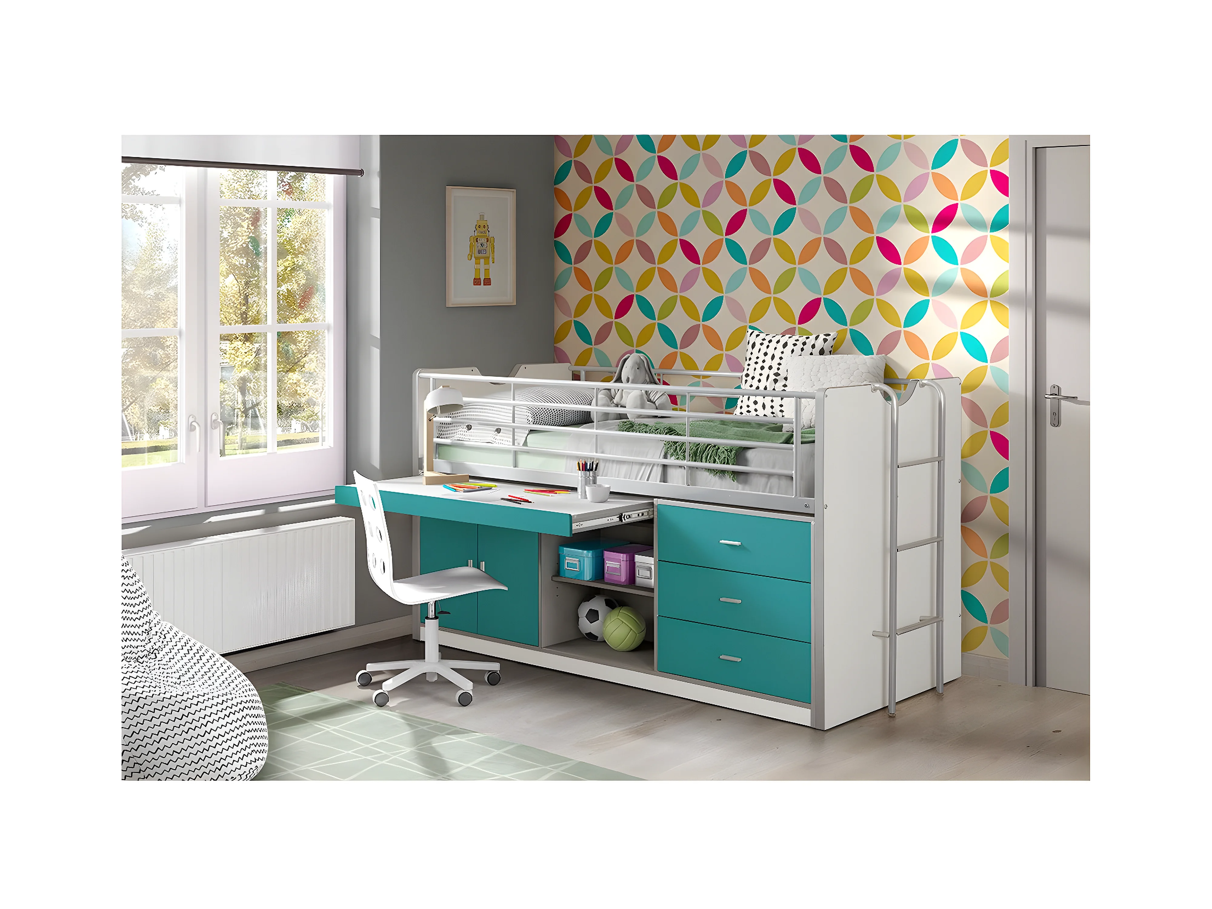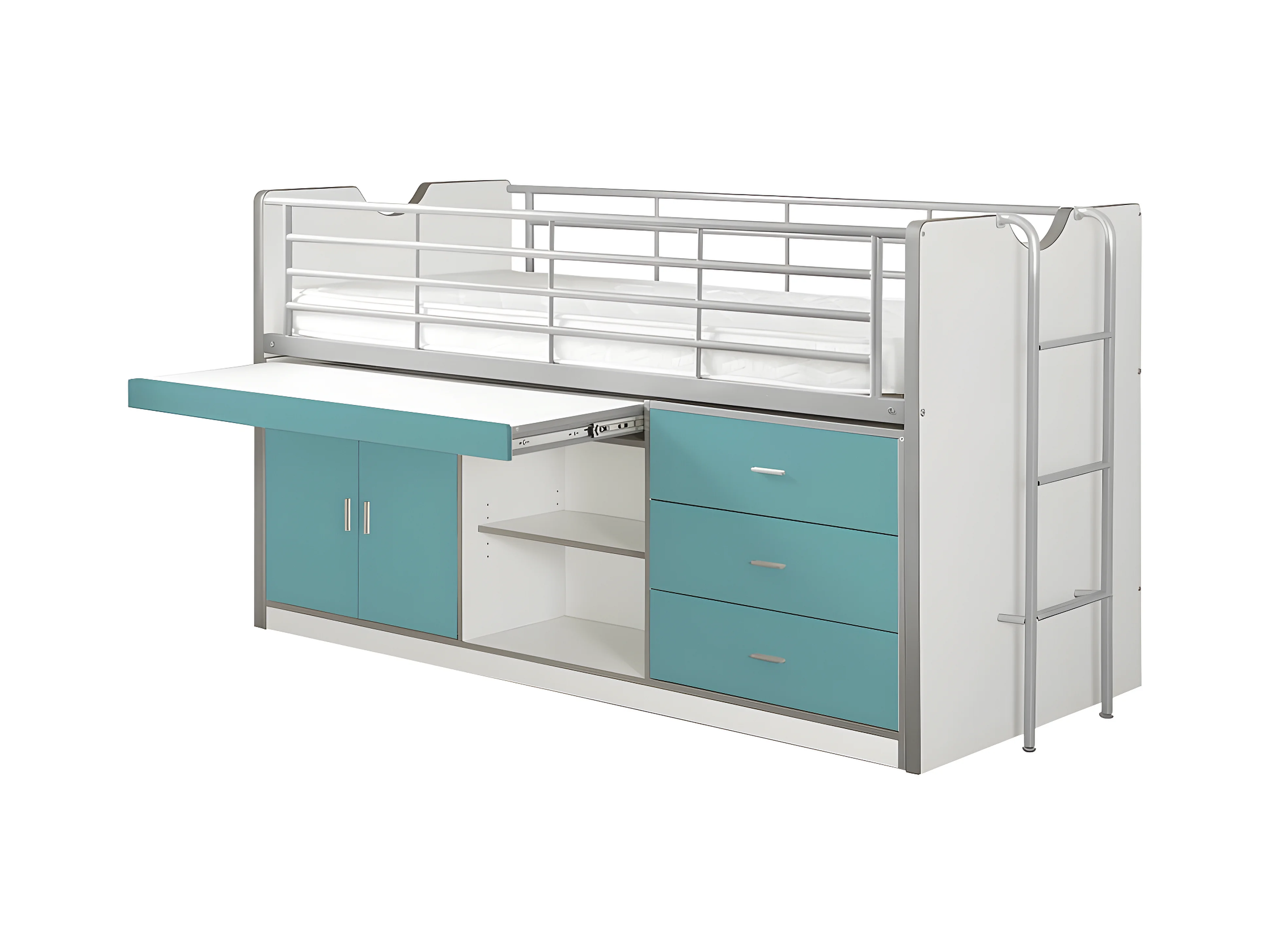 BAYMAX - Lit Combiné 90x200cm Turquoise avec Bureau Coulissant