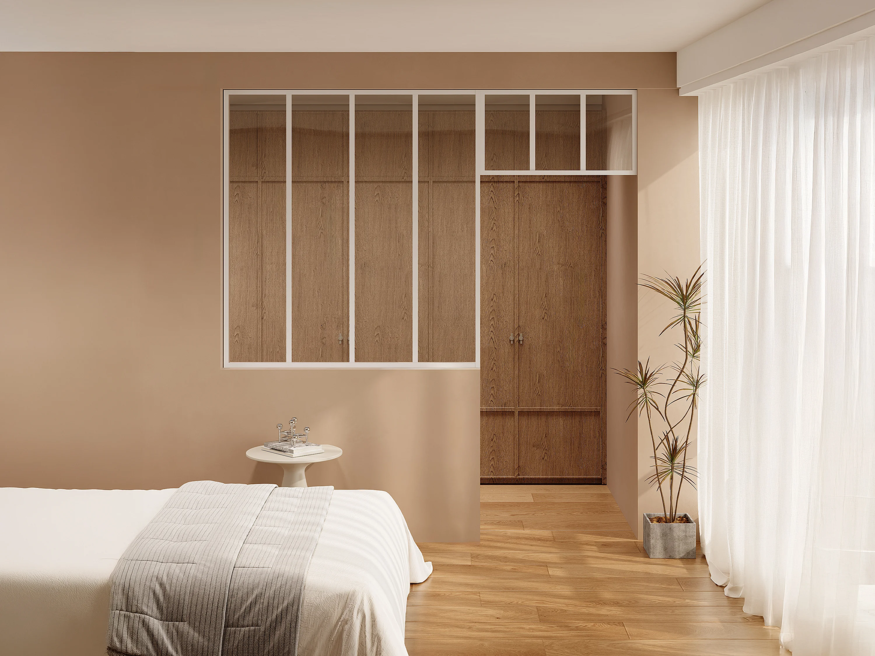 Verrière atelier avec imposte en aluminium thermolaqué - L120 x H130 + L73 x H40 cm - Blanc - BAYVIEW