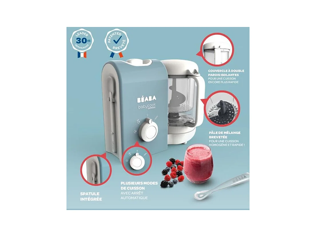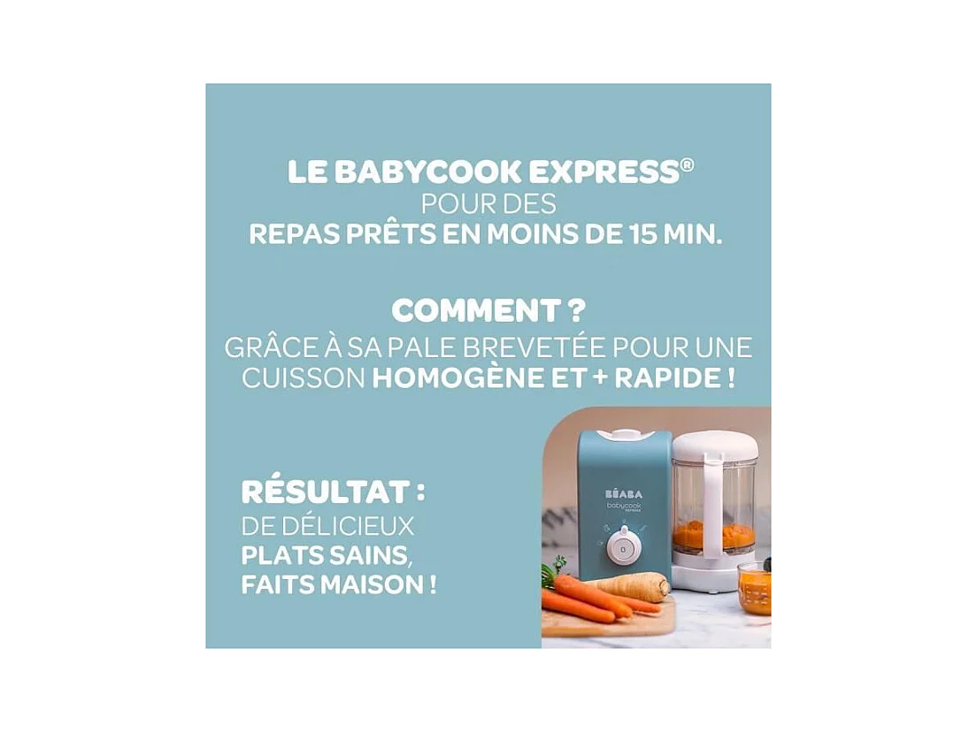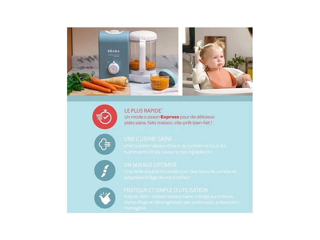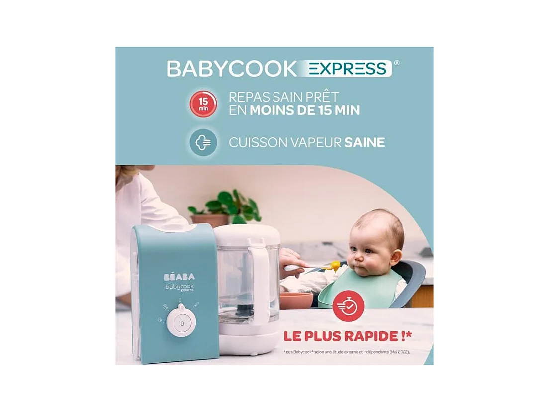 BEABA, Babycook Express, Robot Bébé 4 en 1 Mixeur-Cuiseur, Bleu Baltique