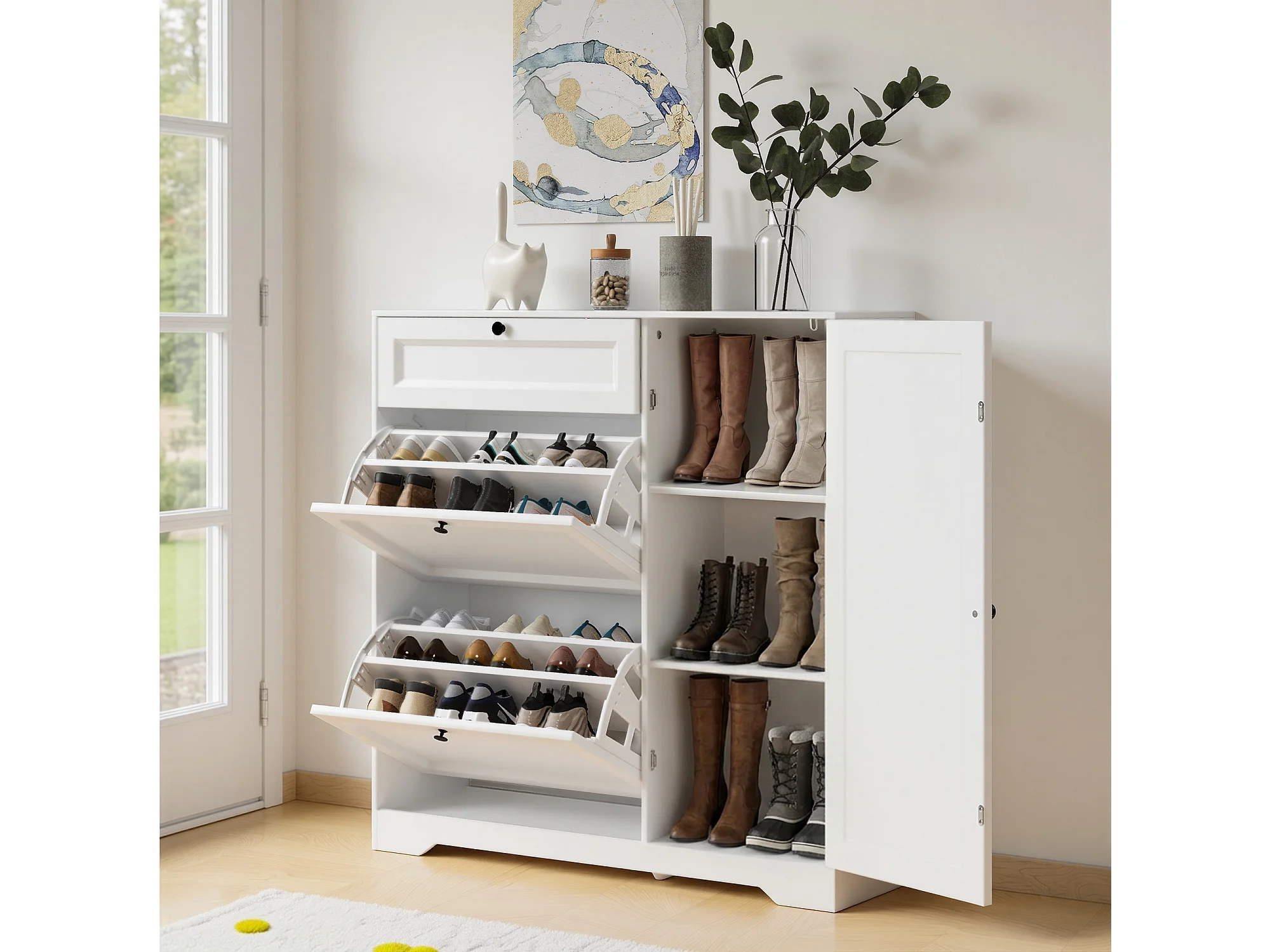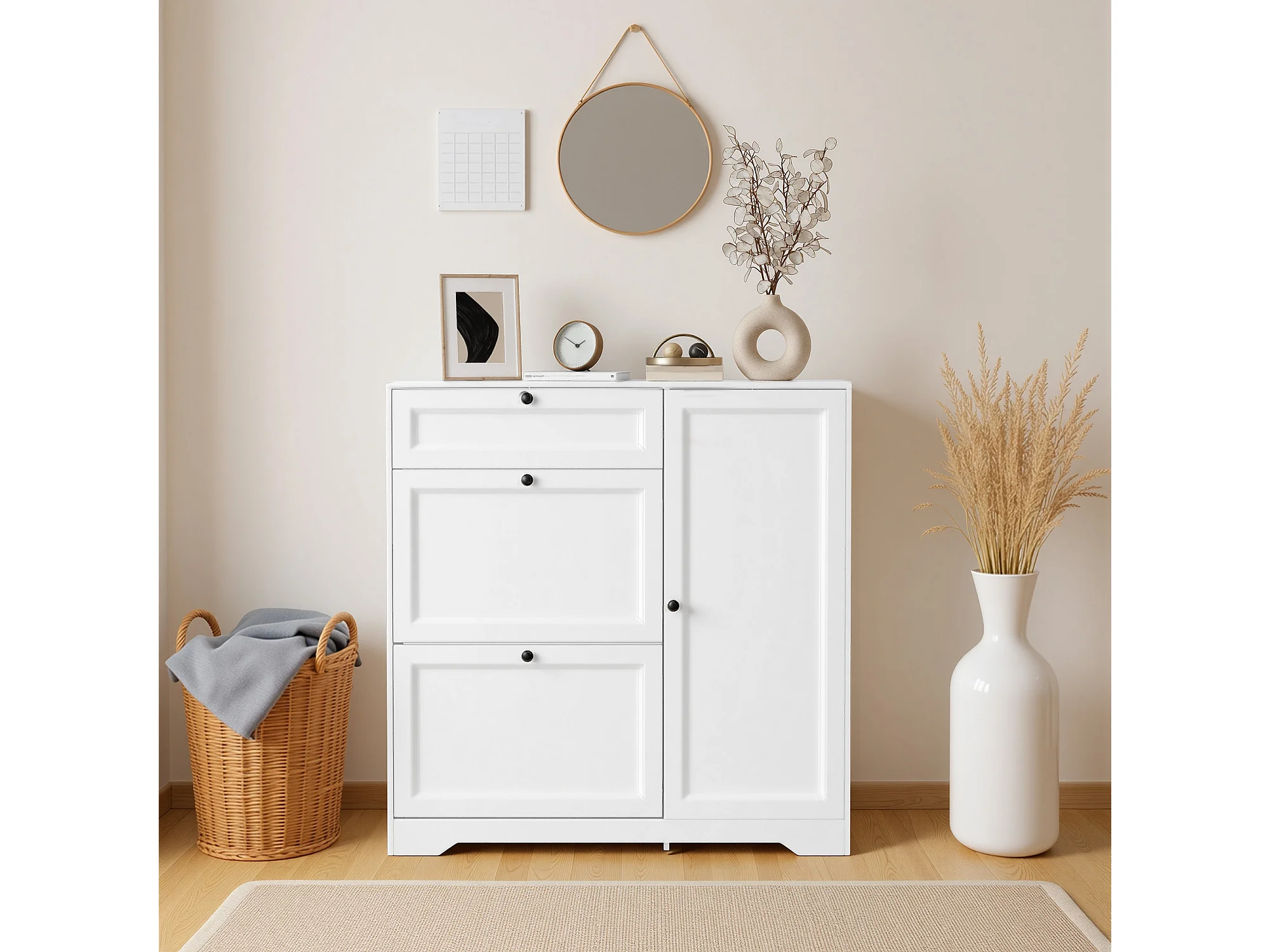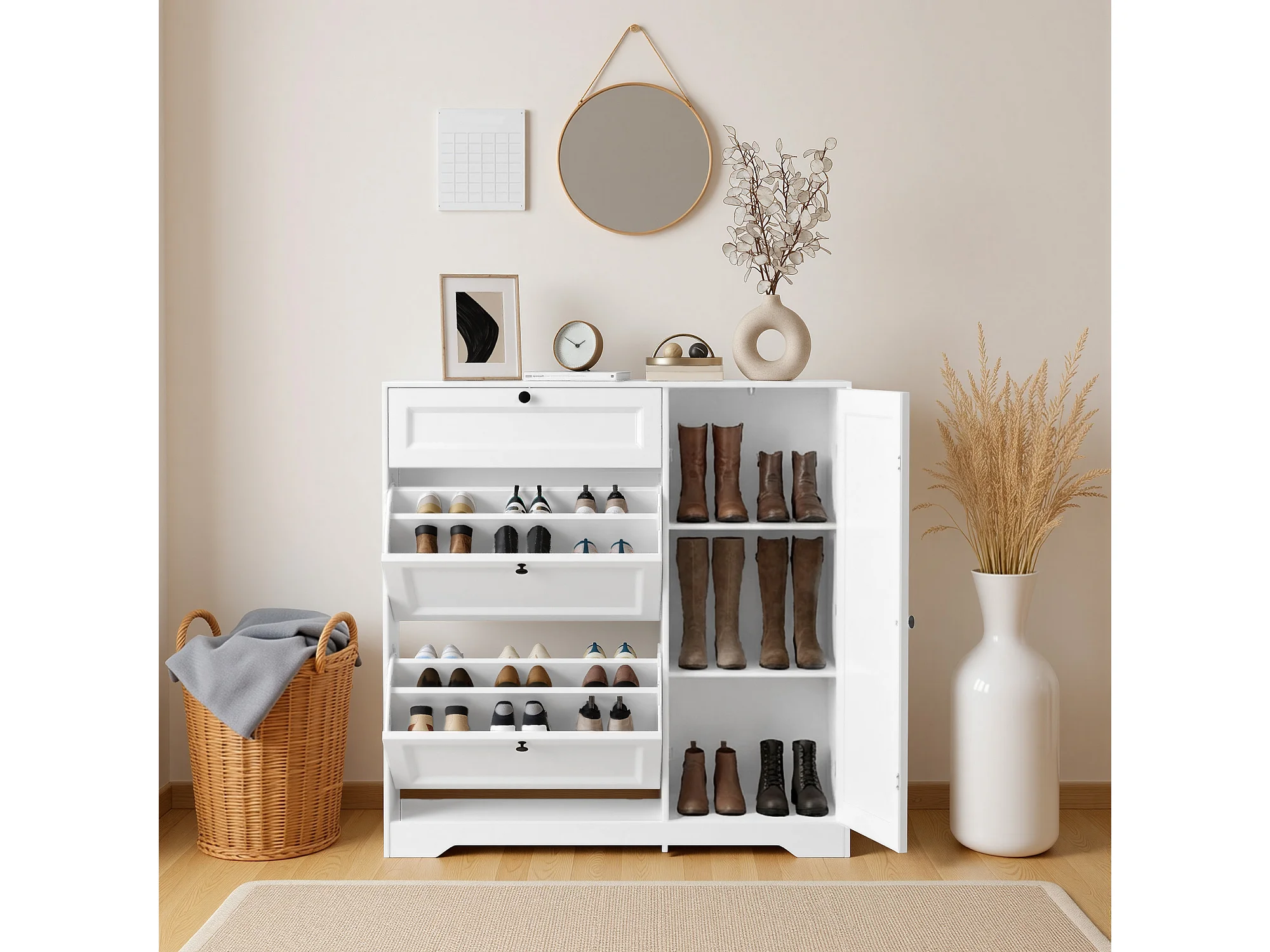 Bealife 3-en-1 Meuble chaussures avec 2 abattants,– 100x30x102 cm, Blanc - Étagères réglables en hauteur, Meuble chaussures spacieux et fonctionnel