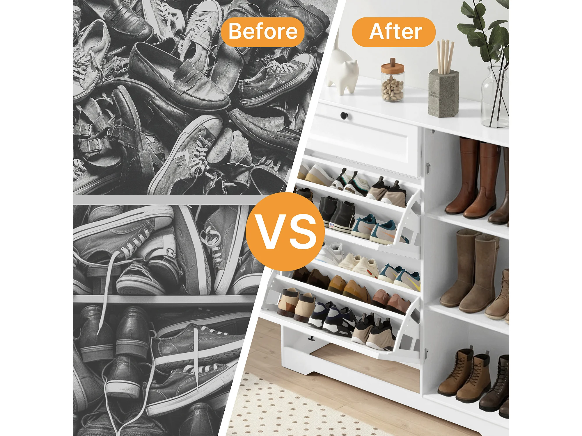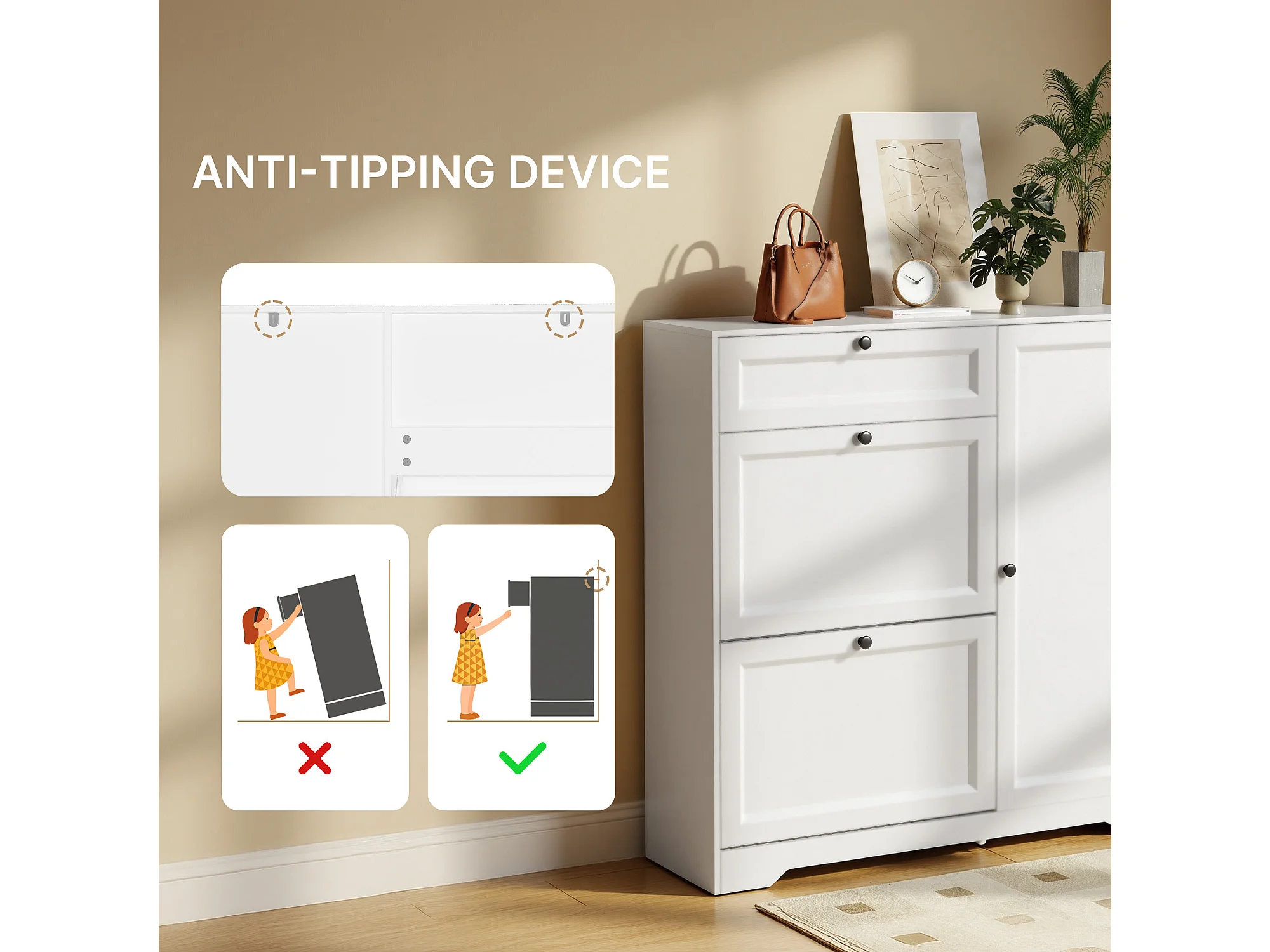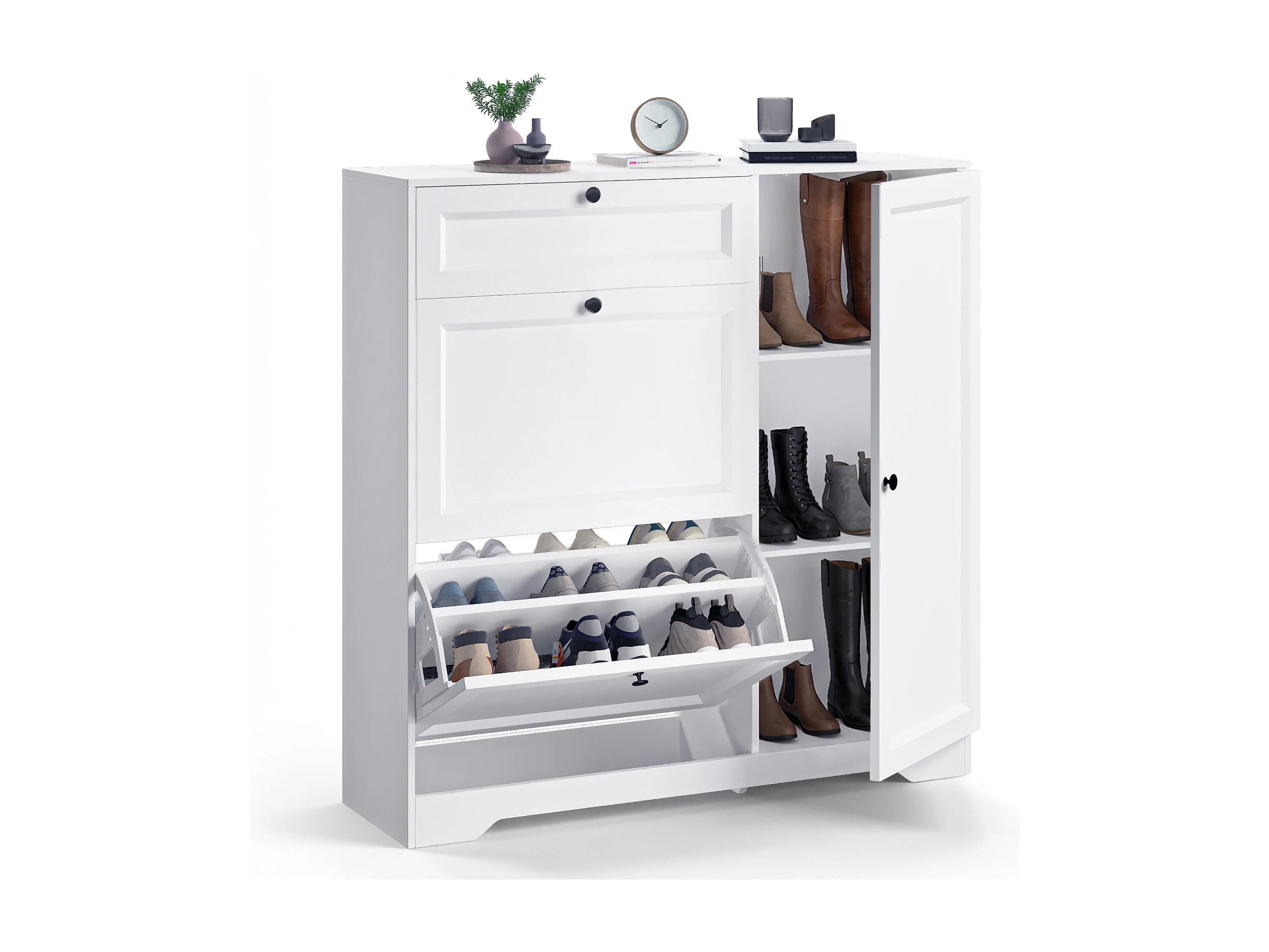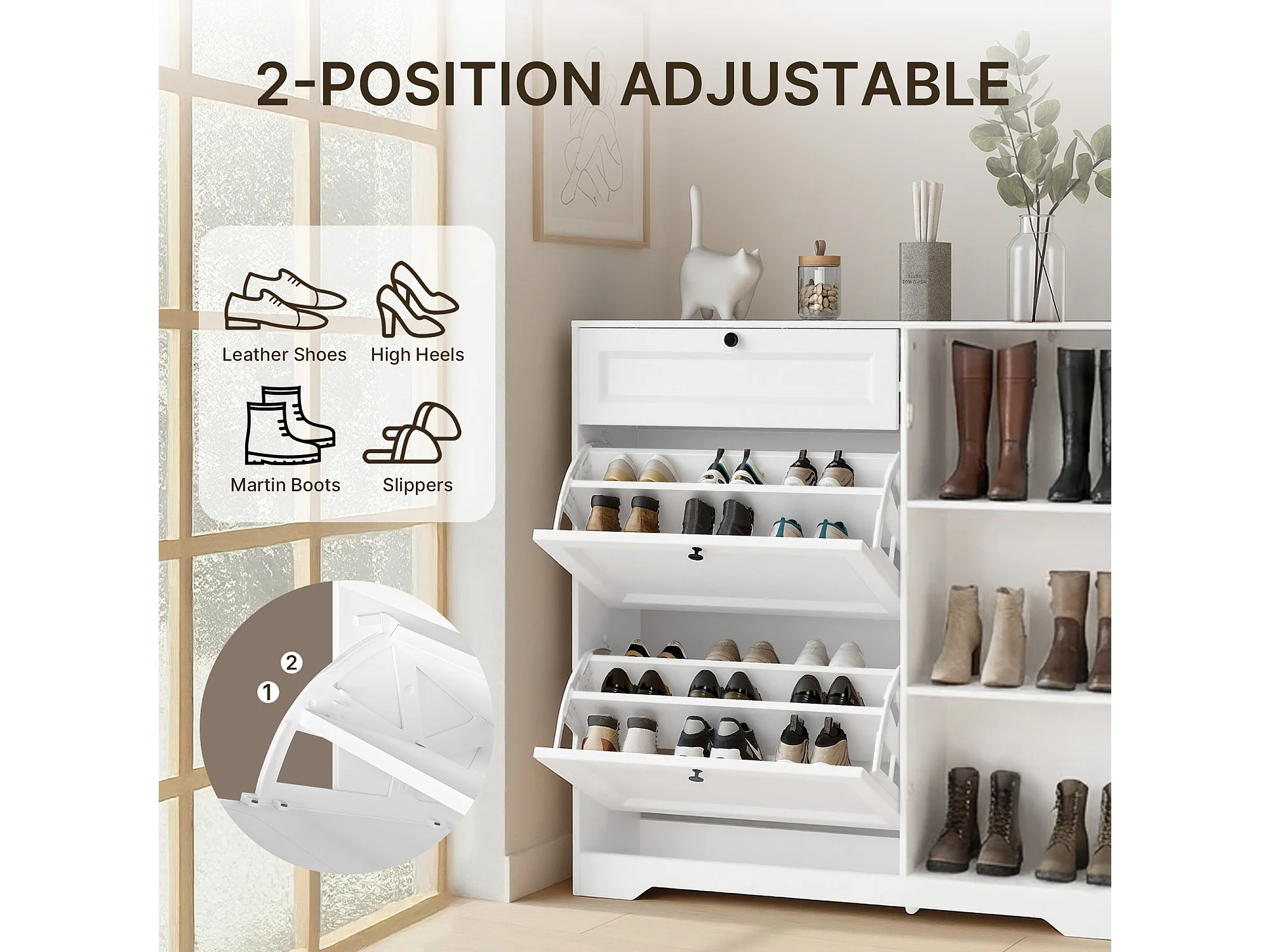 Bealife 3-en-1 Meuble chaussures avec 2 abattants,– 100x30x102 cm, Blanc - Étagères réglables en hauteur, Meuble chaussures spacieux et fonctionnel