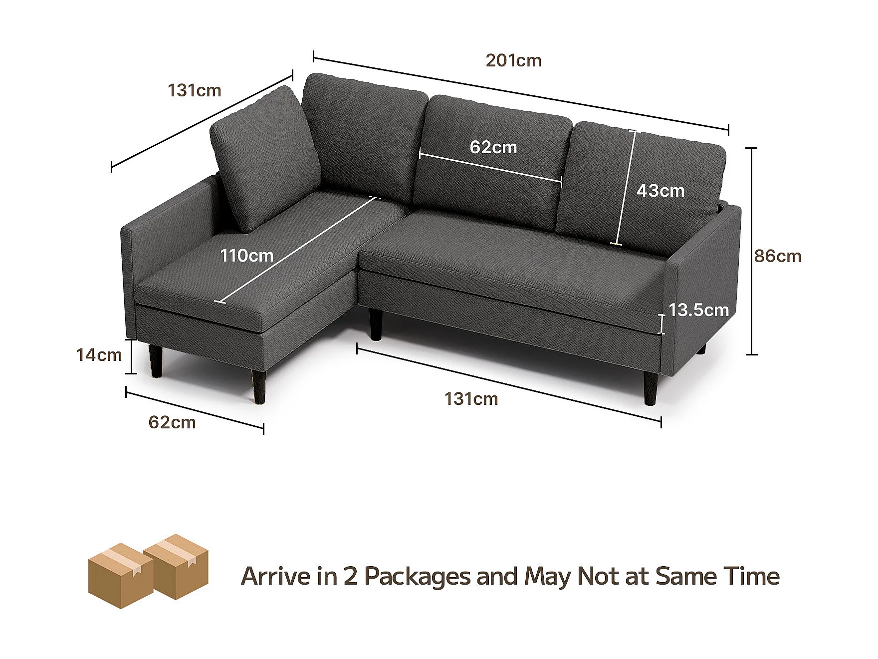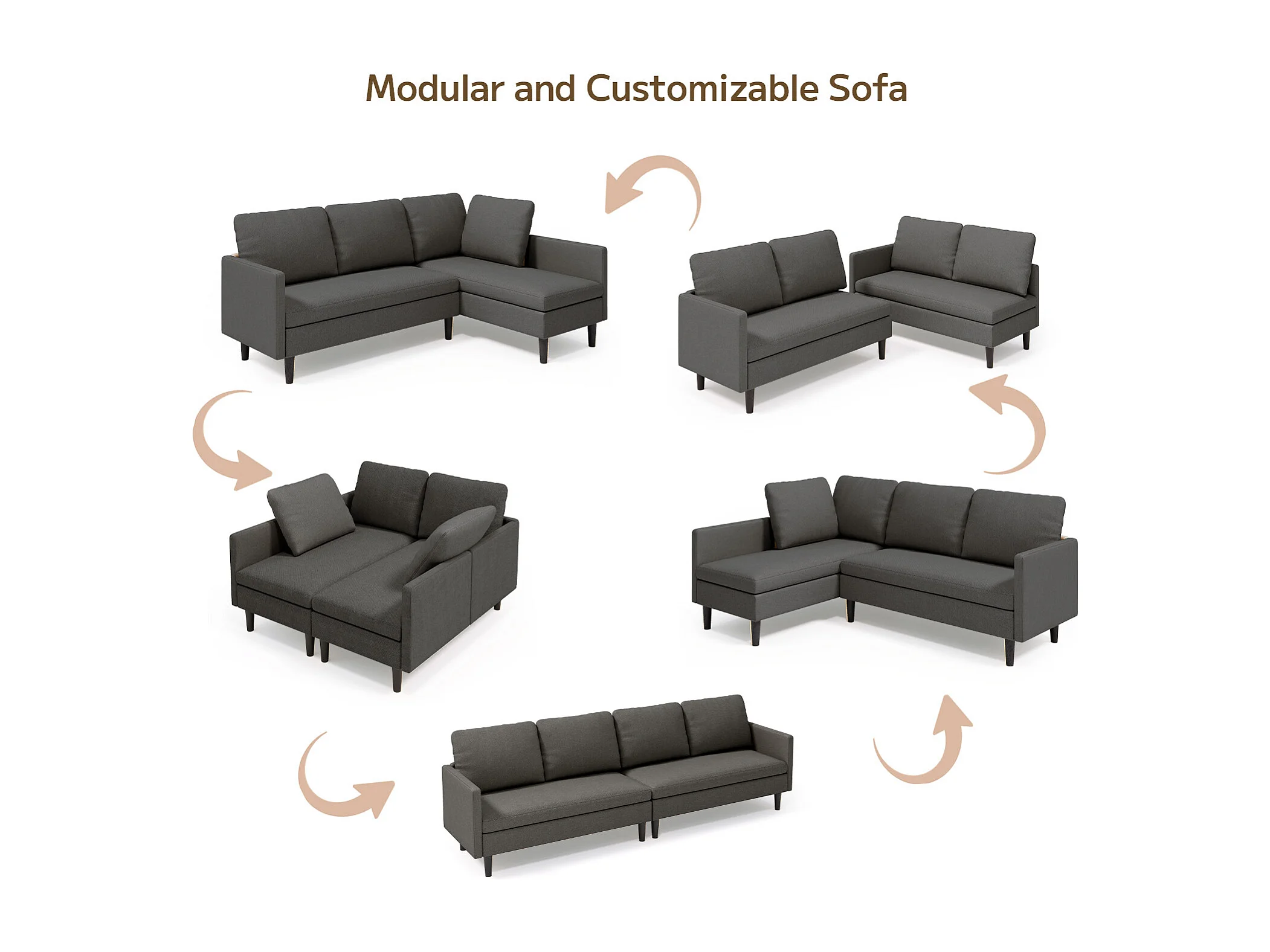 Bealife Canapé d’angle modulable 5 modes de combinaison, angle droit canapé convertible avec accoudoirs réglables - Gris anthracite