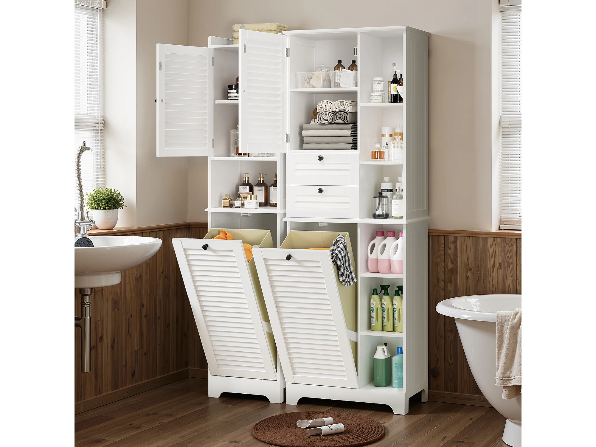 Bealife Meuble Colonne Salle De Bain Rangement Sur Pied Armoire 1 Porte Et 2 Tiroirs 6 Étagères