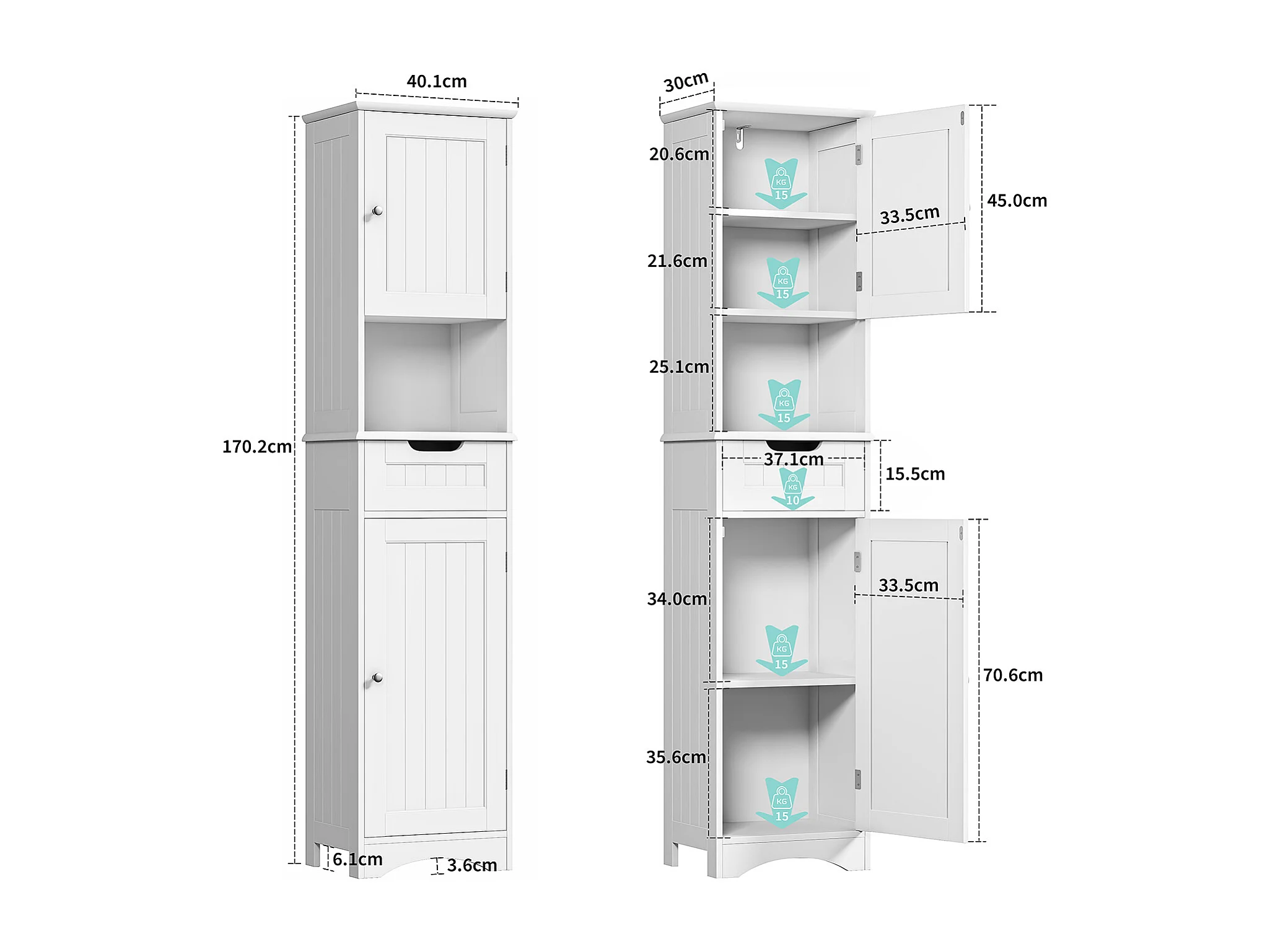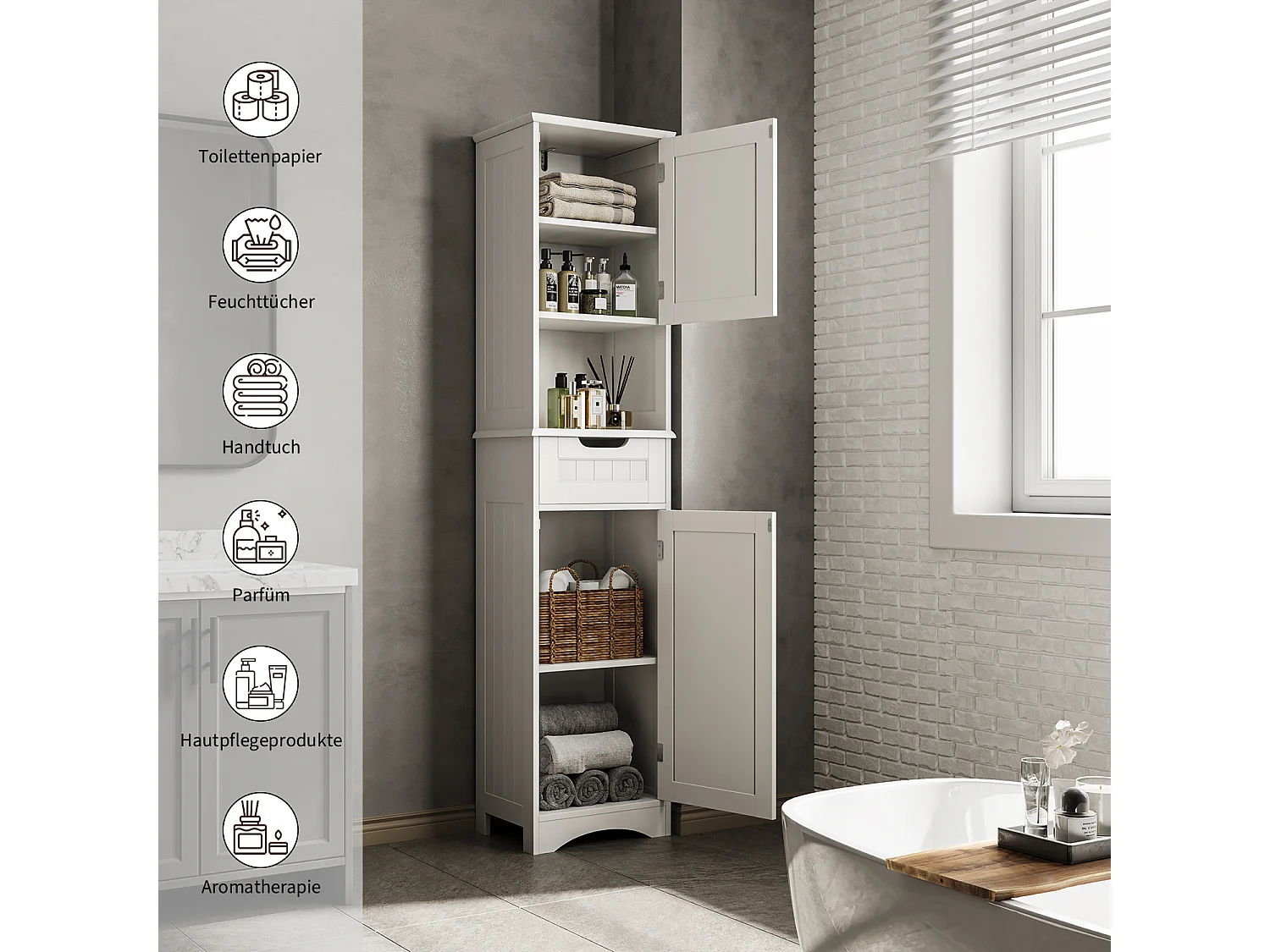 Bealife Meuble Colonne Salle de Bain Rangement sur Pied Armoire Haute 2 Portes et 1 Tiroir 1 Placard Ouverte Étagère Réglable