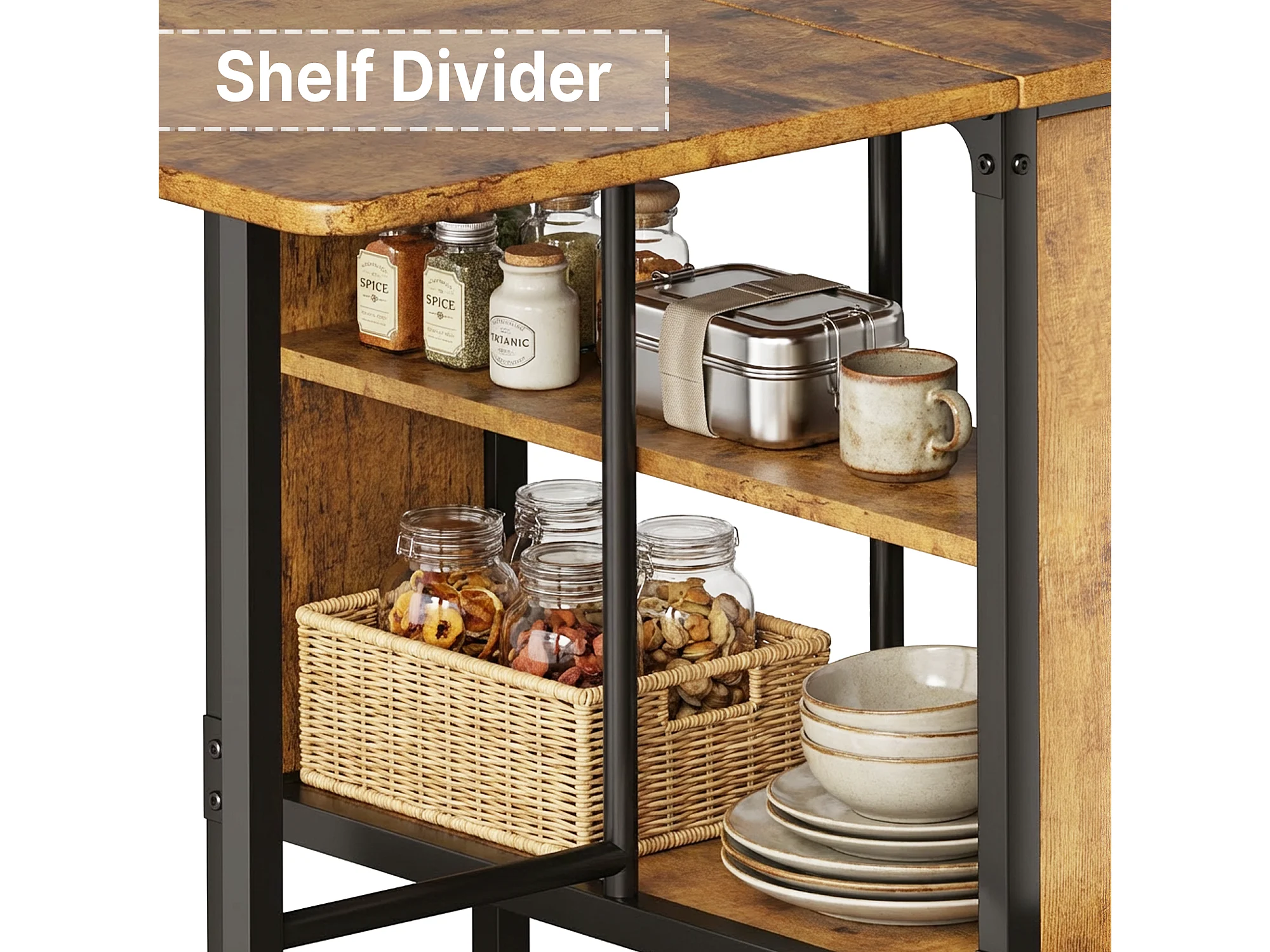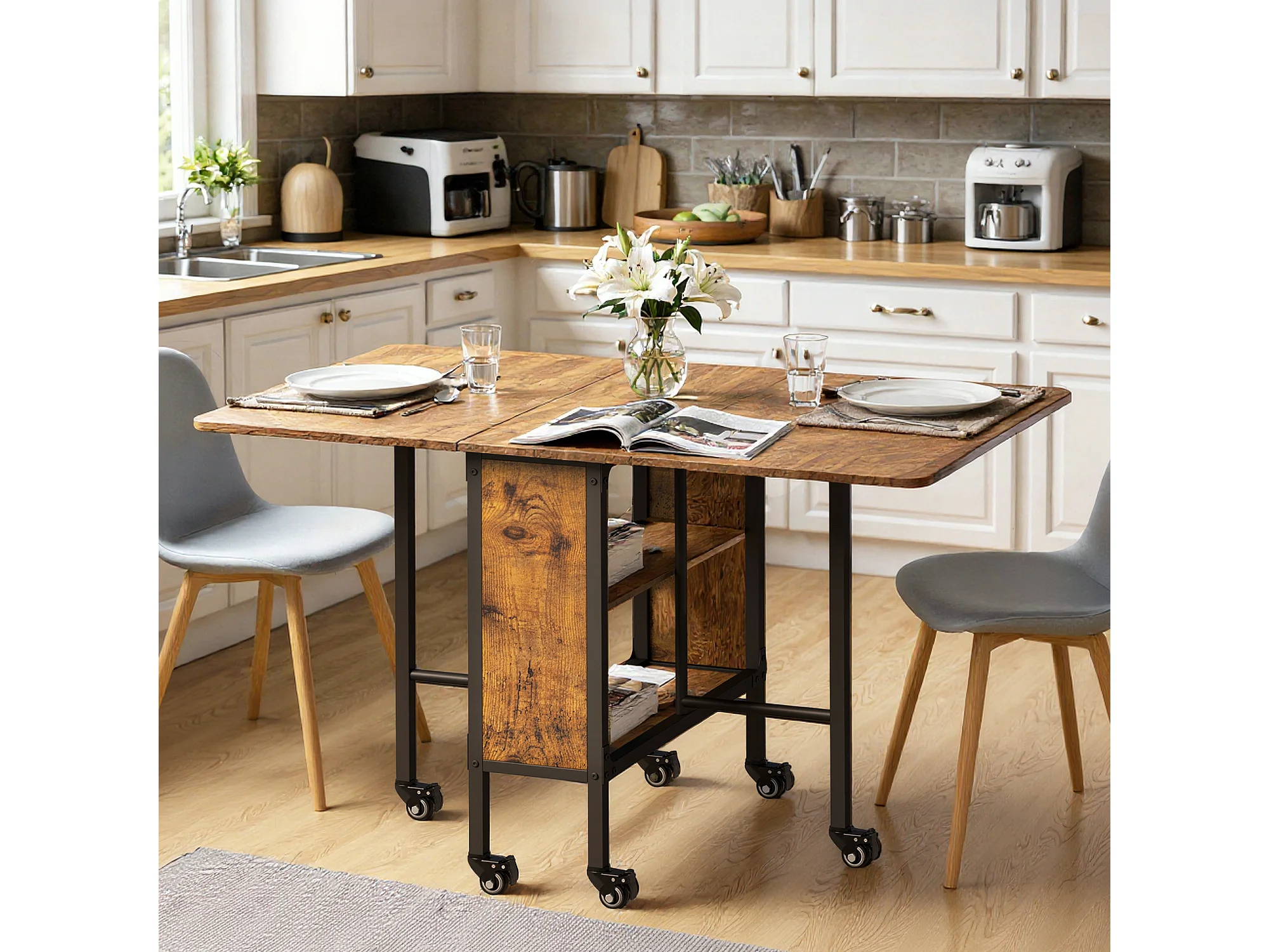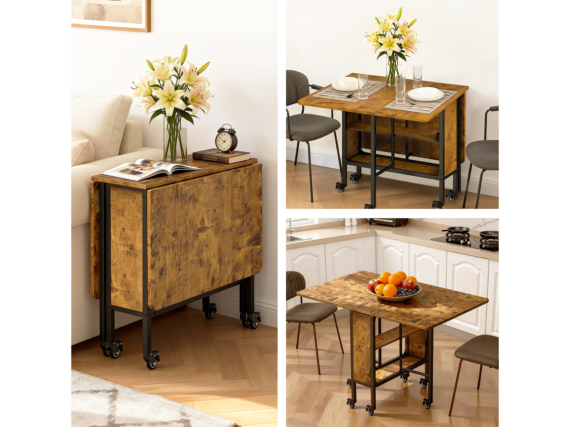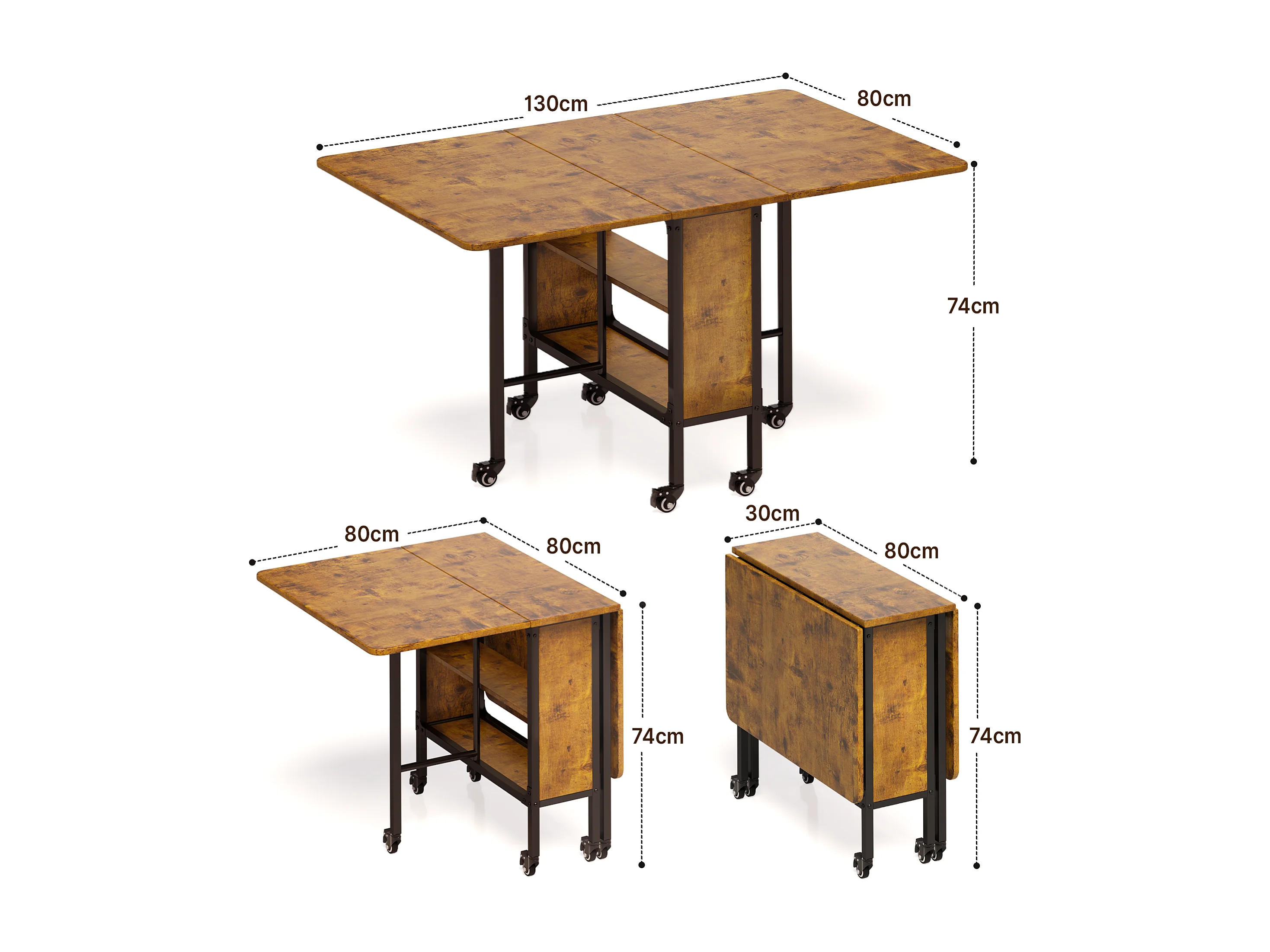 Bealife Table à Manger Mobile et Pliable Naturel foncé 3 en 1 130×80×74, Pliable des Deux Côtés, Gain de Place, Multifonction