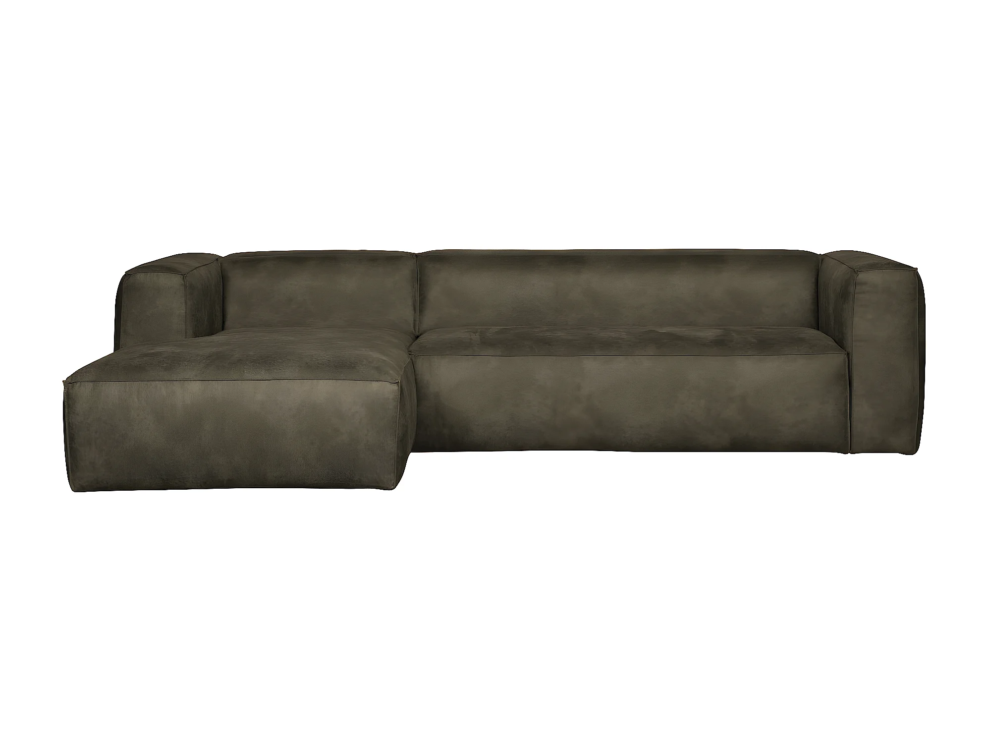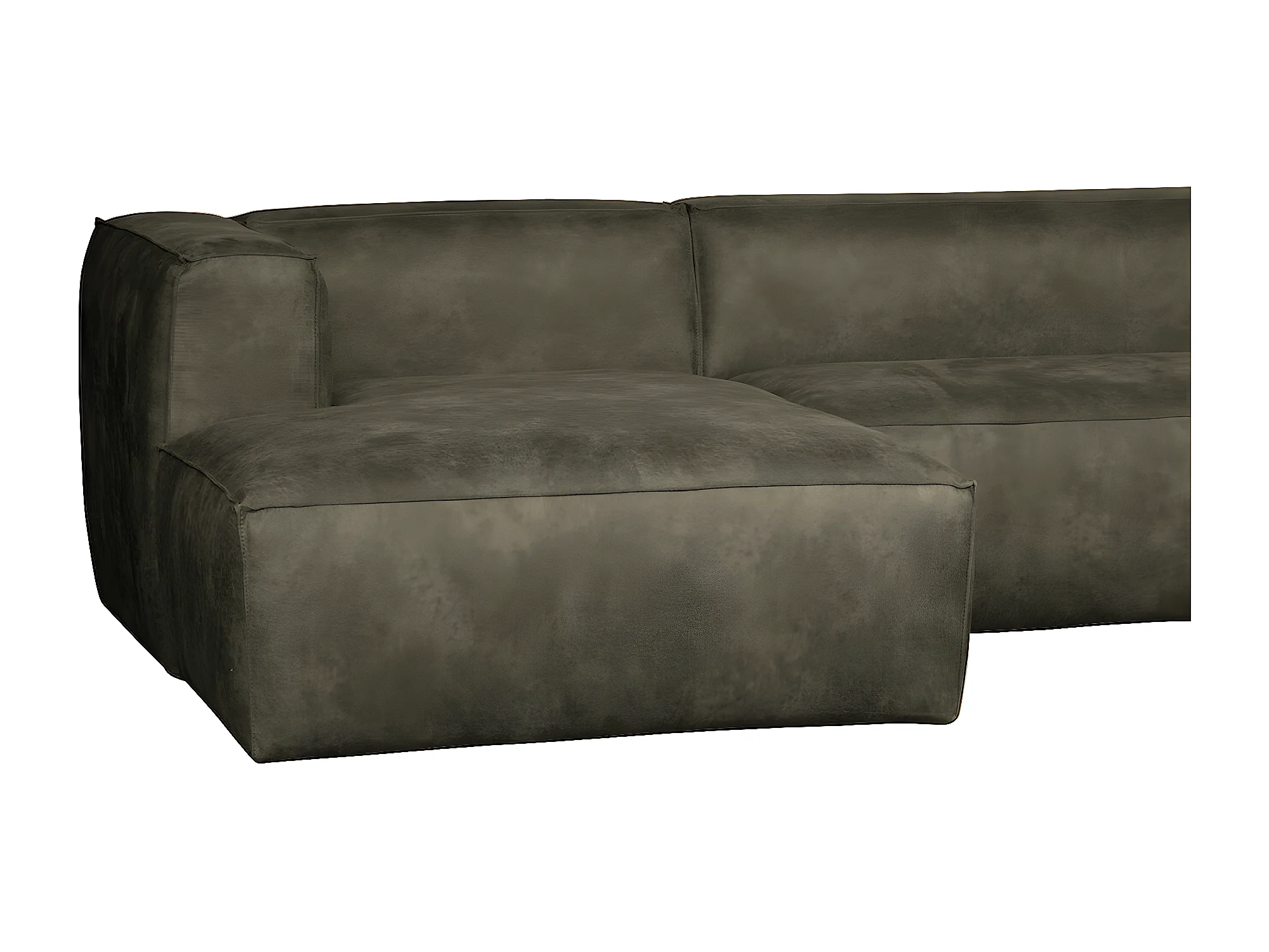 BEAN - Canapé d'angle gauche 5 places en cuir recyclé kaki