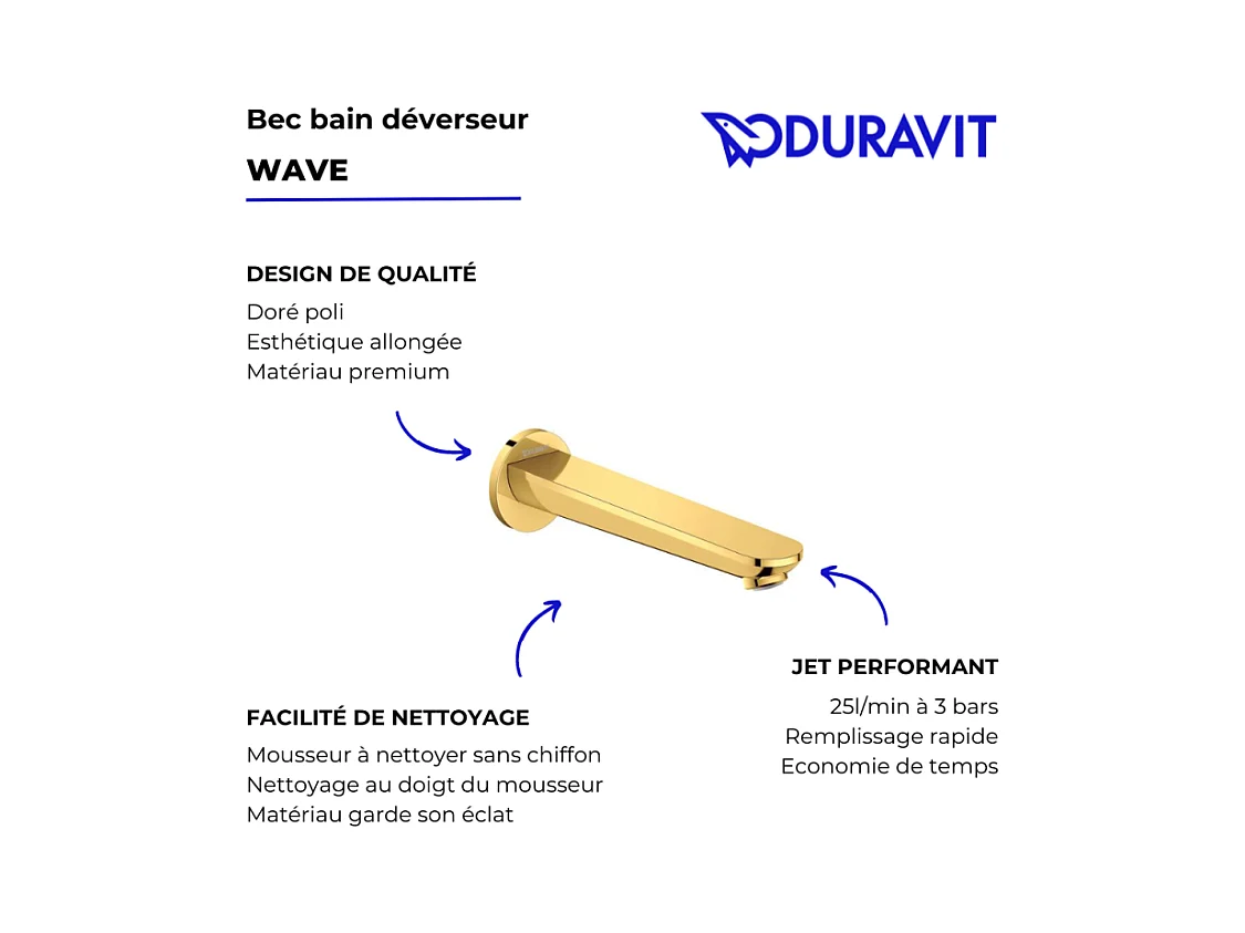 Bec de baignoire VILLEROY ET BOCH Architectura Square montage mural Or brossé