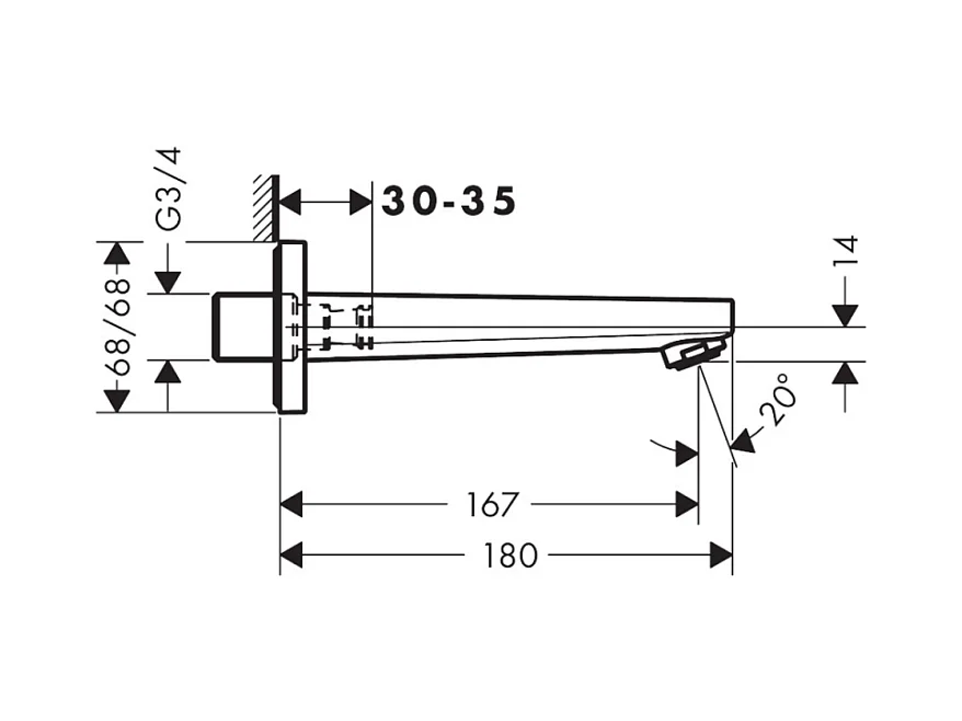Bec déverseur mural baignoire HANSGROHE Metropol chromé