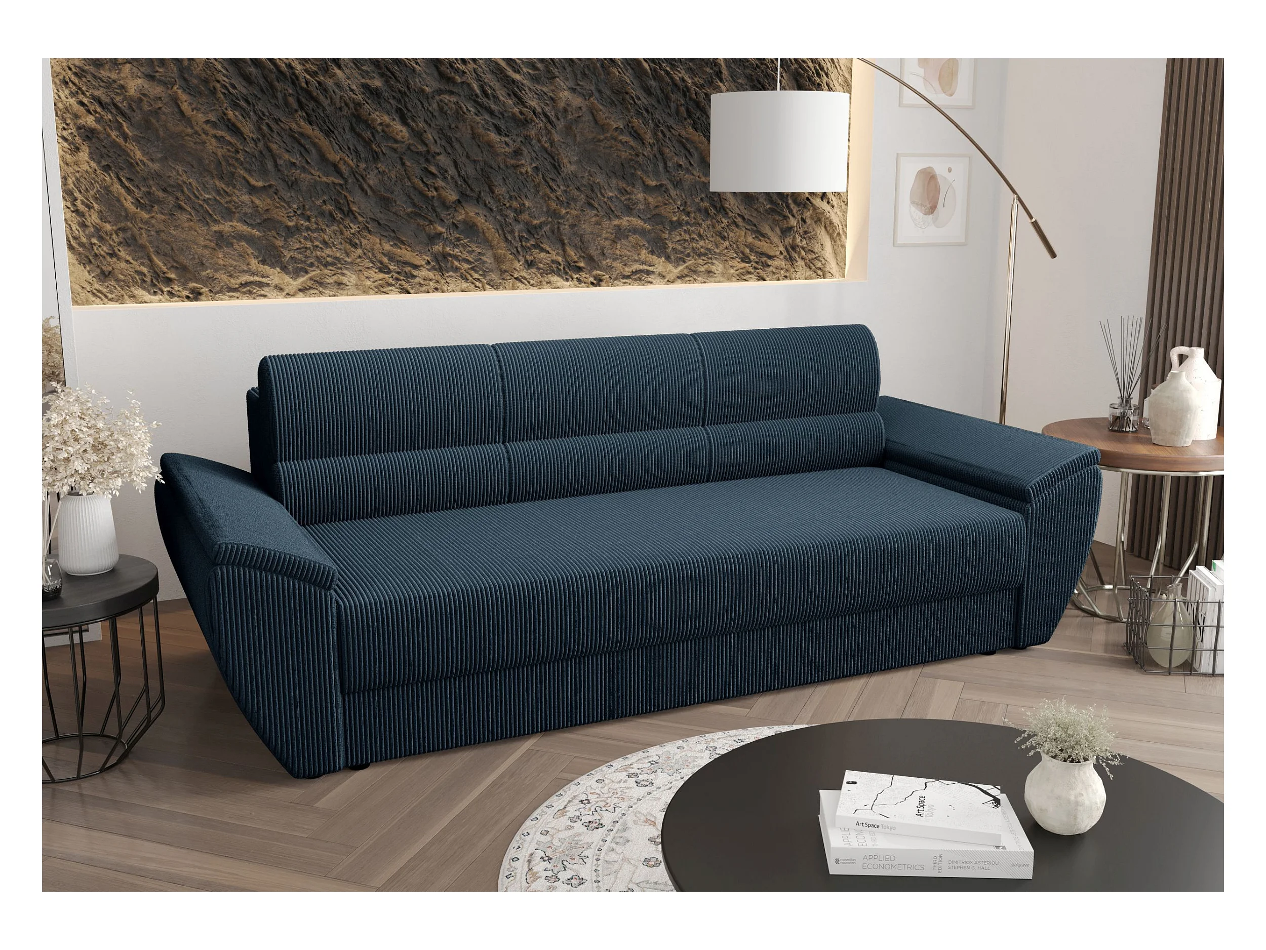 BEDANTE CANAPÉ REBI BIS avec fonction lit POSO 05 Bleu foncé avec espace de rangement, coffre de lit, canapé de salon, sofa, canapé-lit, canapé avec coffre