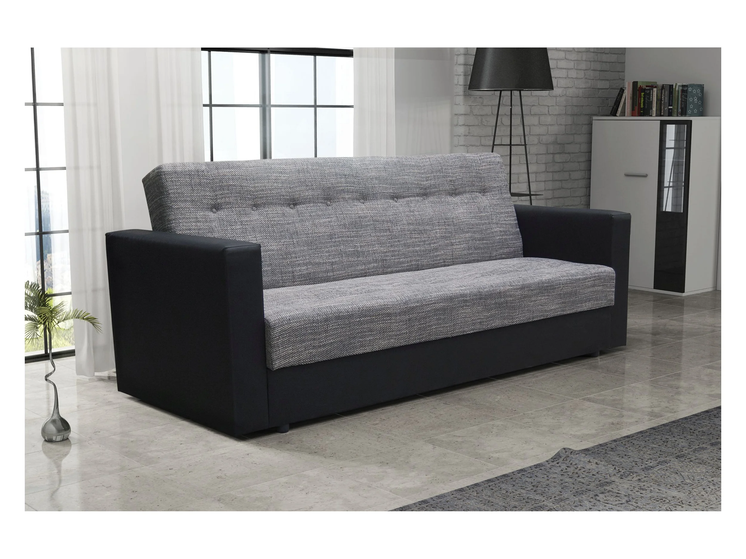 BEDANTE CANAPÉ WIND avec fonction lit KORNET02+DOLARO8 Gris/Noir avec espace de rangement, coffre de lit, canapé de salon, sofa, canapé-lit, canapé avec coffre