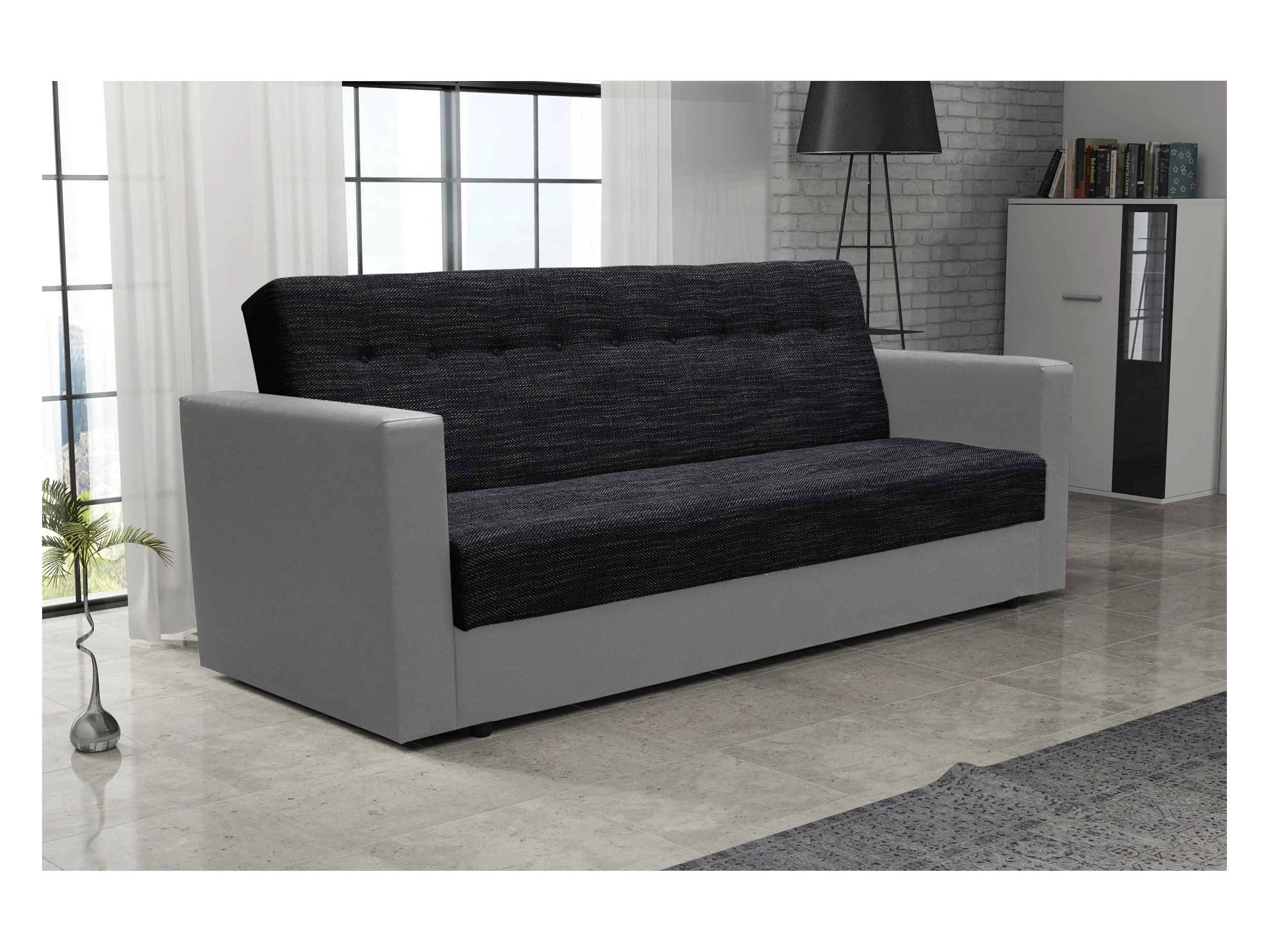 BEDANTE CANAPÉ WIND avec fonction lit KORNET10+DOLARO4 Noir/Gris avec espace de rangement, coffre de lit, canapé de salon, sofa, canapé-lit, canapé avec coffre