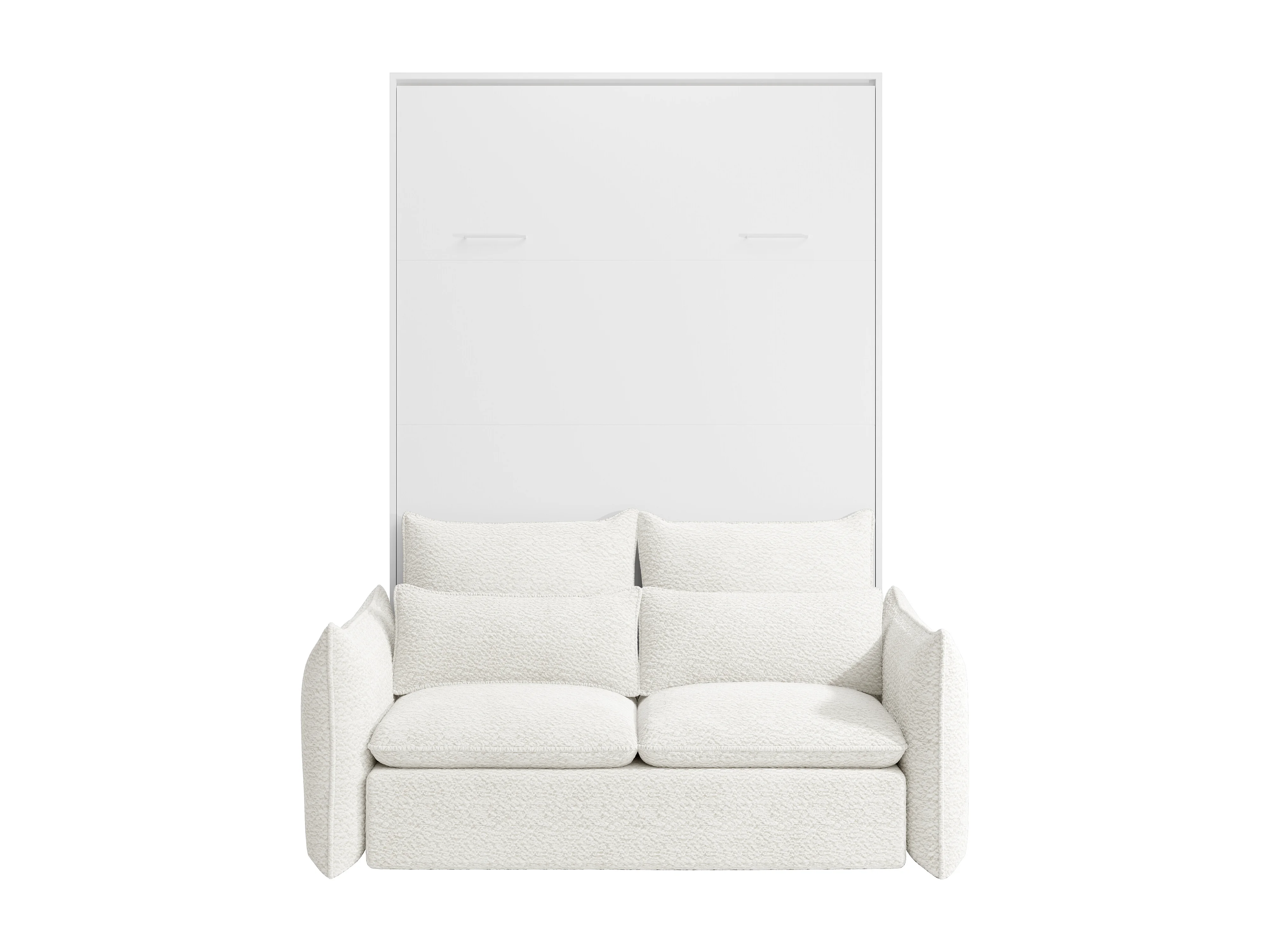 Lit escamotable 160 x 200 cm - Ouverture verticale manuelle - Blanc + Canapé + Matelas - BEGANIO