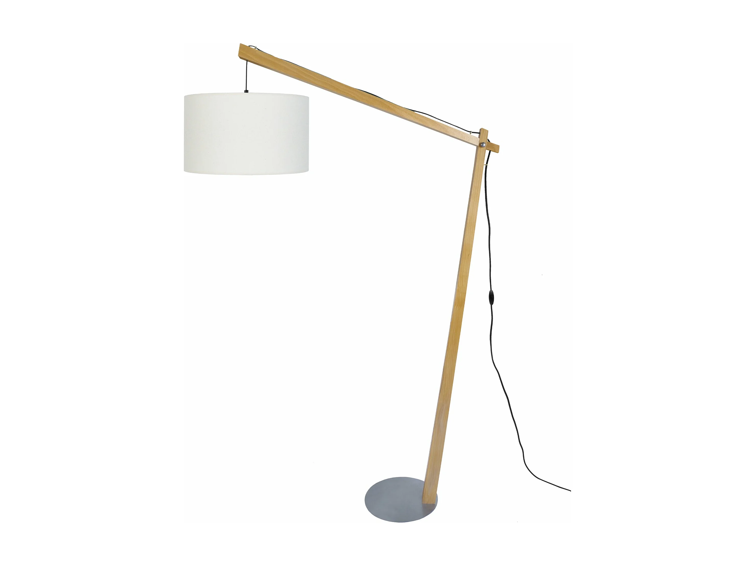 Lampadaire arqué bois naturel,écru 165 cm.