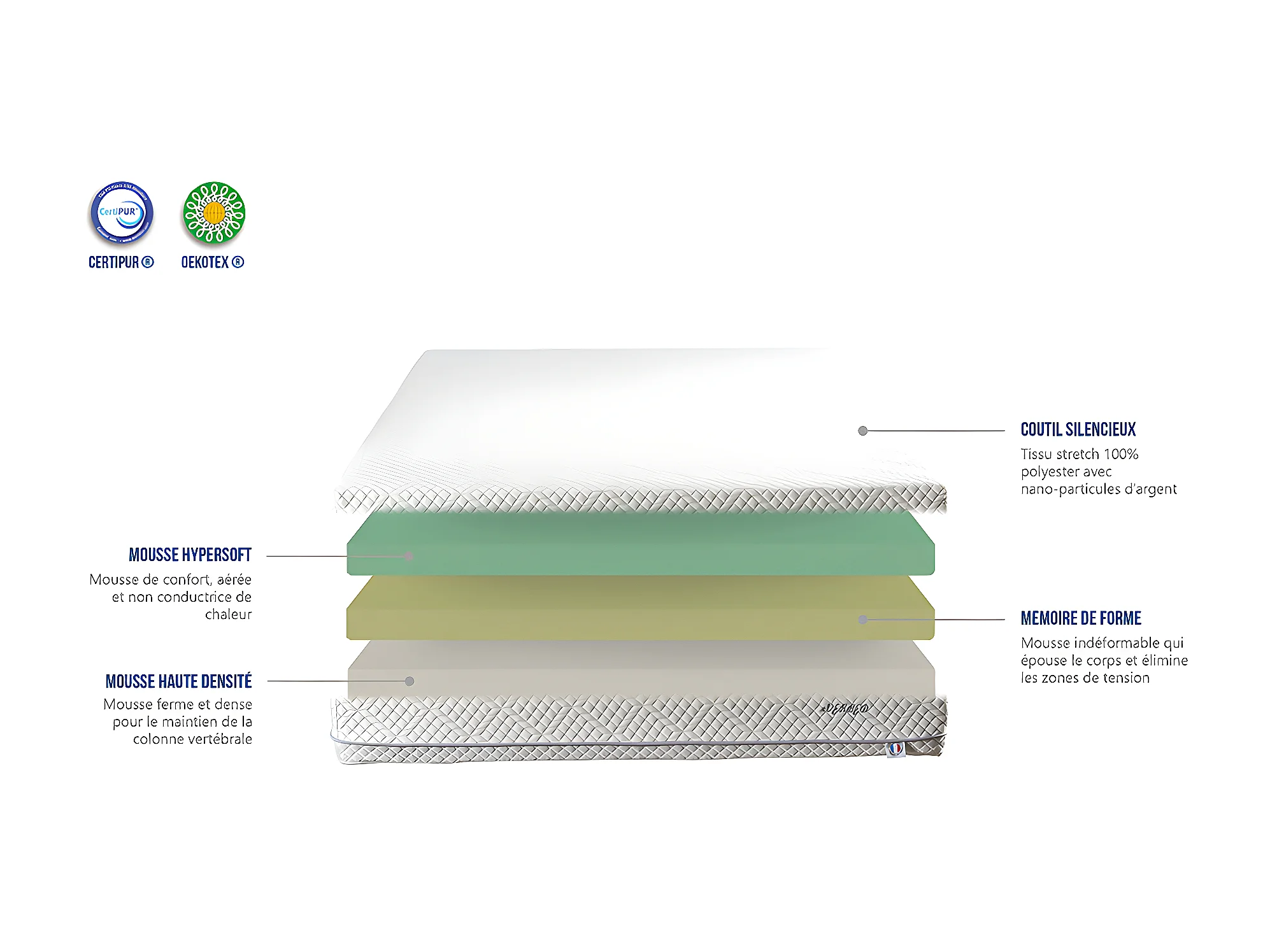 BELLECOUR LITERIE | Ensemble EVERBED 140x190 cm | Matelas Mémoire de forme + Sommier Bois