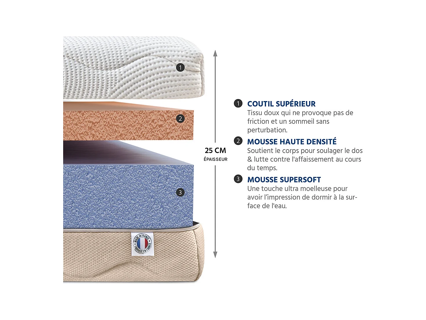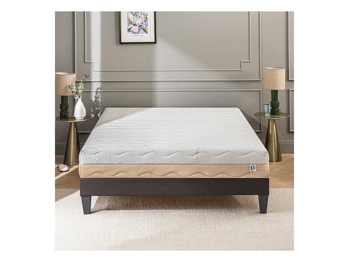 BELLECOUR LITERIE | Ensemble LEMAN 160x200 cm | Matelas Mousse hypersoft + Sommier Bois