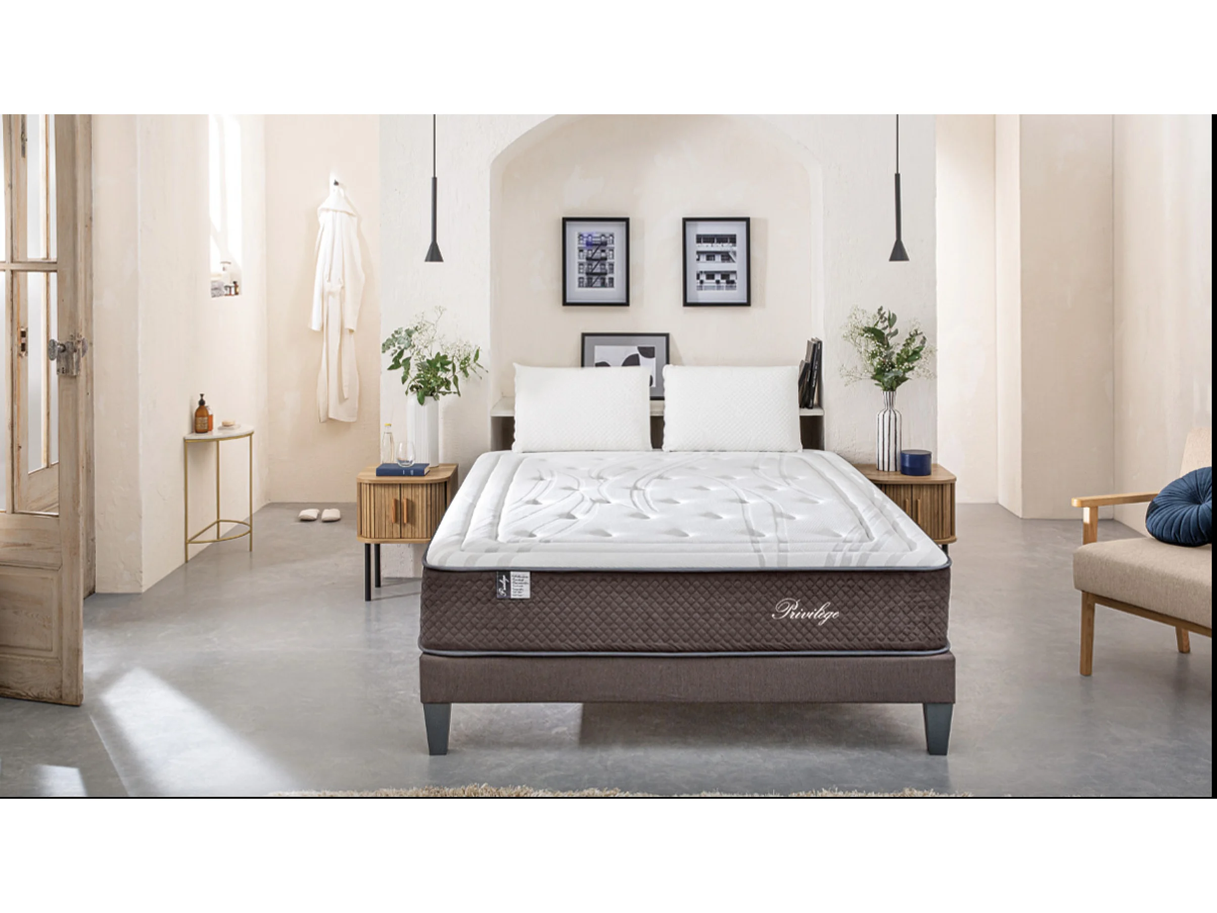 Ensemble matelas ferme 30cm à ressorts ensachés et sommier en bois Privilège-90x190