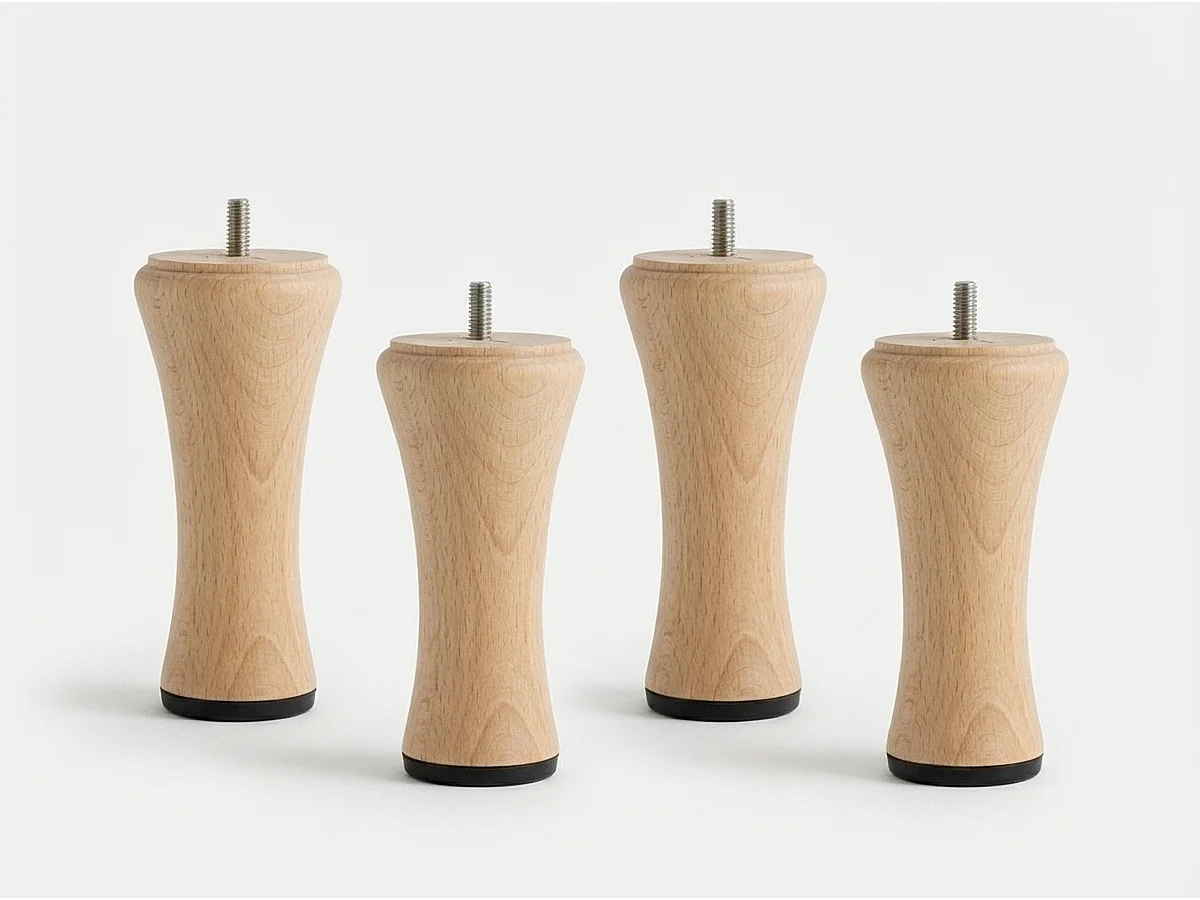 BELLECOUR LITERIE | Jeu de pieds de lit diabolo en bois vernis Hauteur 20 cm (lot de 4)