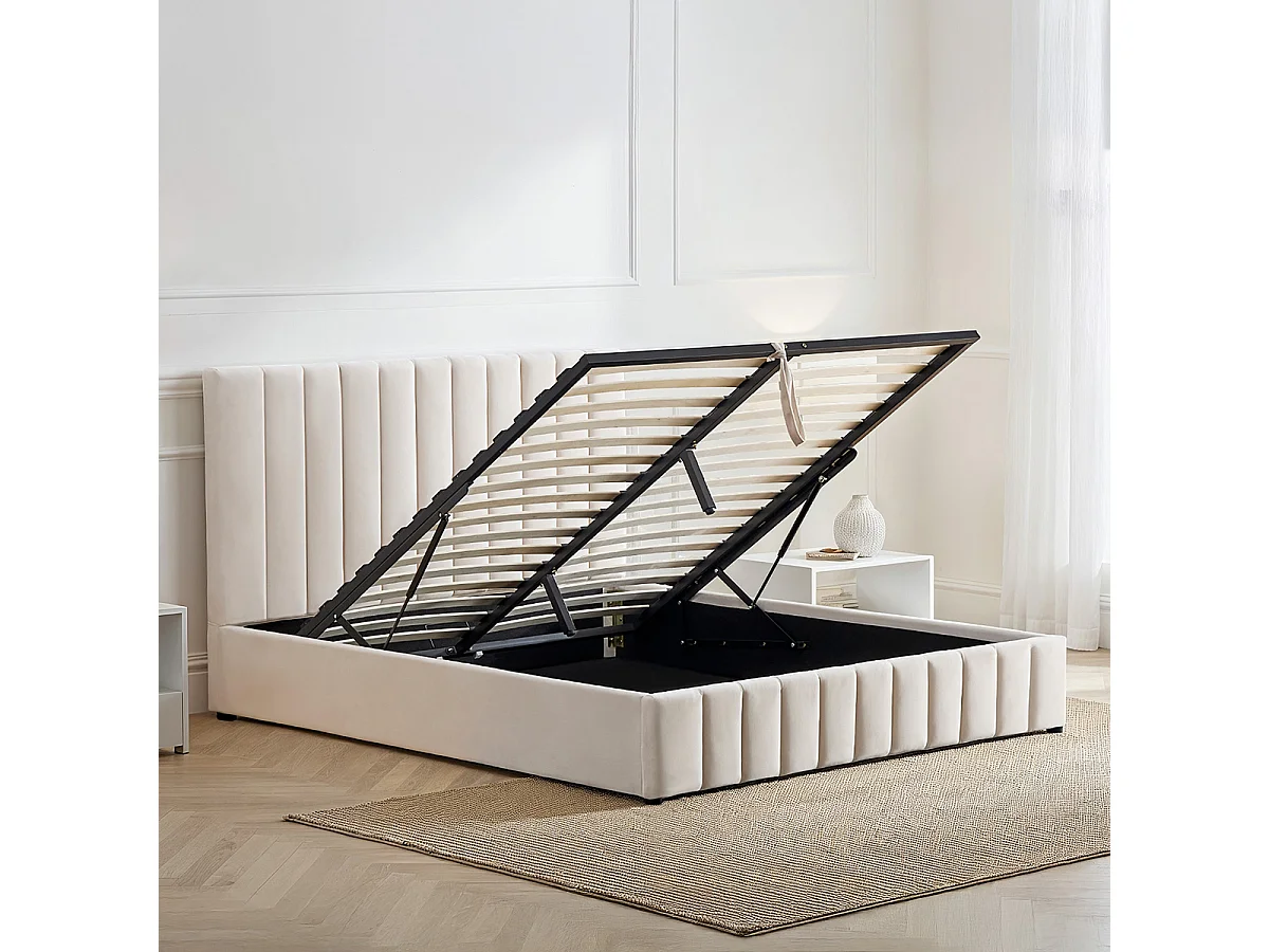 BELLECOUR LITERIE | Lit coffre velours beige TROCADERO 160x200 cm