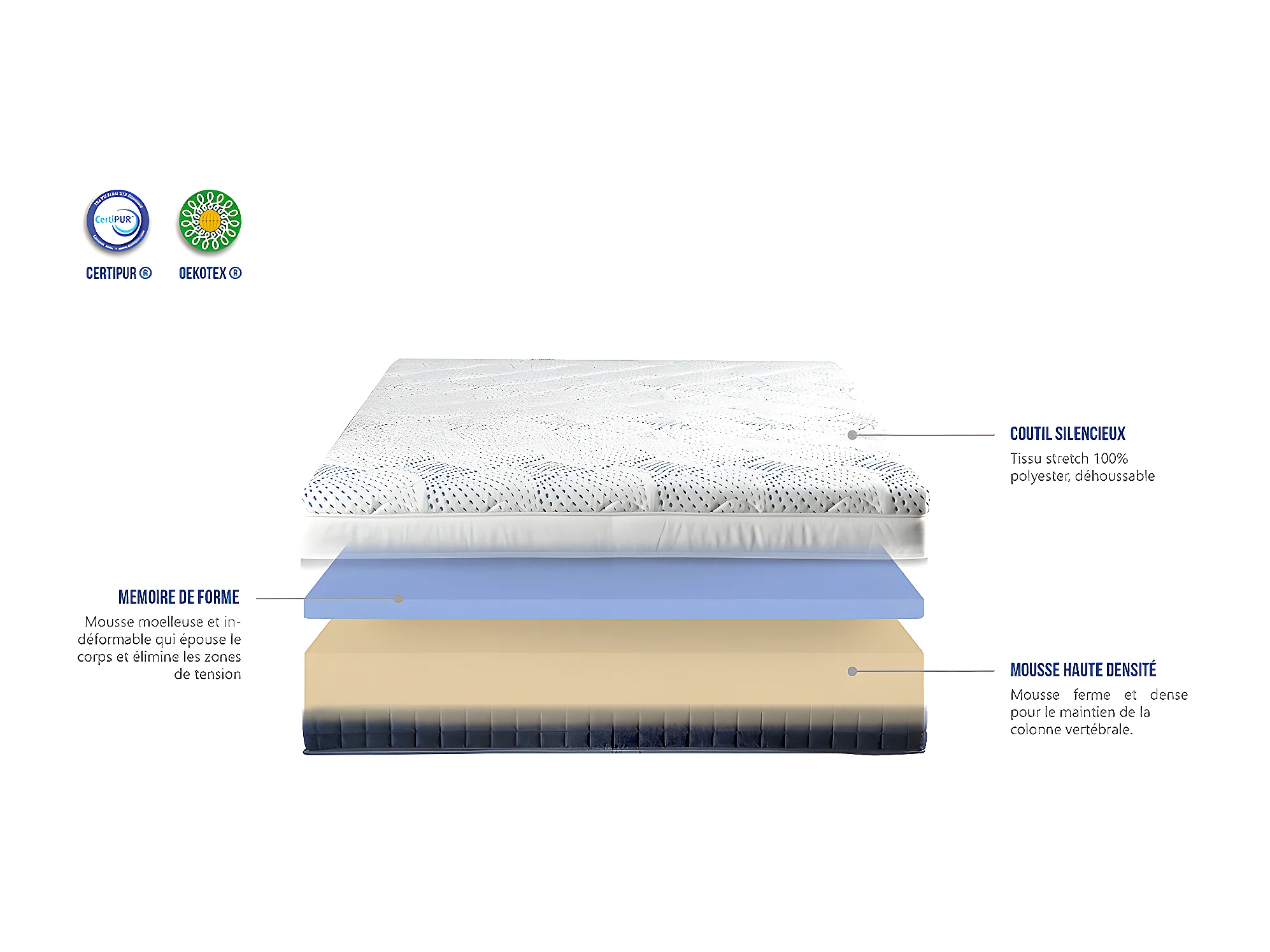 BELLECOUR LITERIE | Pack Prêt à dormir CASTELLANE 180x200 cm | Matelas Mémoire de forme + Sommier + Accessoires