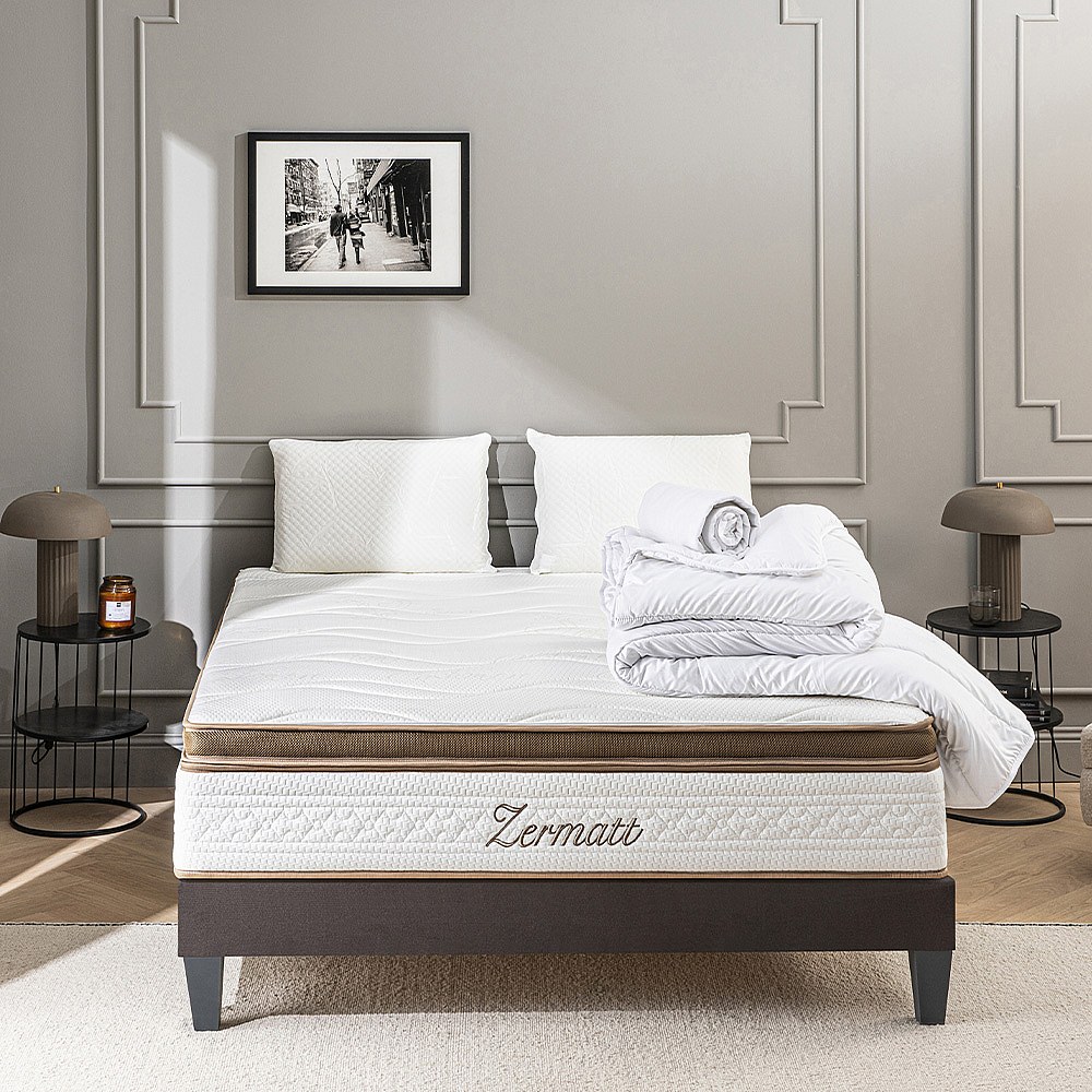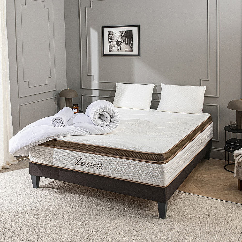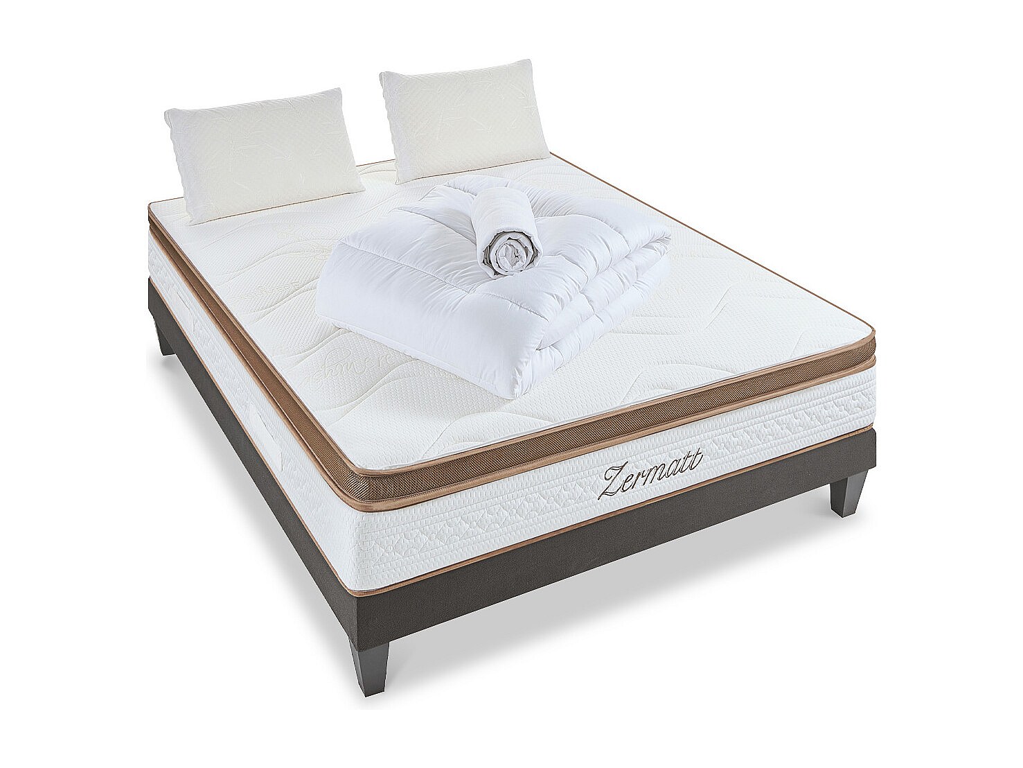 BELLECOUR LITERIE | Pack Prêt à dormir ZERMATT 180x200 cm | Matelas Mémoire de forme + Sommier + Accessoires
