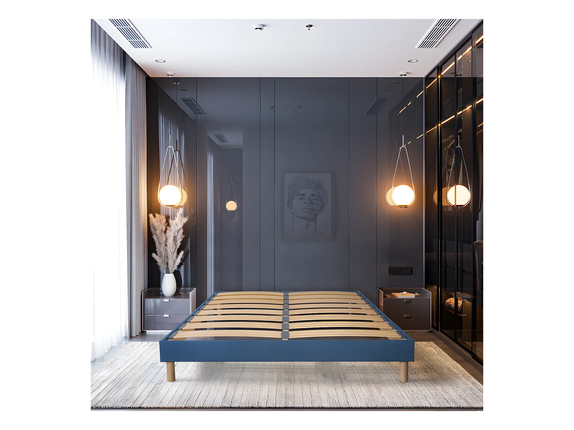 BELLECOUR LITERIE | Sommier à lattes en bois LUMIERE 180x200 cm | Coloris Bleu marine | Livré en kit