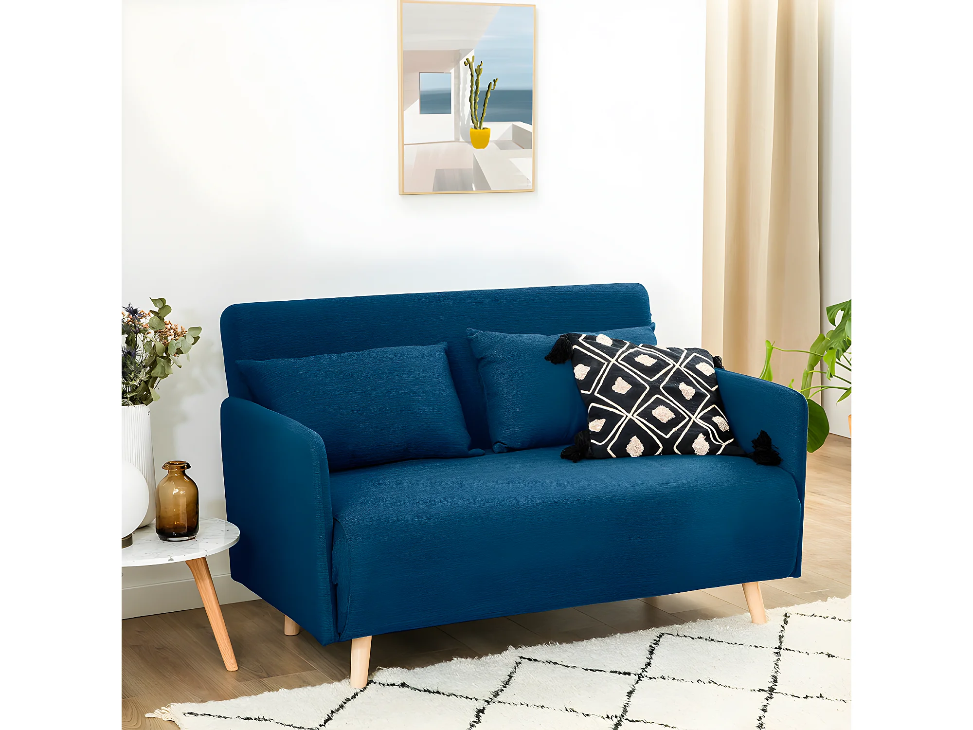 Belushi - Canapé convertible 2 places en tissu L120cm - Couleur - Bleu