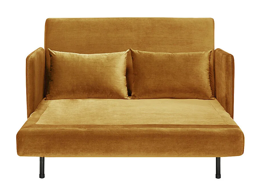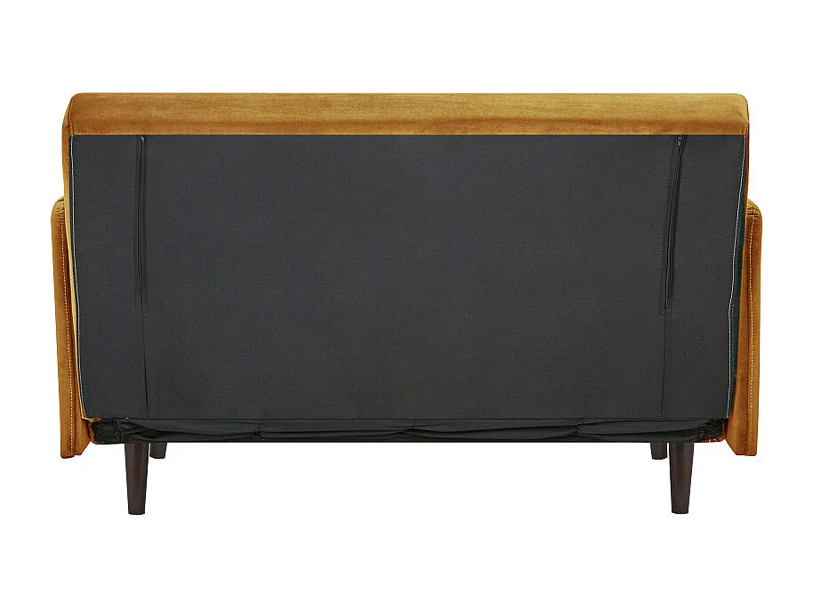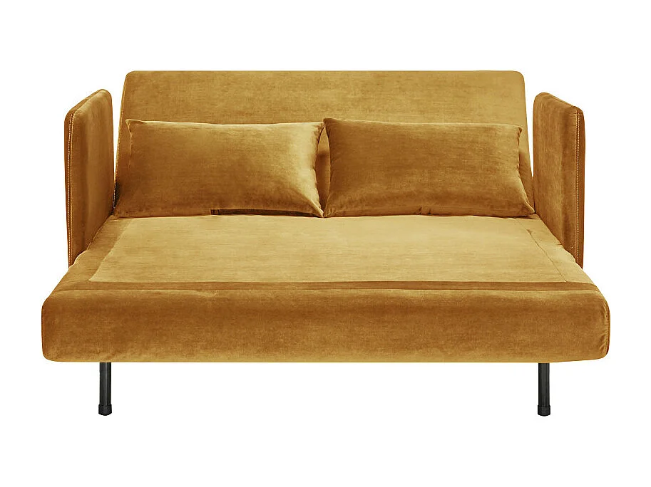 Belushi - Canapé convertible 2 places en velours pieds bois foncé - Jaune moutarde