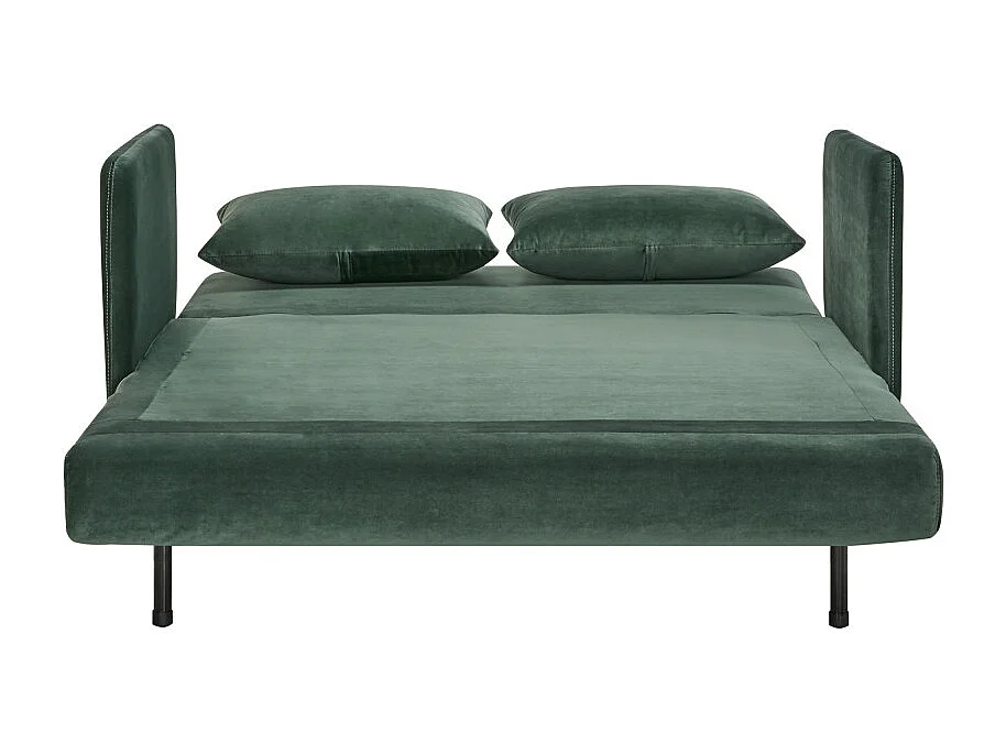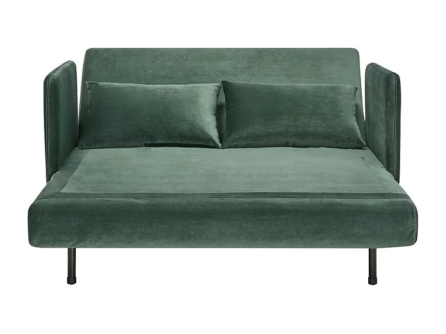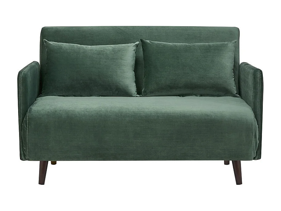 Belushi - Canapé convertible 2 places en velours pieds bois foncé - Vert forêt