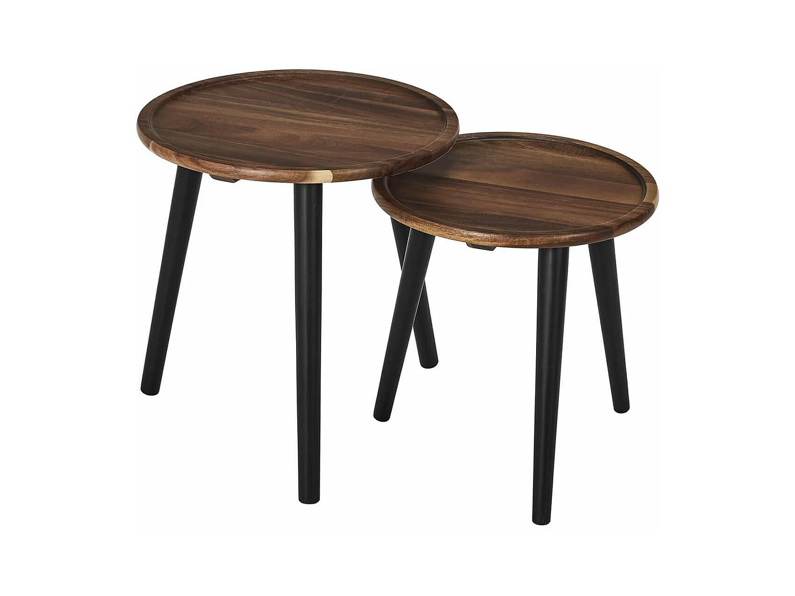 BENEDICT - Lot de 2 tables basses rondes gigogne en acacia teinté noyer