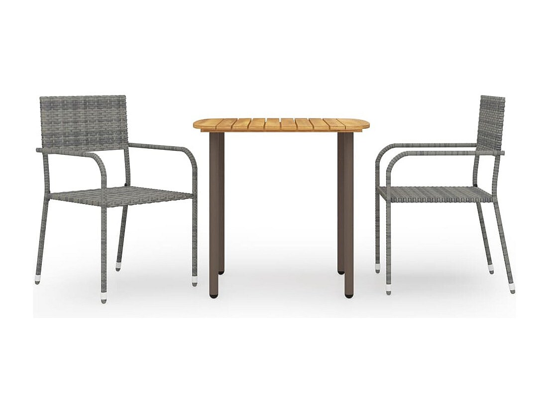 Bergerac Ensemble à manger de jardin 3 pcs Résine tressée Gris