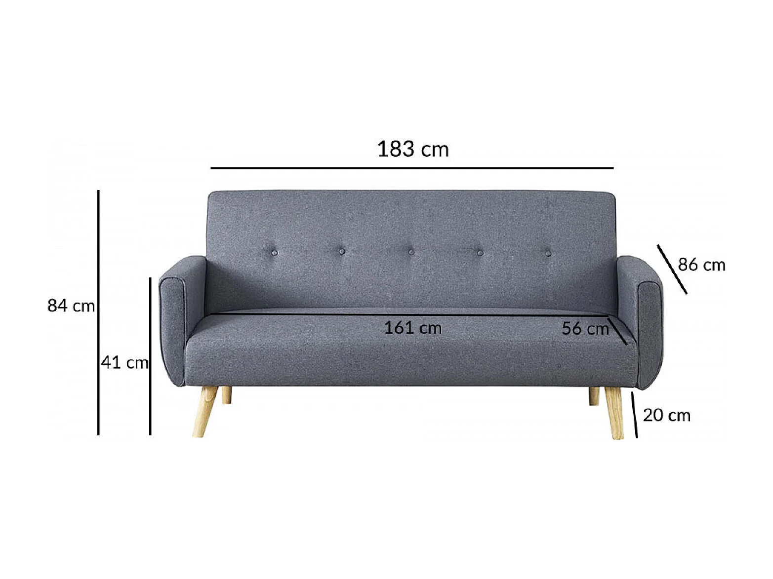 Canapé scandinave convertible 3 places en tissu gris BERLIN