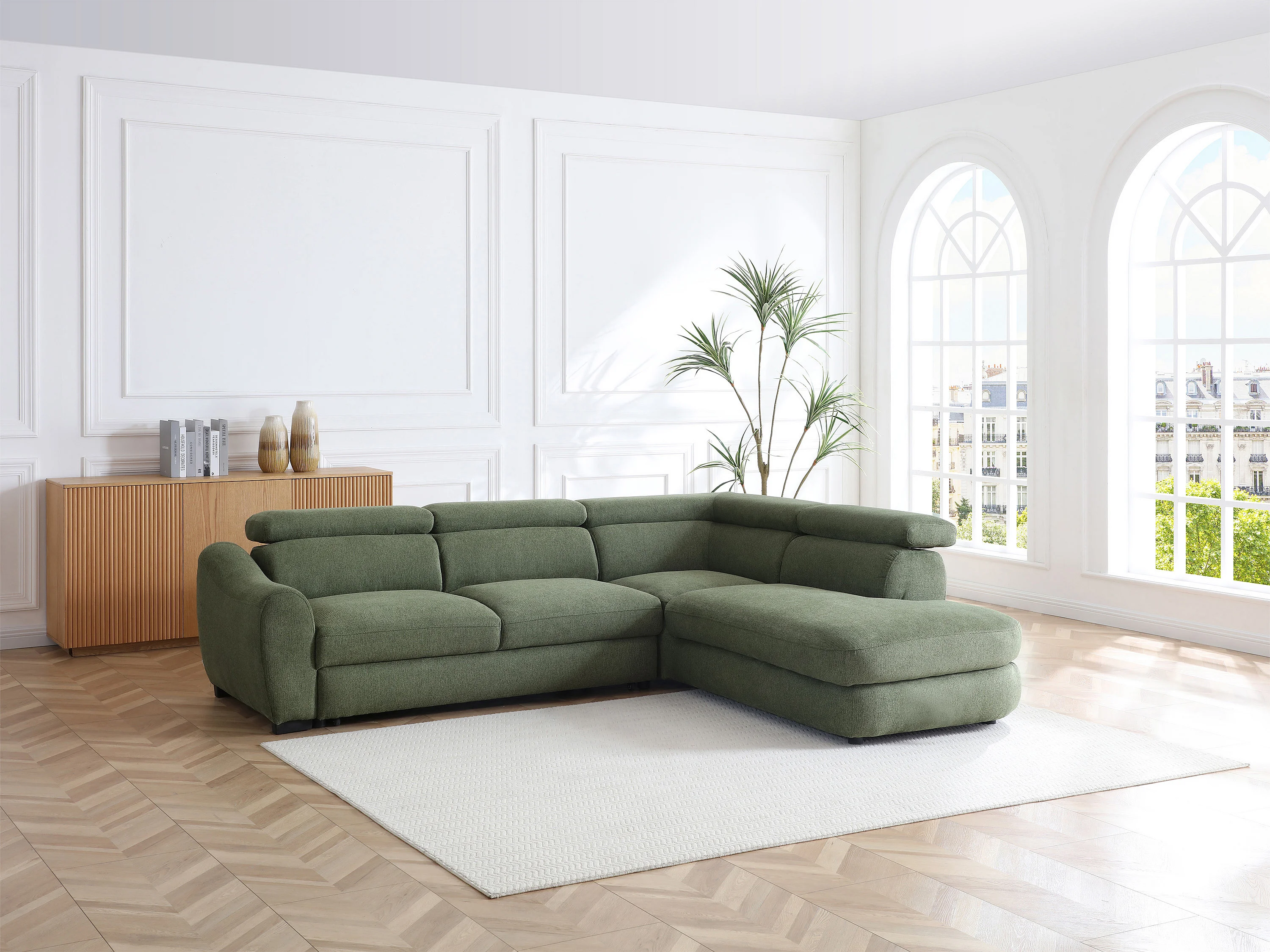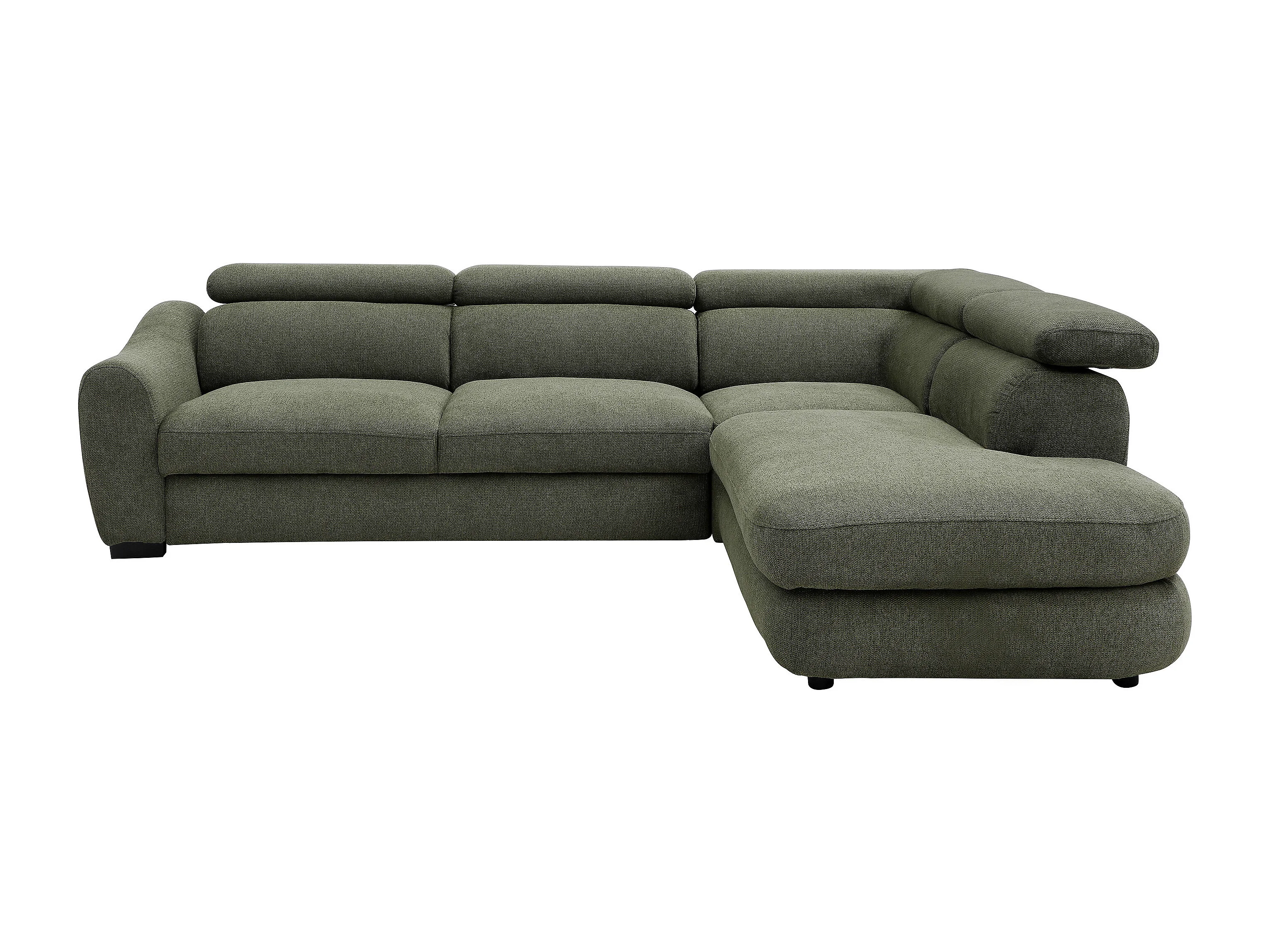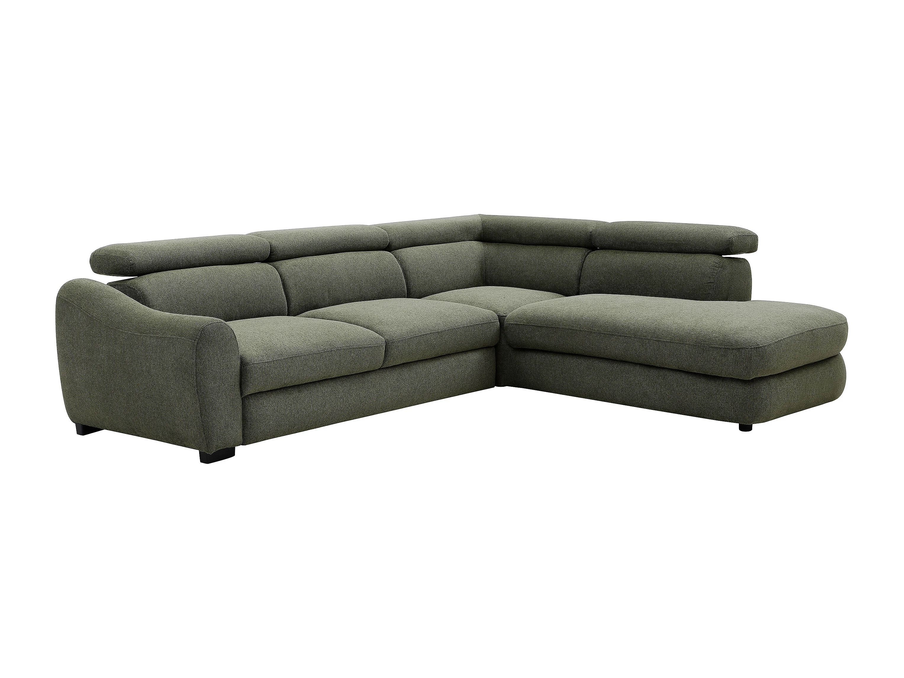 Canapé d'angle droit convertible en tissu texturé vert BESEMA