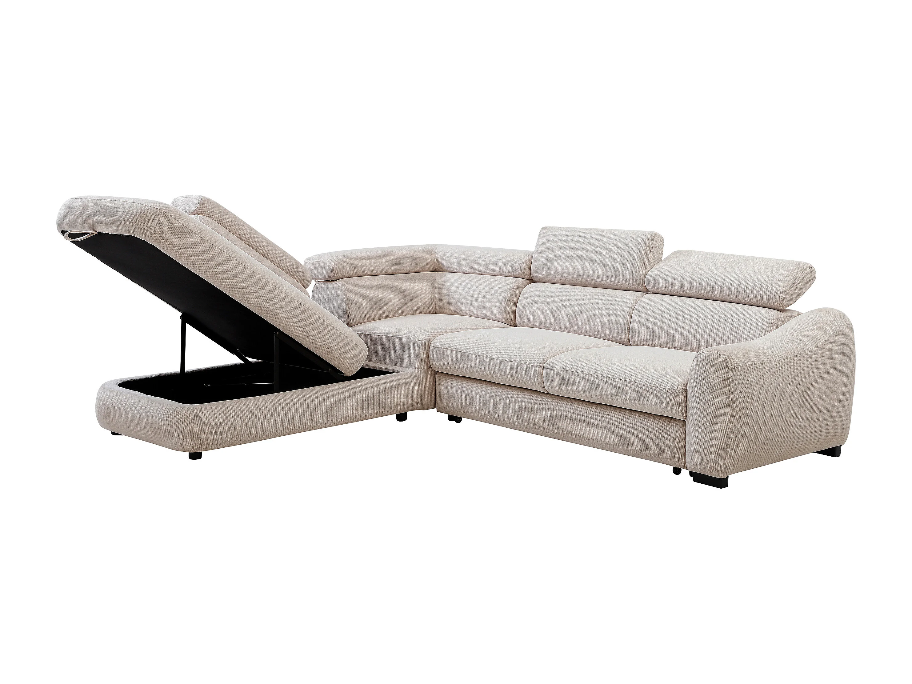 Canapé d'angle gauche convertible en tissu texturé beige BESEMA