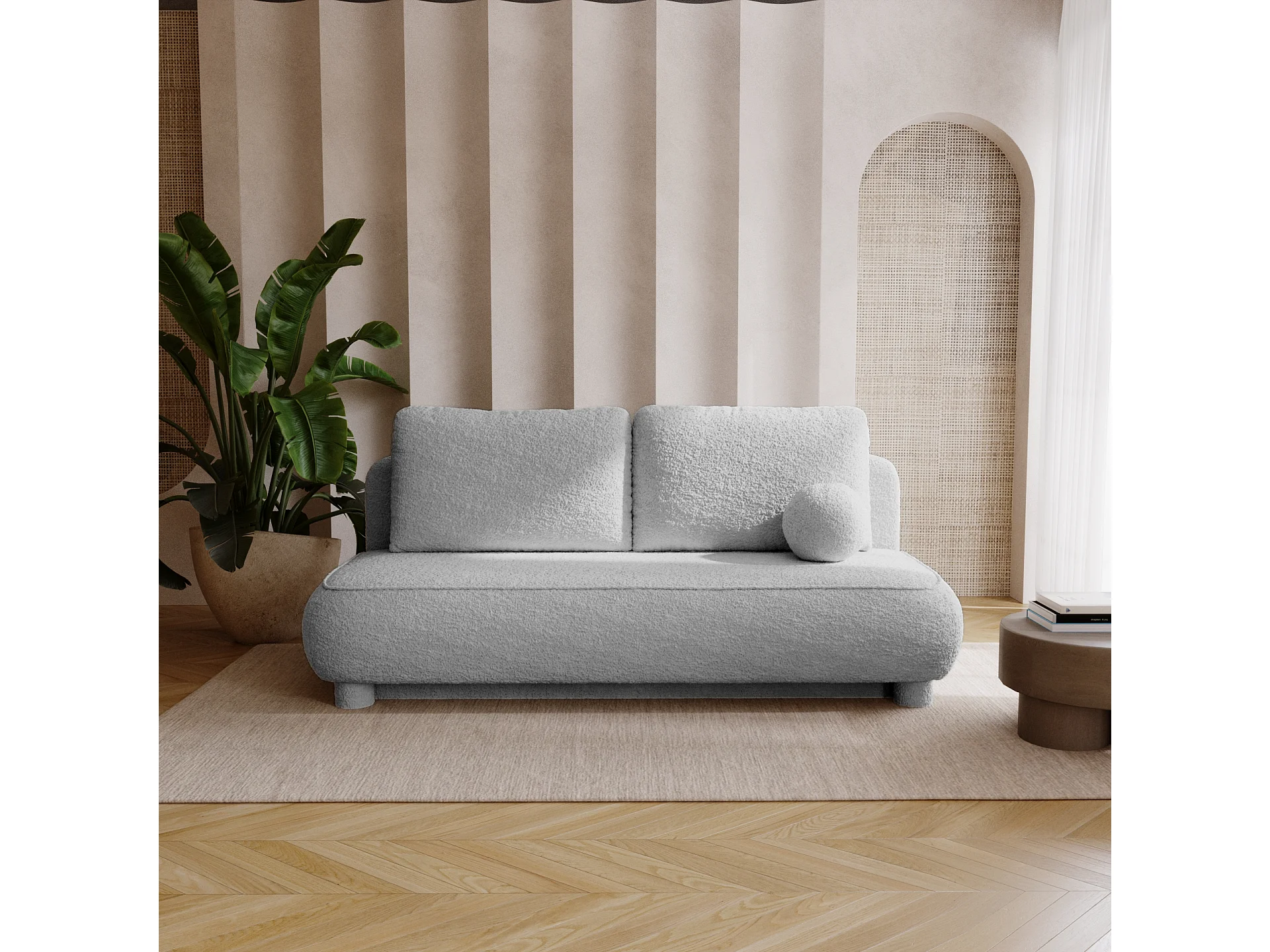 BESILIO Canapé deux places Toby – tissu bouclé, canapé convertible – Gris clair