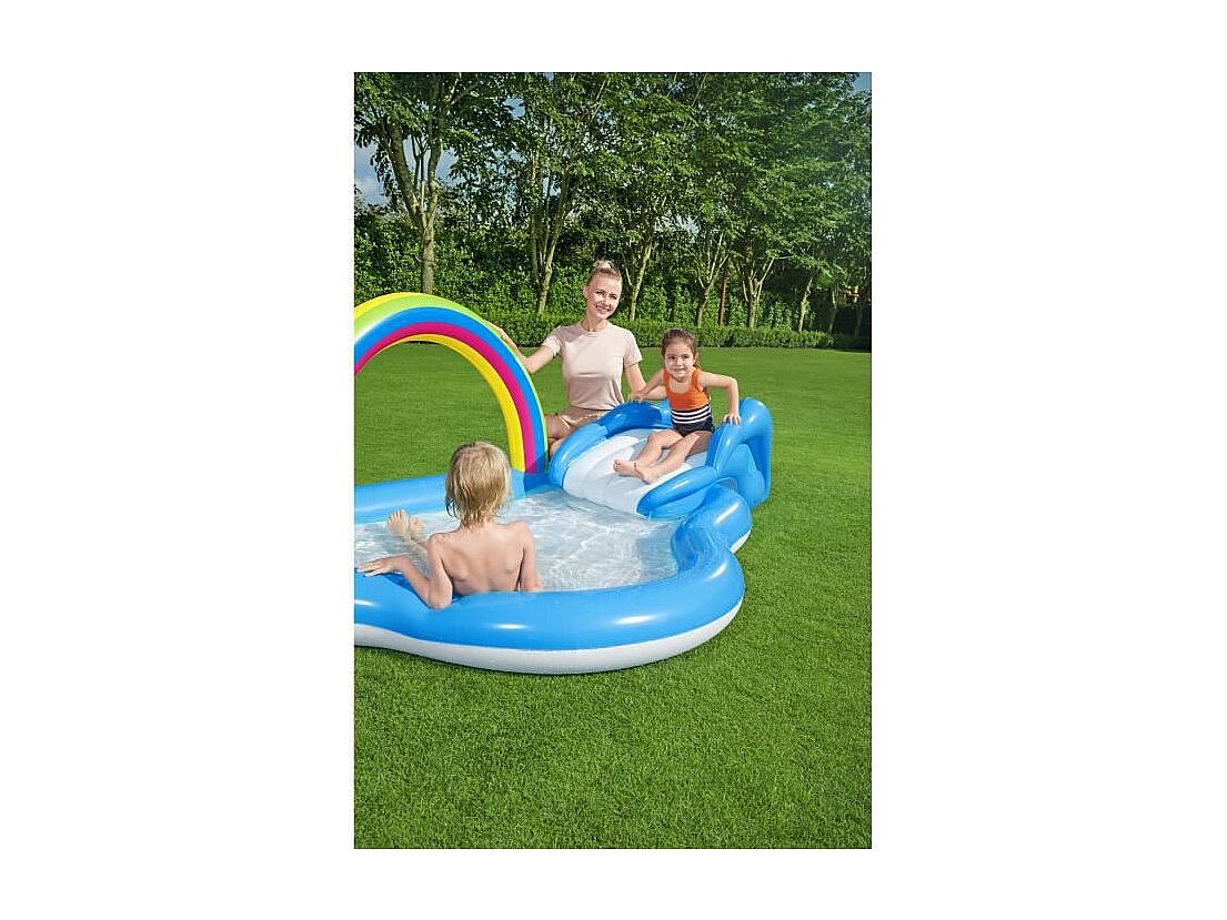 BESTWAY Aire de jeux avec pataugeoire Rainbow n Shine 257 x 145 x 91 cm
