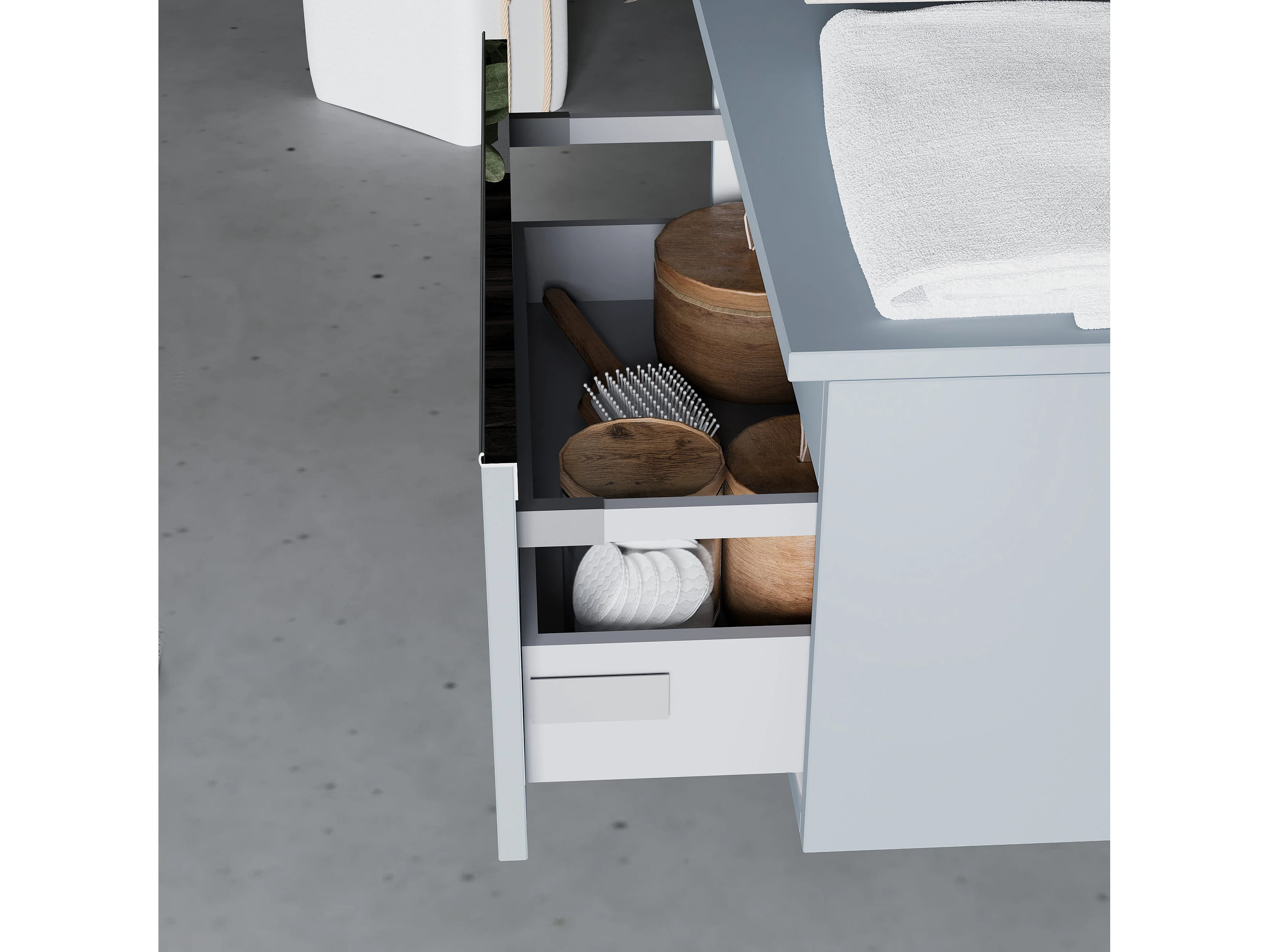 Beton Top 100Cm Lavabo À Poser Avec Tiroir Bleu 60Cm Miroir Led | Lagos