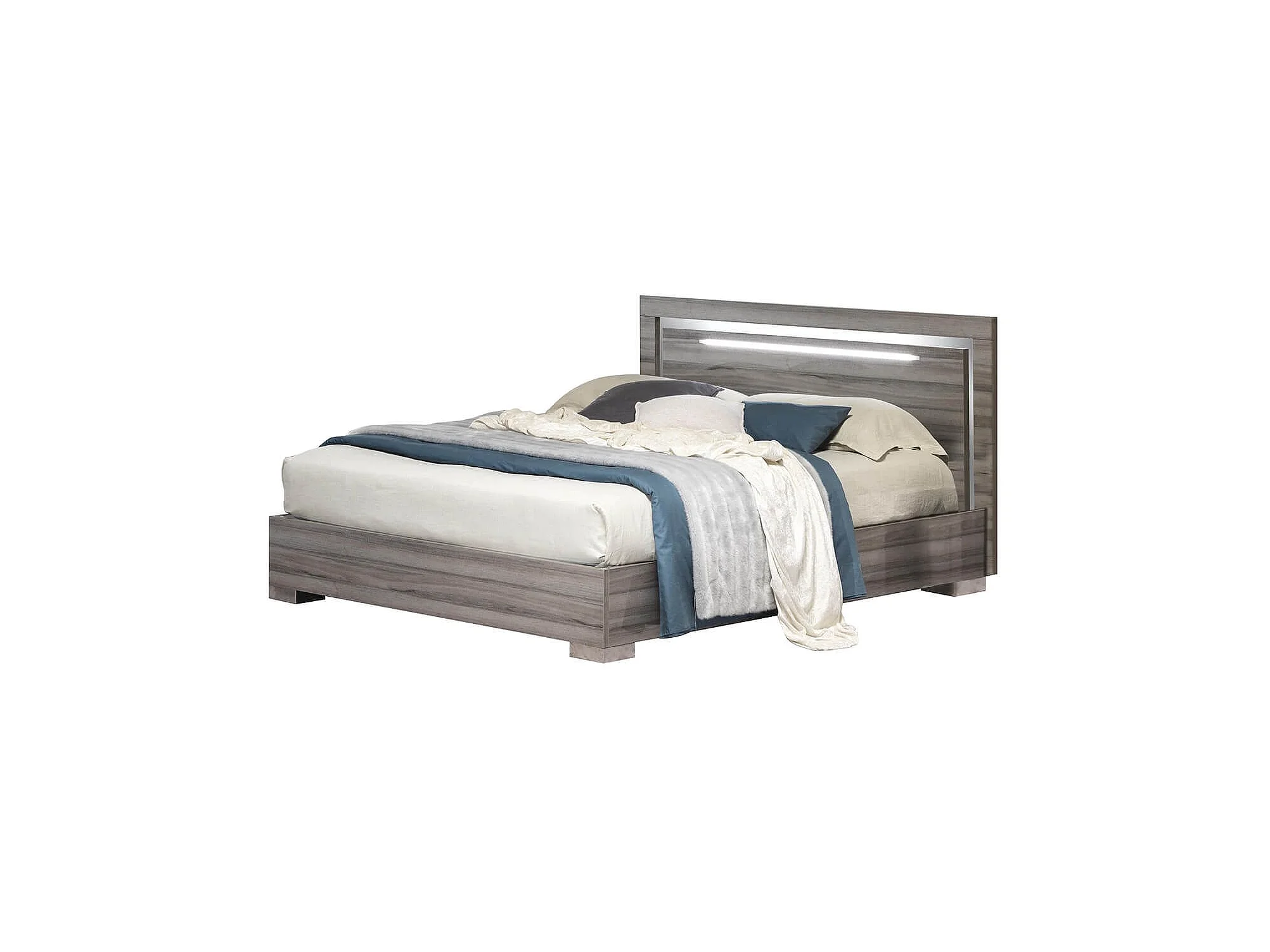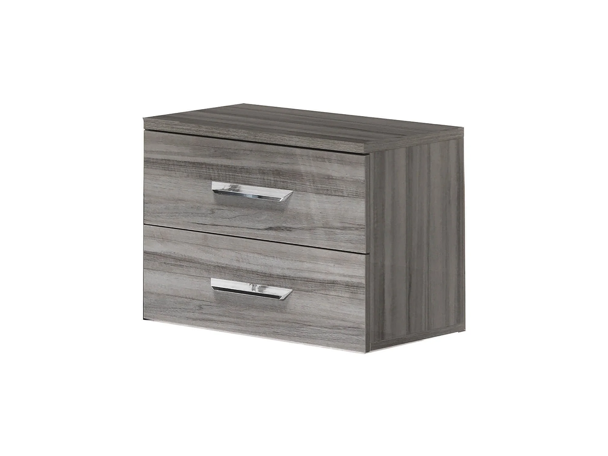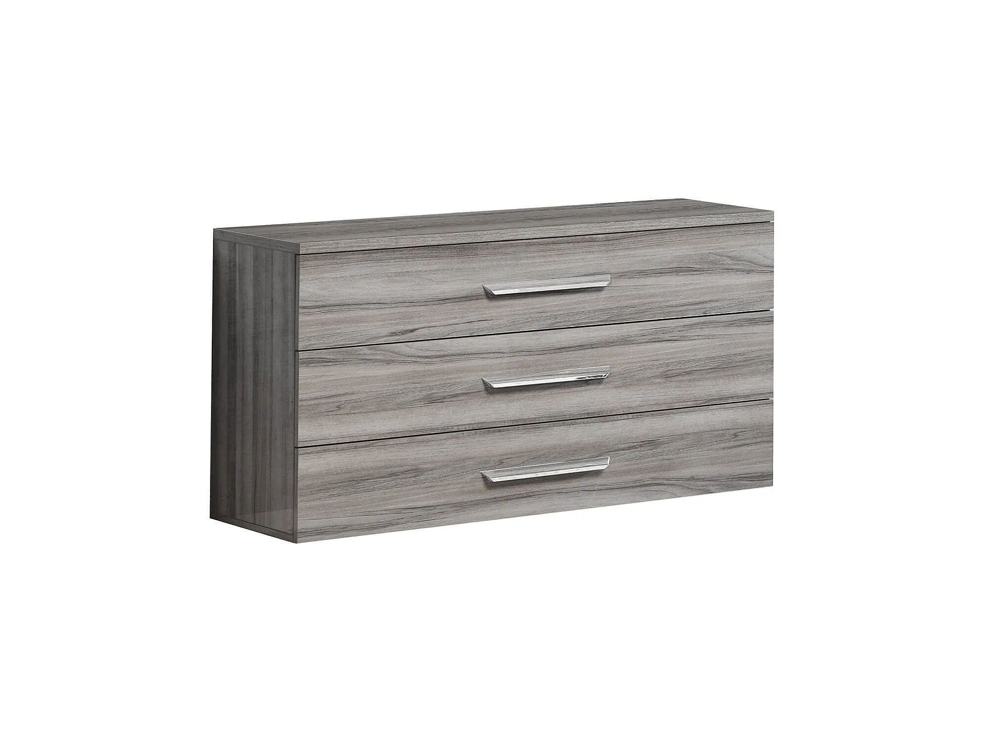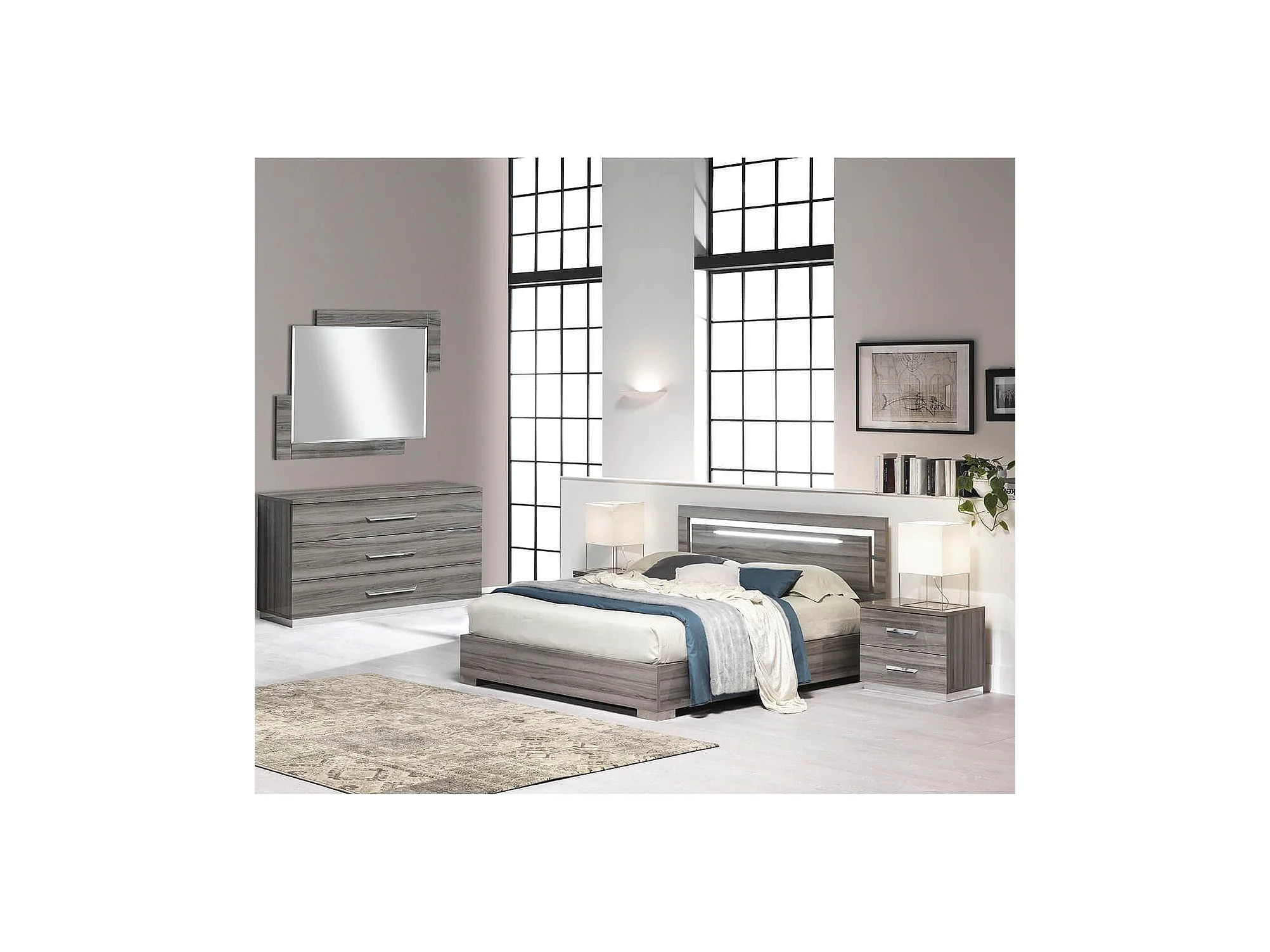 BETTY - Chambre 140x190cm avec Commode Effet Noyer Grisé et Métal Chromé