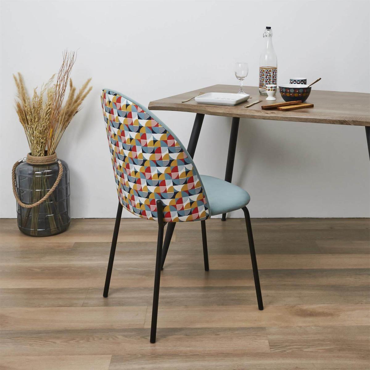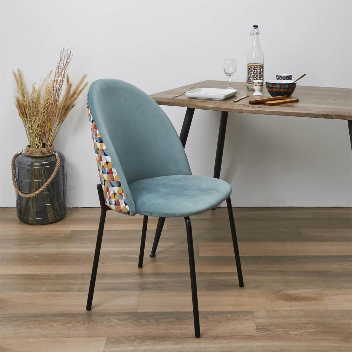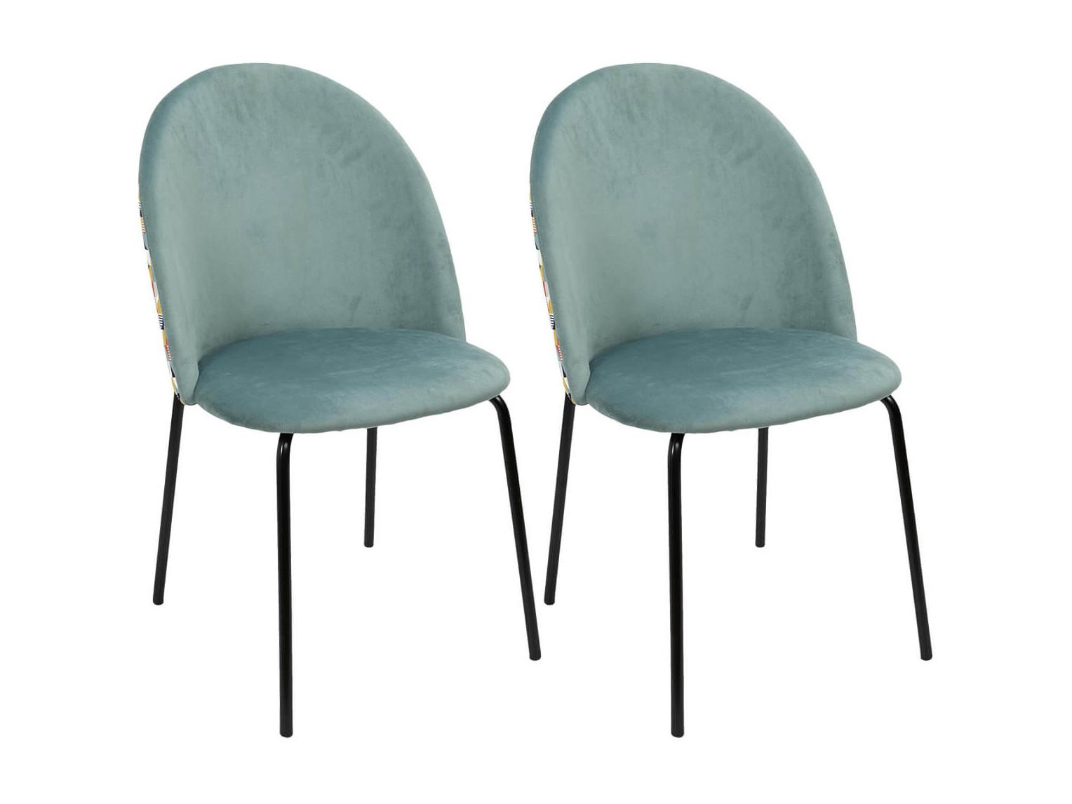BIBBO - Lot de 2 Chaises Velours Bleu Céladon Motif Rétro