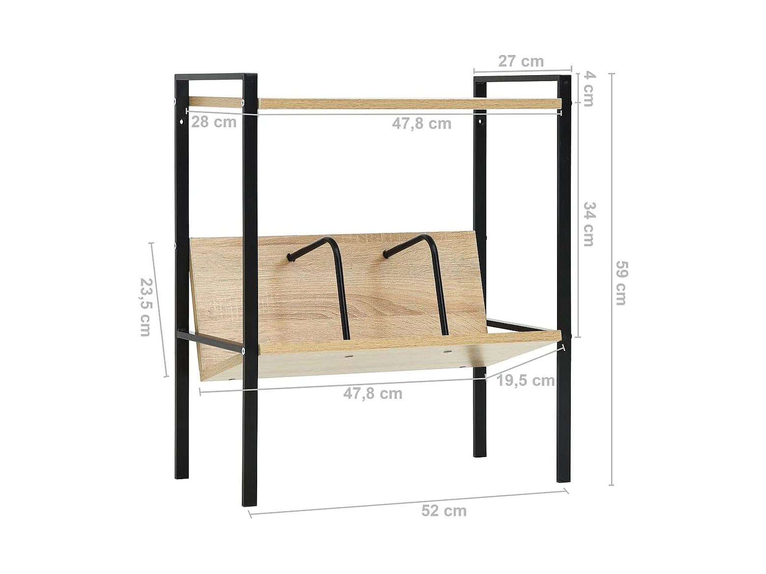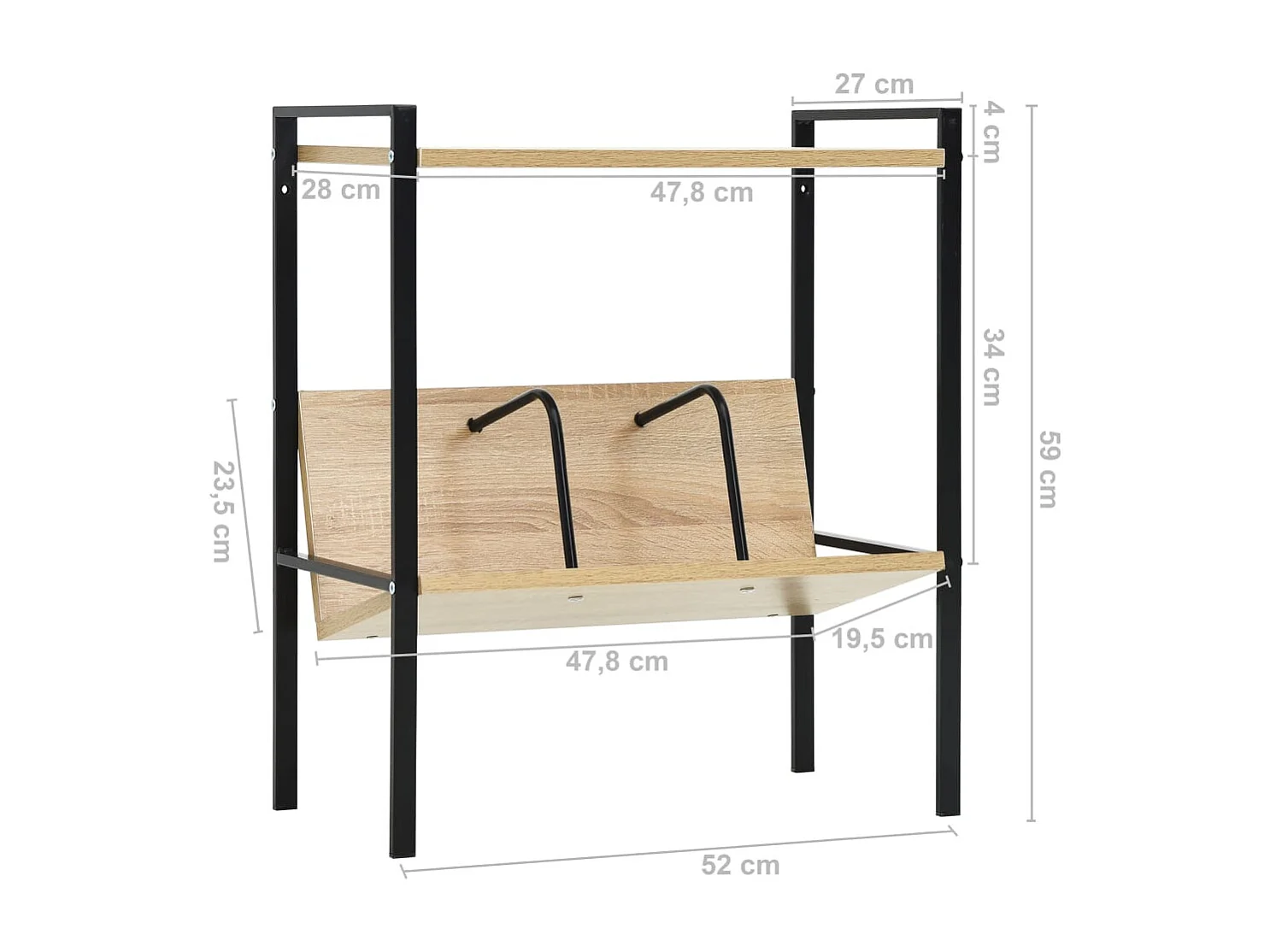 Bibliothèque 2 niveaux Noir et chêne 52x28x59