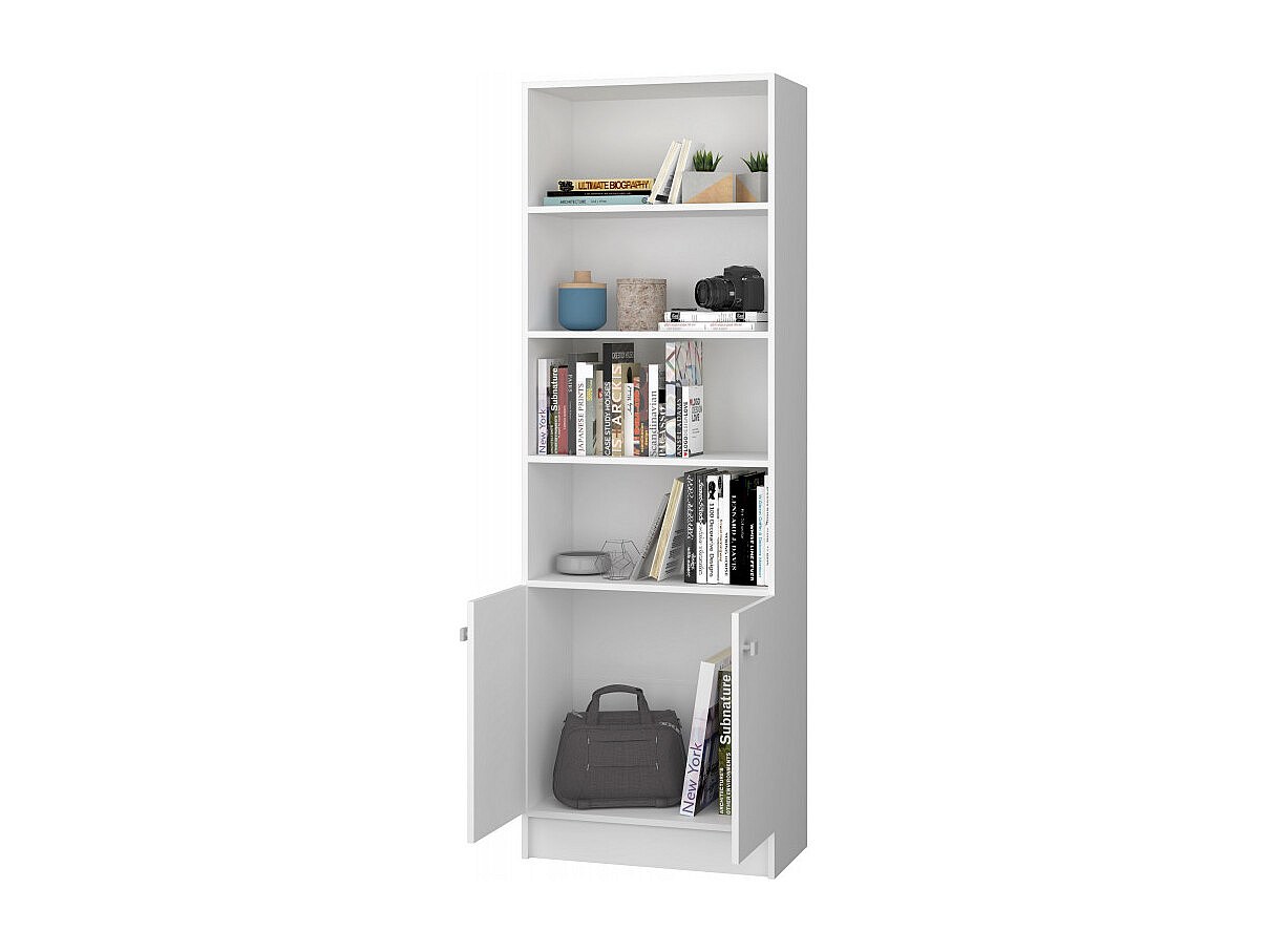 Bibliothèque 2 Portes Blanche 5 Niches L 61.5 H 182.5 P 30.5 cm