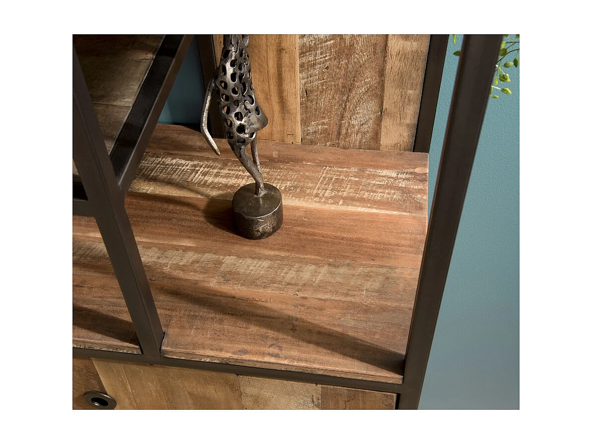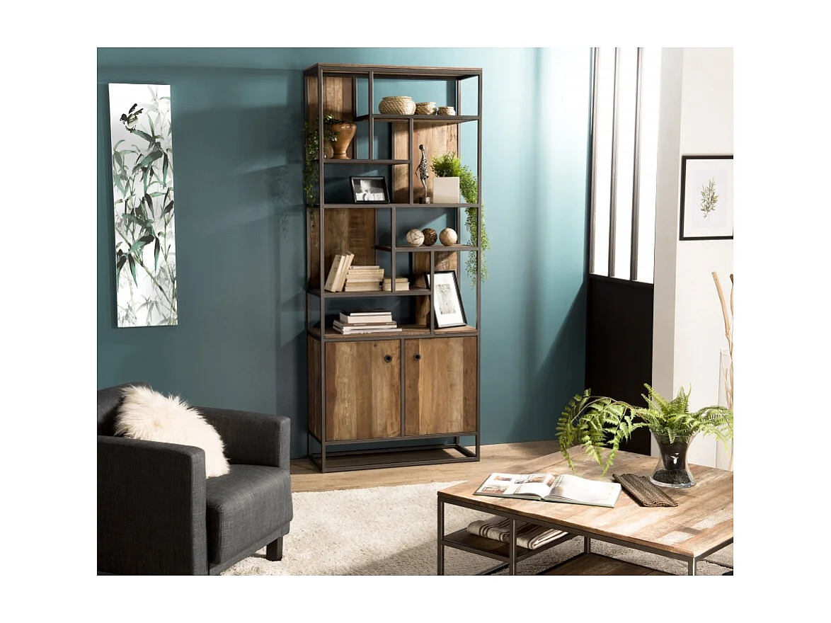 SIXTINE - Bibliothèque haute 2 portes 10 niches en bois Teck recyclé